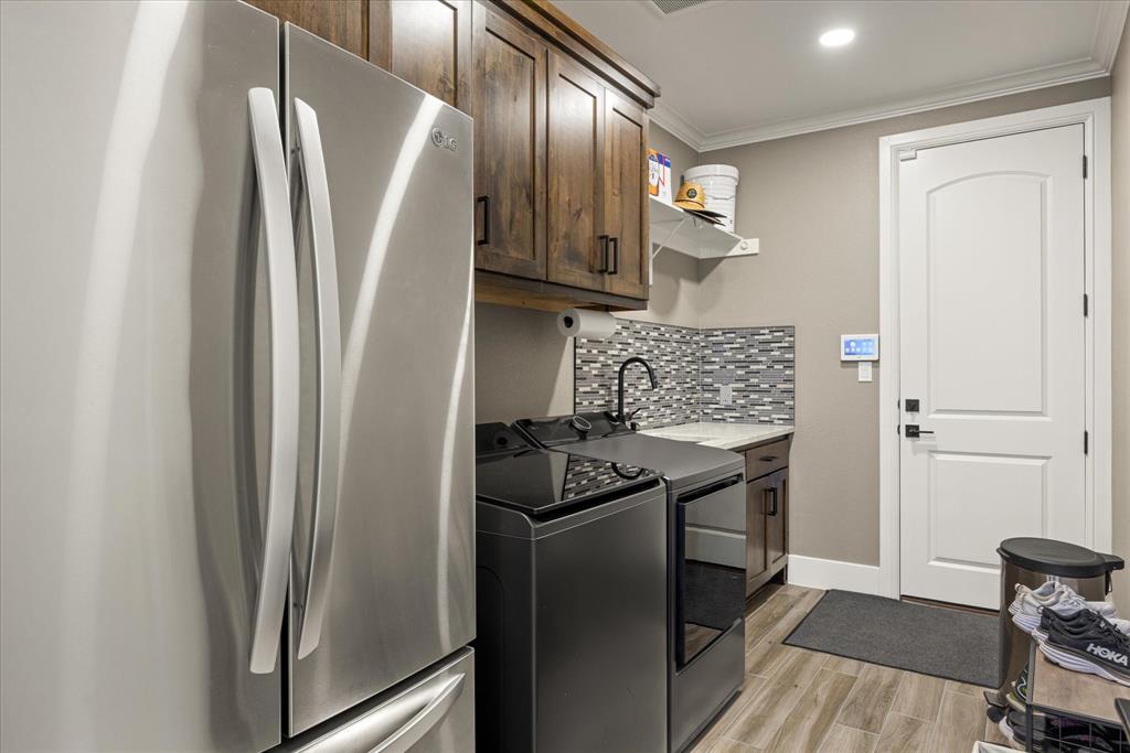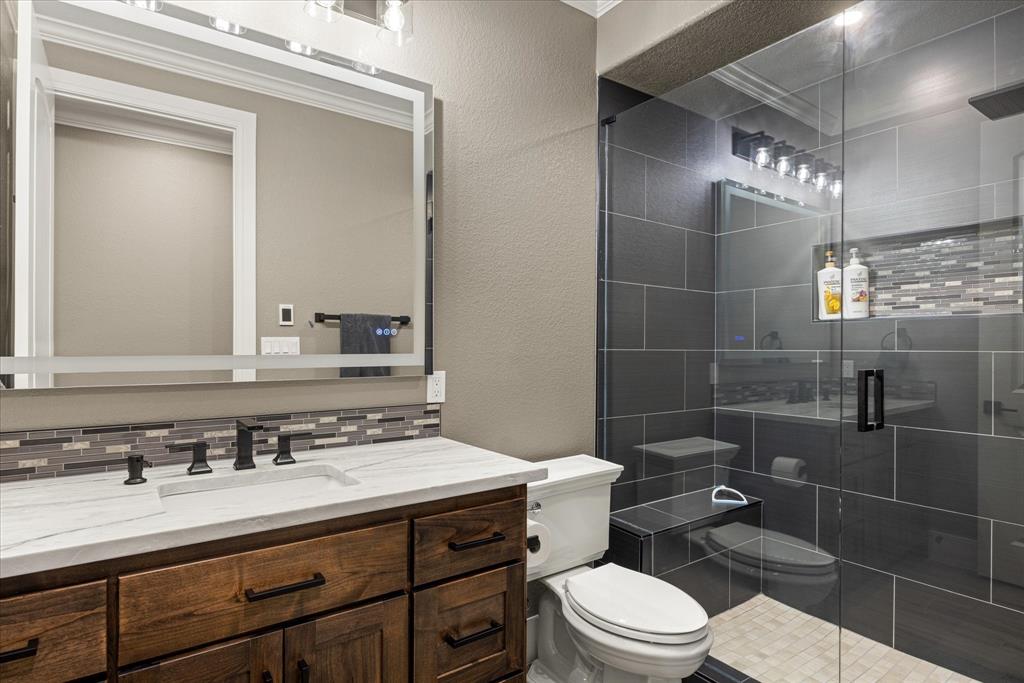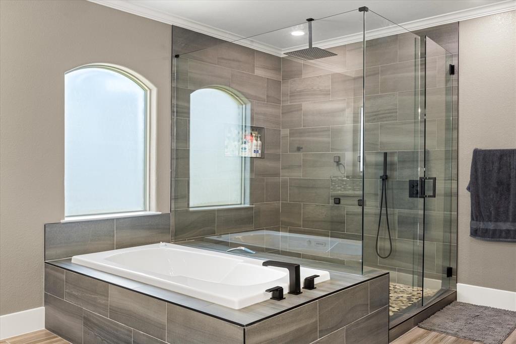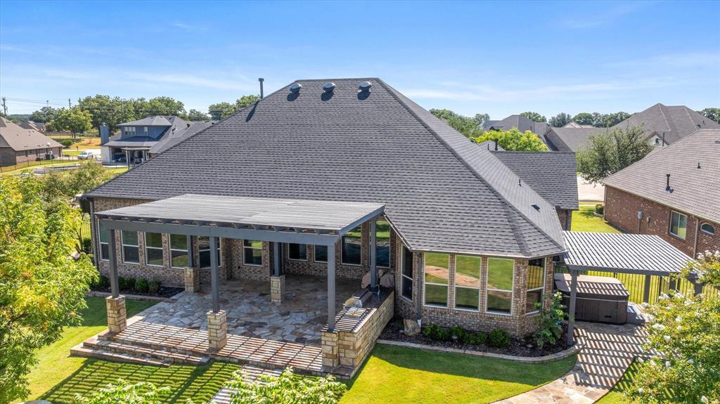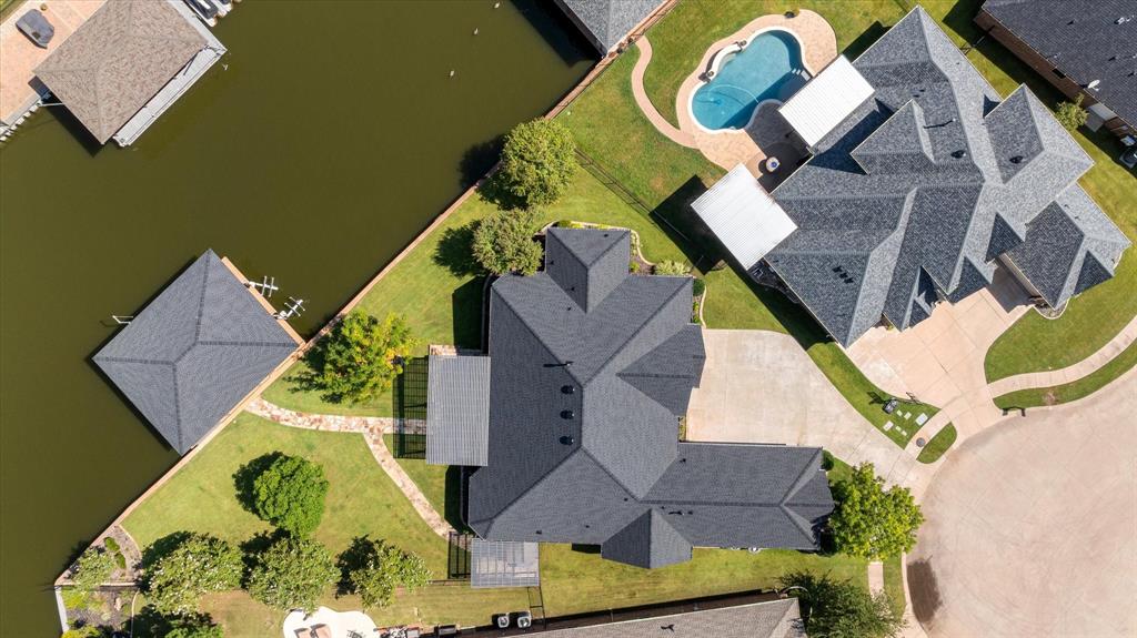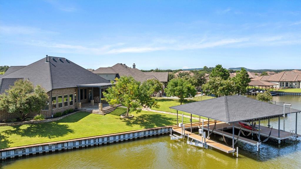 Completely renovated waterfront home on Lake Granbury! Taken down to the studs and rebuilt in 2025 with high-end finishes and thoughtful upgrades throughout. Interior features include engineered hardwood flooring, wood-look tile in wet areas, custom soft-close cabinetry, quartz countertops, custom tile backsplashes, heated bathroom floors, tiled showers with custom glass, and a jetted tub in the primary suite. The chef’s kitchen is equipped with a Café 42 inch built-in refrigerator, GE Profile double ovens with air fryer, KitchenAid microwave drawer, 5-burner cooktop, vent hood, and oversized sink. Elegant touches include designer lighting, under-cabinet and toe-kick lights, stone fireplace with custom mantel, floating shelves, oversized baseboards, and blackout shades.