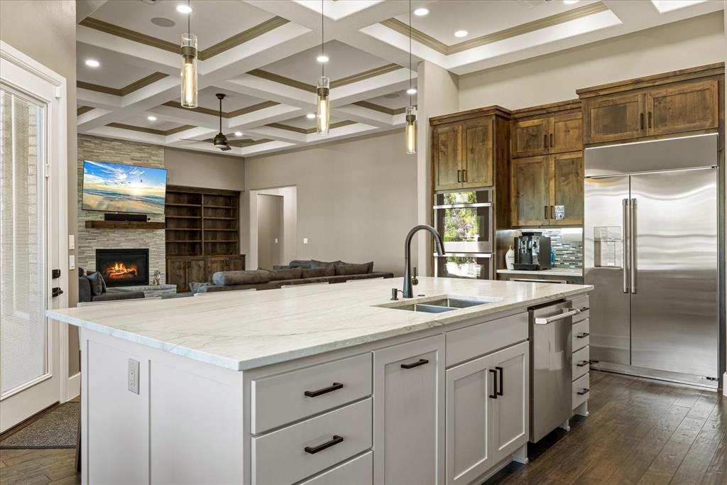 Additional highlights include an insulated garage with epoxy floors, mini-split HVAC, ceiling speakers, EV RV plug, and a large tornado shelter. Every detail has been updated—move-in ready, with modern elegance and resort-style lakefront living.
