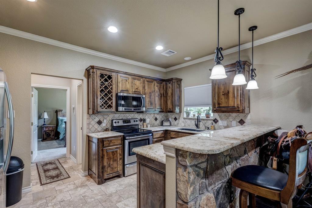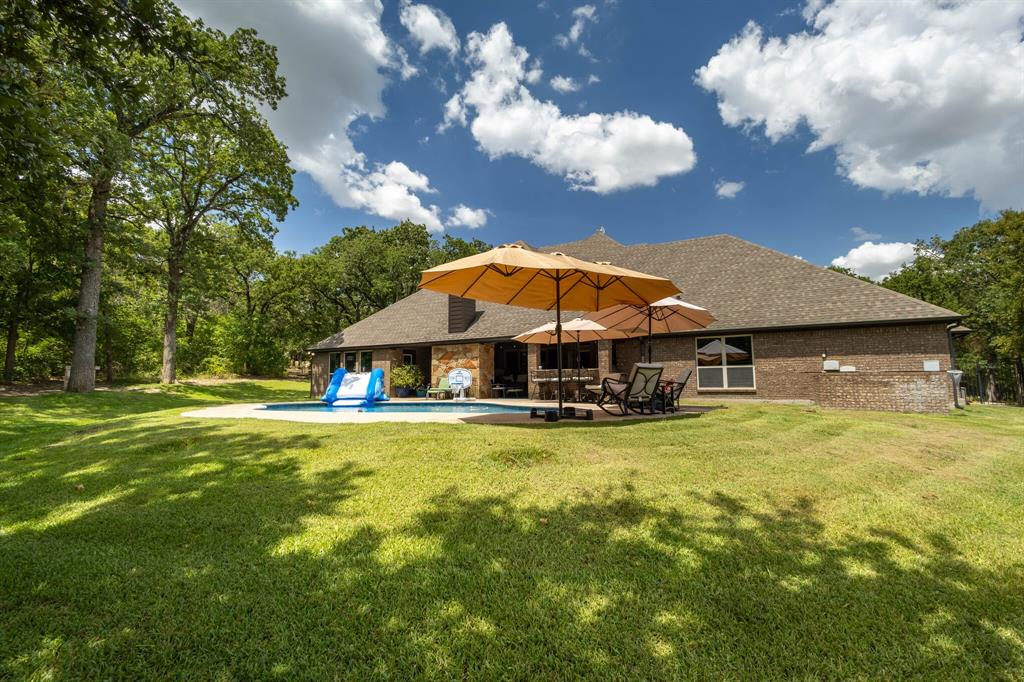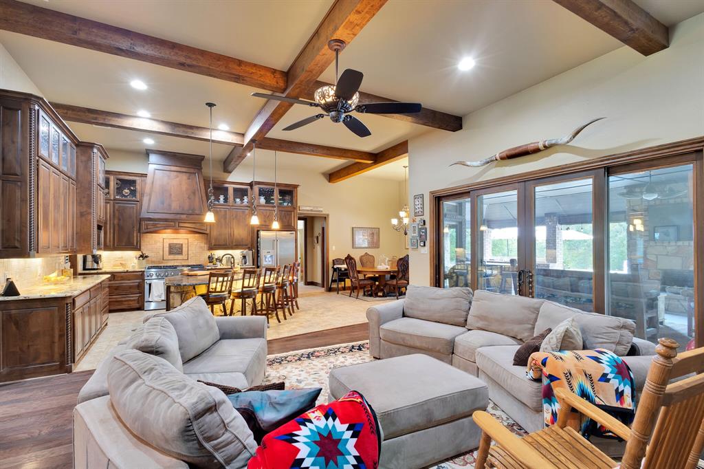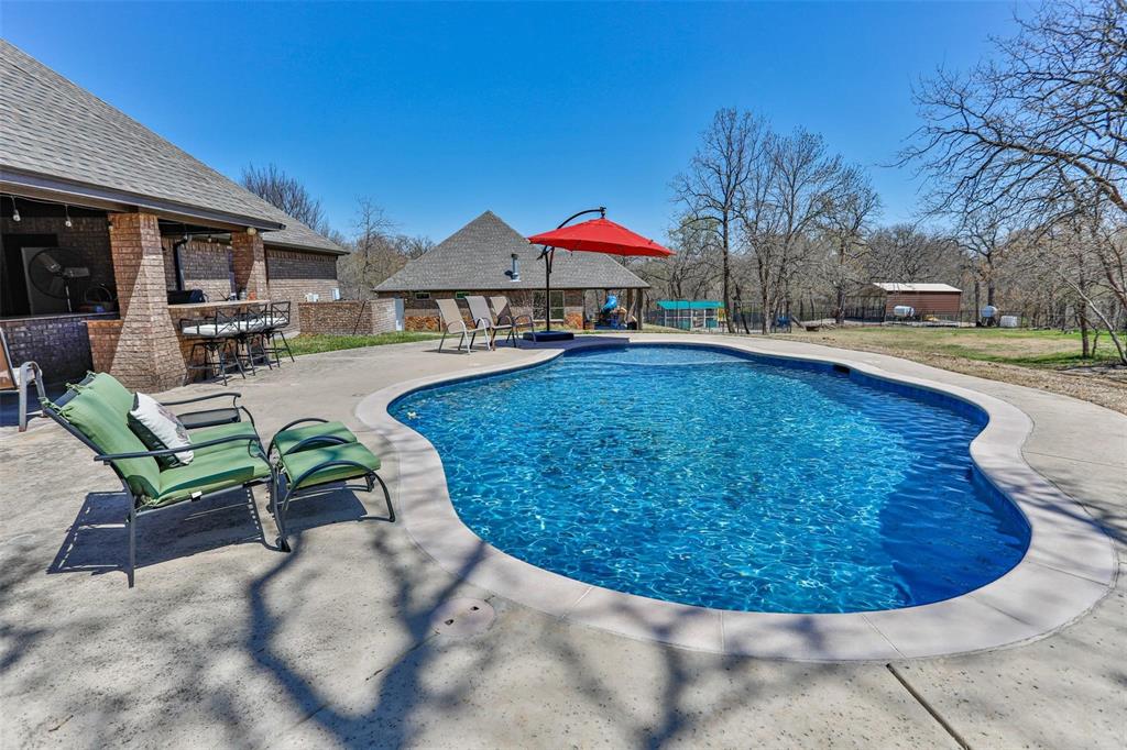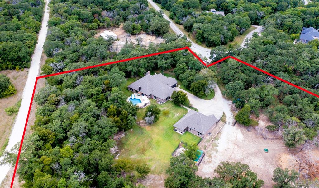 Nestled in the Hilltop of Ft Worth, is this One-of-a-Kind Gem! This one owner, 10-acre ranch home features 4 bedrooms with built in wooden shutters, office with walk in safe room, media room, 3.5 baths, 2 car garage. a bath rm leading to the pool area. Every detail of this custom-built home was meticulously thought out and built with exquisite craftsmanship beginning with the floors, the hand-crafted doors to the beams on the ceiling and many more details throughout. The open floor living space flows seamlessly offering endless entertaining opportunities. The chef’s kitchen and large granite island is perfectly designed for your entertainment taste. From the kitchen to the living area, where the large sliding doors open fully and lead you to the outside covered patio and the gunite pool. The large covered back patio, offers a beautiful stone fireplace, outdoor kitchen with bar offering plenty of sitting area for entertaining – or- simply a great spot to savor the beauty of the country sunrises and stunning sunsets. The large primary suite offers an oversized custom walk-in closet, a beautiful free standing soaking tub, separate shower and a private door leading out to the covered patio and pool area. Adjacent to the main property sits a 859 sqft (included into SqFt, Living Area) guest house offers a full kitchen, 1 bdrm, 1 bath, WB fireplace and a 3-car garage. This ranch is a true escape from the city life and the perfect place to call home. Just located 20 Minutes to Dtwn Ft Worth and 50 min to Dallas! This listing is currently AG Exempt and sits outside the city limits, main house and guest home (sit on 2 acres) and an additional 8 acres – is completely fenced for livestock (Parcel IDS- 41654935 and 41717341) COME SEE this well-maintained property! Owner will N0T subdivide. Additional 5 acres is available adjacent to the property that is fully fenced and includes a 5 stall horse barn-- see MLS# 21037173