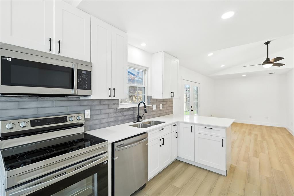 Sellers are offering up to $5000 for interest rate or closing costs! FHA Eligible beginning October 7th. Welcome to 2806 Game Lake Dr, a fully remodeled 3-bedroom, 2-bath home in Irving that perfectly blends modern updates with warm family living. Every detail has been refreshed—brand-new roof, HVAC system, all new flooring, quartz countertops, fresh paint, and stunningly redesigned kitchen and bathrooms. The bright kitchen is the heart of the home, with sleek white cabinetry, dramatic gray subway tile backsplash, and quartz counters that sparkle with natural light. A cozy breakfast nook framed by large arched windows invites families to gather together—whether it’s enjoying quiet mornings over coffee or sharing dinners in the evening, it’s a space designed for closeness and connection. The custom wood trim on the island adds a touch of craftsmanship that sets this kitchen apart. Both bathrooms feel like a retreat, featuring dual vanities, bold black fixtures, and walk-in showers with elegant marble-style tile. Thoughtful touches like rainfall showerheads and pebble-tile niches bring spa-like comfort into everyday life. Step outside to your private paradise: a sparkling pool with a completely redone filter system, surrounded by a new fence and spacious deck for lounging, grilling, and celebrating together. Whether it’s weekend pool parties or relaxing evenings, this backyard is made for making memories. With all major updates already complete—new roof, HVAC, kitchen, bathrooms, and flooring—this home is truly move-in ready. 2806 Game Lake Dr offers the perfect balance of stylish design, functional comfort, and a backyard retreat you’ll never want to leave. Check out the virtual tour and come see it for yourself!