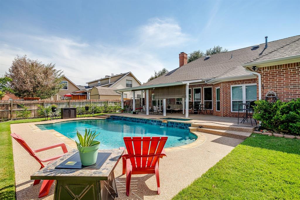 Be the house EVERYONE wants to go to! This 2,320 sqft, 4-bedroom, 2.5-bath, 2-car garage home is designed for entertaining. From the spacious living area with a fireplace, to the open-concept kitchen with granite counters, and outdoor covered patio and pool. It’s the perfect place to bring people together. The private primary suite offers dual sinks, tub, a separate shower, and two walk-in closets. With three additional bedrooms, there’s room for family, guests, or a home office. Step outside to the beautifully kept backyard and imagine the memories you’ll create: summer afternoons in the pool, and weekend barbecues under the large covered patio. This home isn’t just a place to live — it’s a place to make lasting memories.