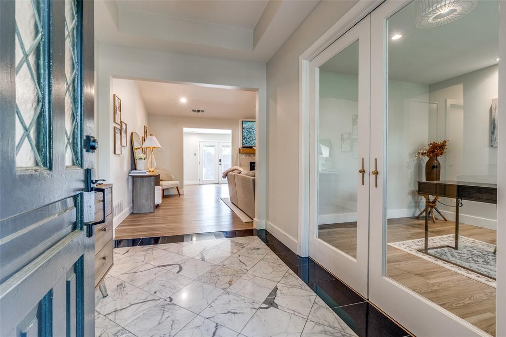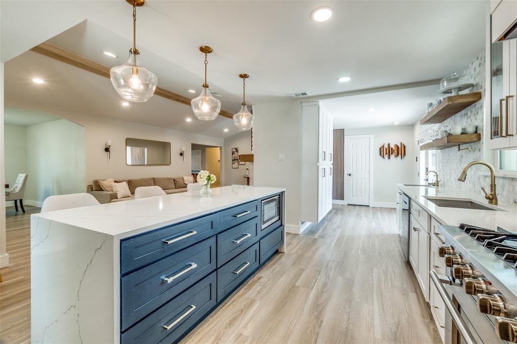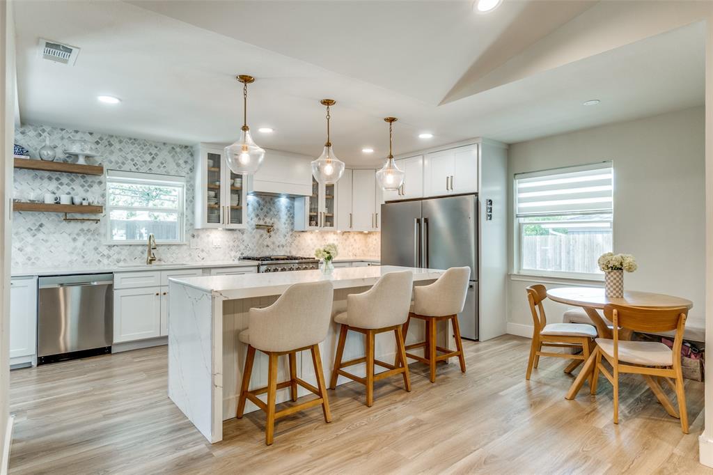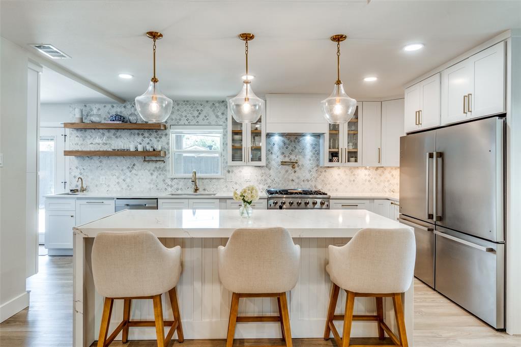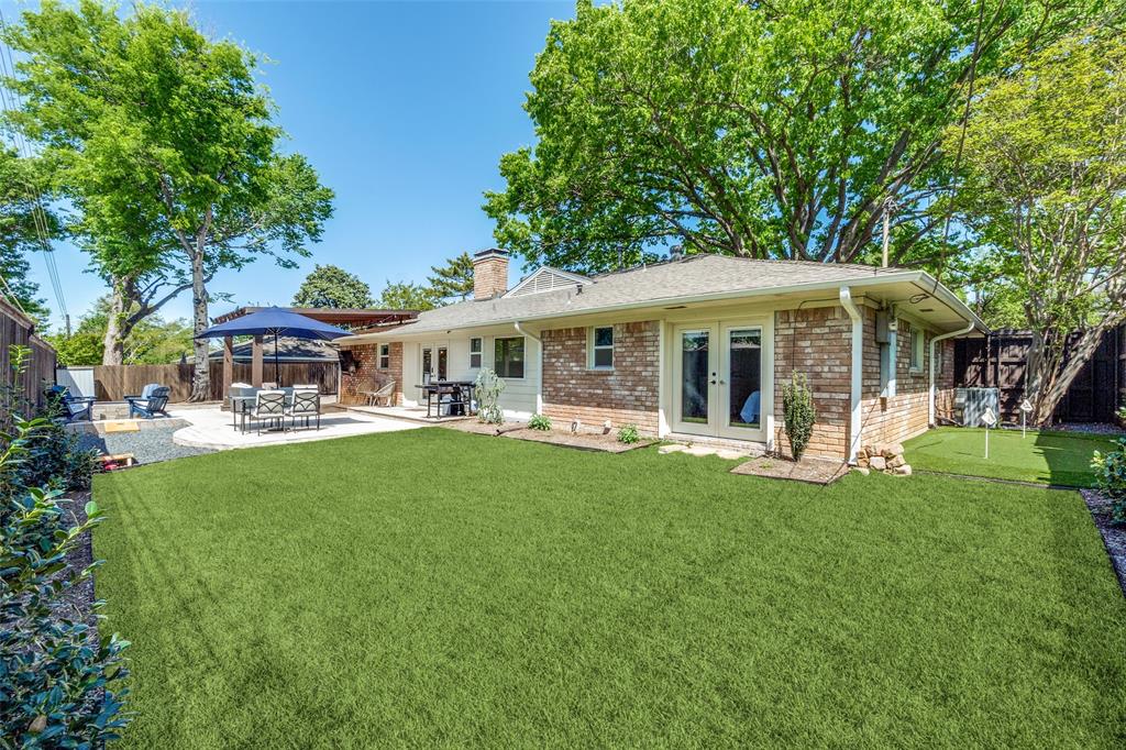 The chef’s kitchen is a standout, featuring stainless steel appliances, quartz countertops, a marble tile backsplash, and a large center island that doubles as a breakfast bar—ideal for casual dining and entertaining.Generously sized bedrooms provide comfort and privacy, while the primary suite boasts tray ceilings, a walk-in closet, and a spa-like en suite bathroom. Additional highlights include a dedicated study, a built-in workstation, and thoughtful design touches throughout.Step outside to a fully reimagined backyard retreat, complete with a custom pergola, putting green, and firepit—perfect for year-round outdoor living and entertaining.Situated in the heart of the private school corridor and close to countless amenities, this home seamlessly blends style, convenience, and modern living.