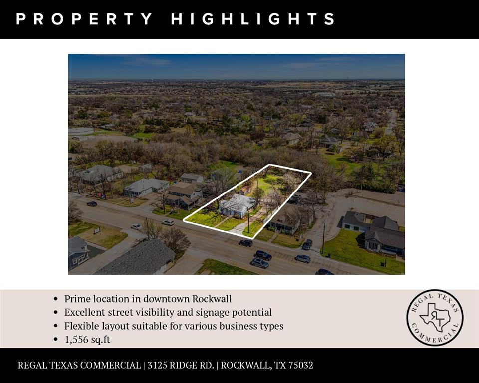 Prime half-acre in the heart of Downtown Rockwall! Zoned for commercial, this property offers endless possibilities with excellent street visibility and signage potential. Flexible layout suitable for various business types. Includes a 1,556 sq.ft. structure (3 bed and 1 bath) sold As IS for land value. Steps from the historic square with easy access to I-30 and major DFW corridors. Seller is open to offers.