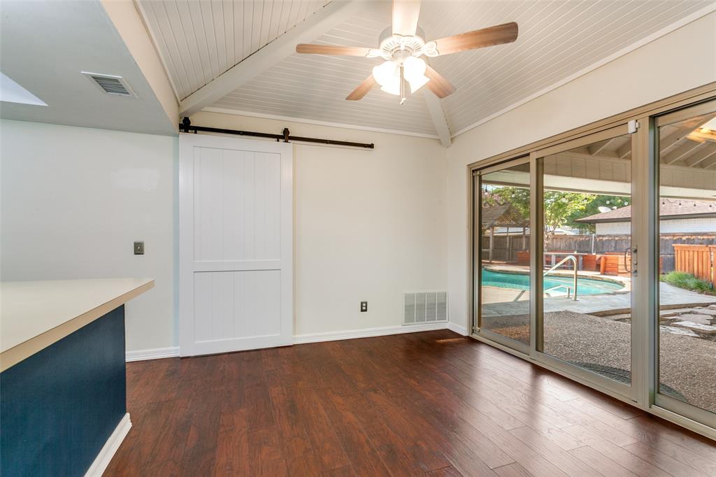 This immaculately clean Richardson home is a rare opportunity: well-cared-for with great bones, a pool, and timeless design. It does need updating, making it ideal for buyers ready to put their personal stamp on a property one room at a time or do a complete update and remodel before moving in. The expansive living area features a vaulted ceiling with exposed beam detail, a wood-burning fireplace, and an adjoining dining room finished in classic Saltillo tile. The kitchen includes newer Samsung and Frigidaire appliances (refrigerator excluded) and flows to a flex space that serves as laundry, mudroom-style entry, and pantry. The oversized primary suite offers pool access and ample potential to be reimagined into a private retreat, while two additional bedrooms provide comfortable proportions. Outside, a sparkling pool, mature trees, and a wide rear-entry driveway add to the home’s character. All of this just a short walk to Yale Elementary, nearby parks and trails, golf, and with easy access to Hwy 75 & GBT.