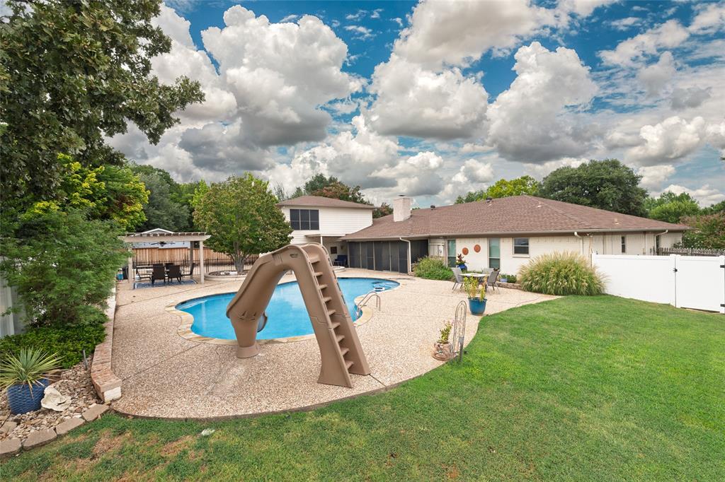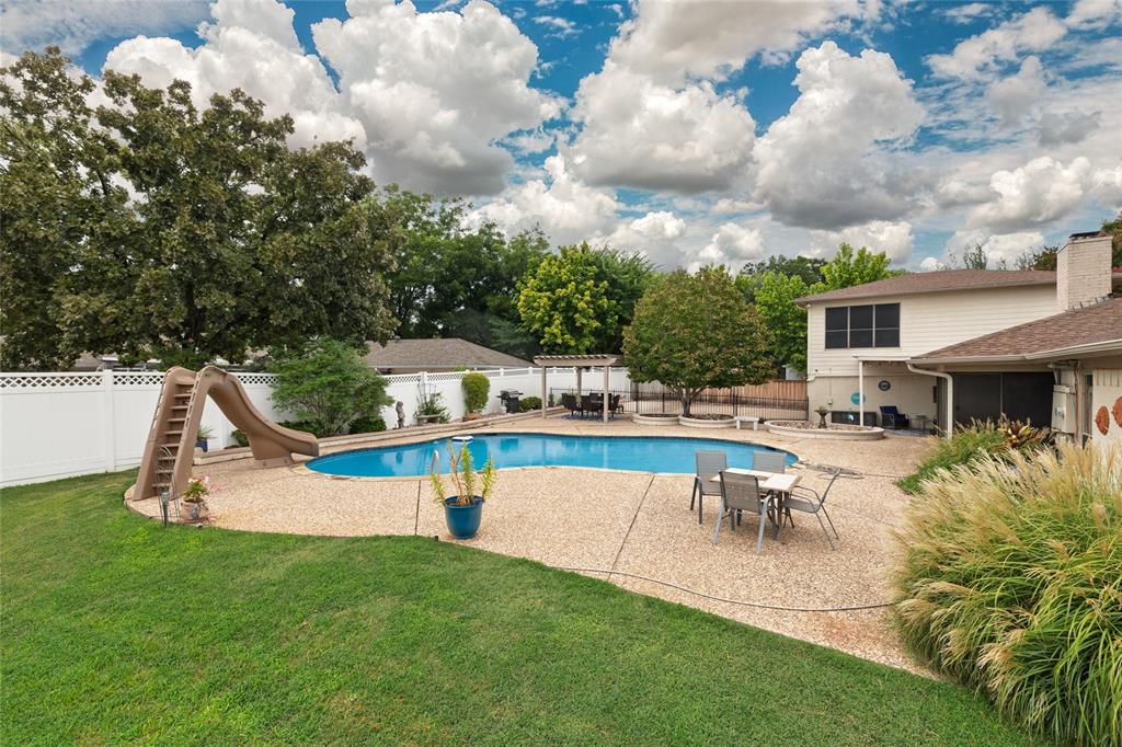 SELLERS CONCESSIONS OFFERED!! Fabulous 4250 square foot home in Ridglea Country Club Estates. 5 bedrooms, 3.5 baths, large updated kitchen and sprawling living spaces provide ample room and entertaining options for any size family. Upstairs is a tremendous flex room with rows of windows overlooking the backyard and its great pool. This amazing space could easily be a game, play, or media room. And downstairs, the stately living room and wet bar also open up to the pool and sunroom and pretty backyard. With 3 bedrooms on one side, and 2 bedrooms on the other, this floorplan offers so much versatility. The 5th bedroom is in the perfect place for a great office. Right close to the bright kitchen with its tremendous island featuring granite and kitchen storage galore. The kitchen has been remodeled with granite, cooktop, oven, dishwasher and new flooring, which is also throughout most of the home. New windows in 2023, and the amount of natural light flowing in, make this meticulously maintained and spacious one-owner home a joy to be in!