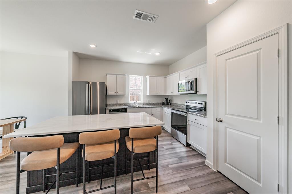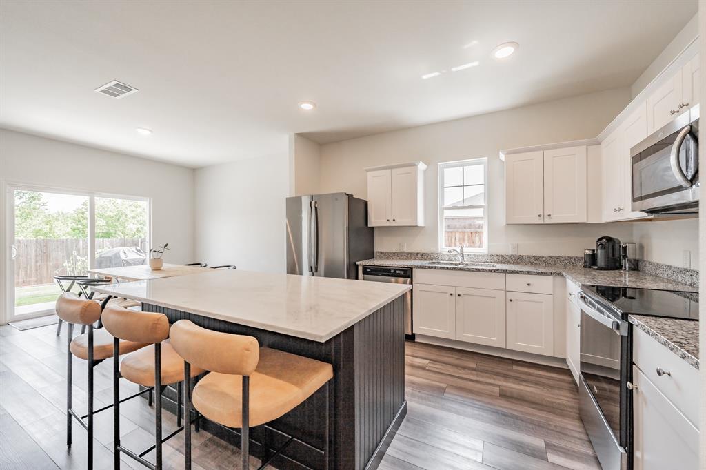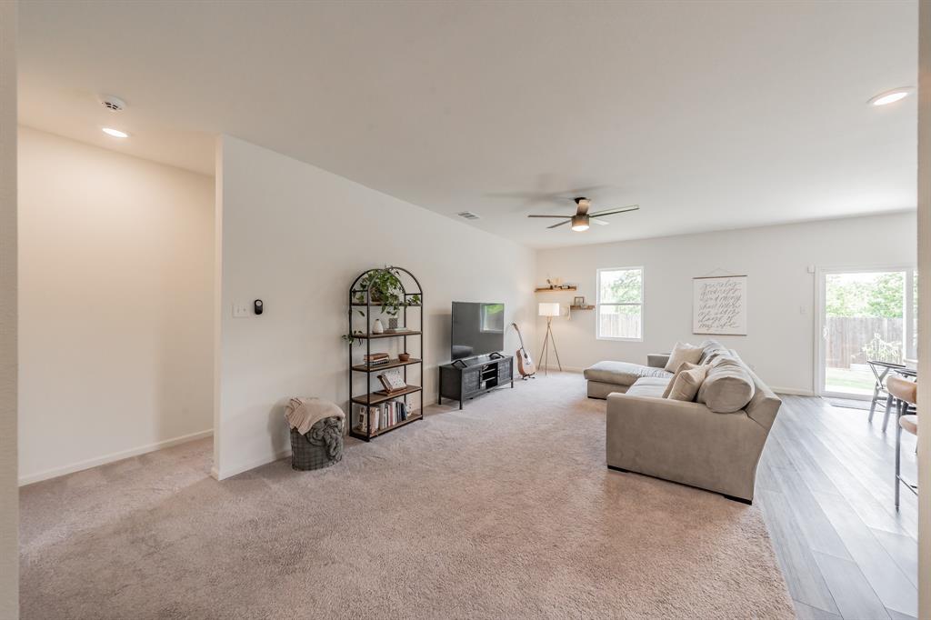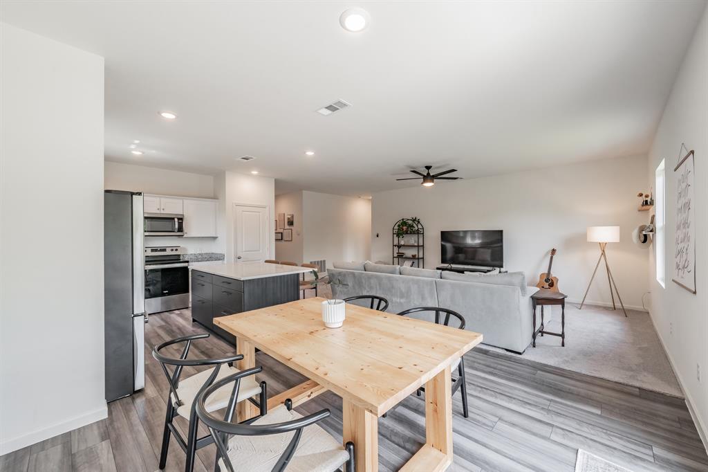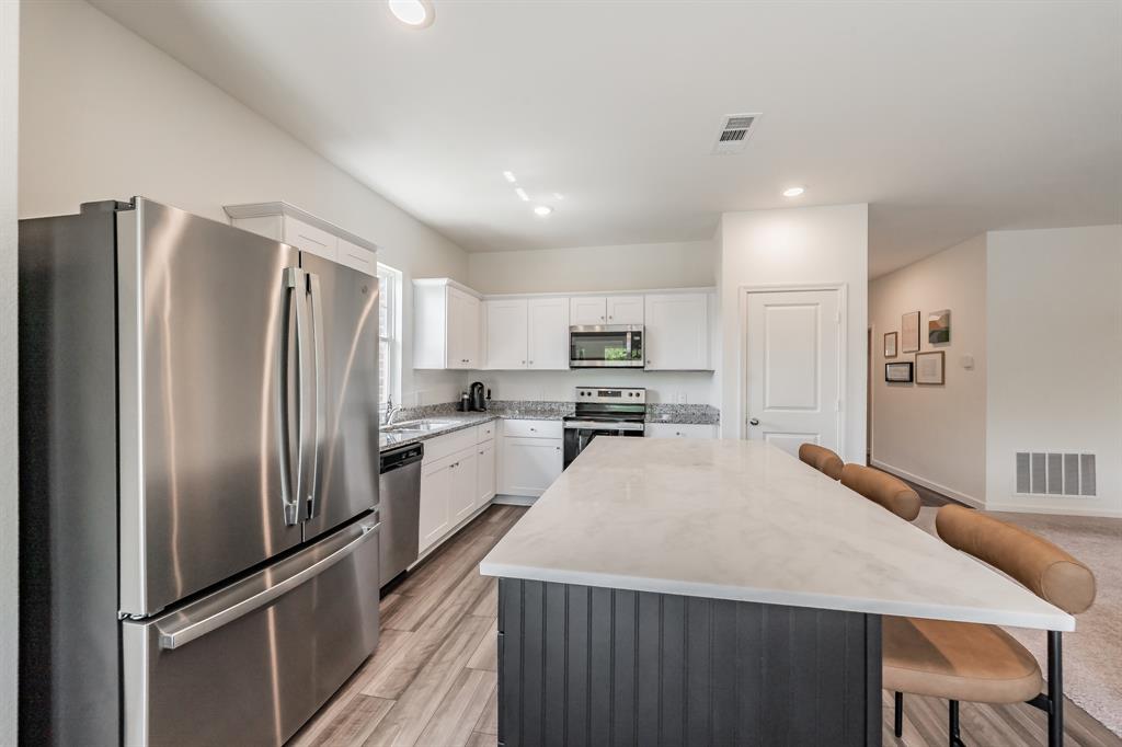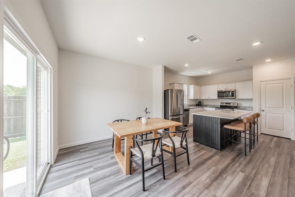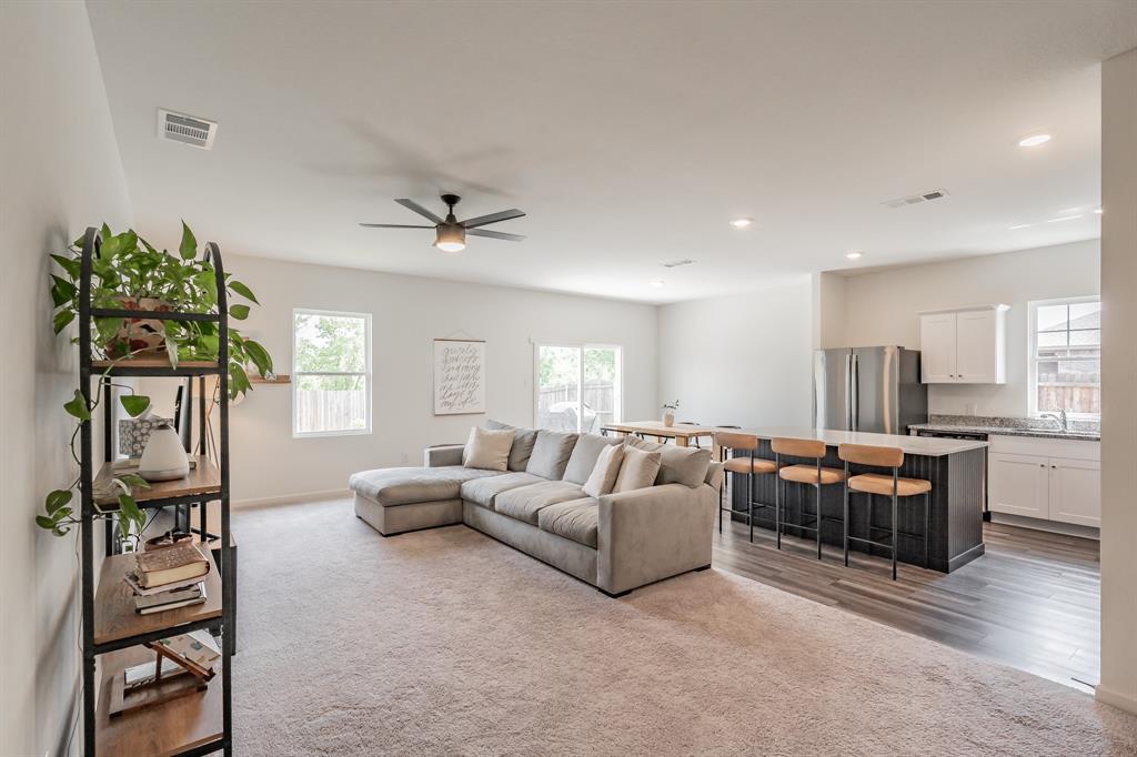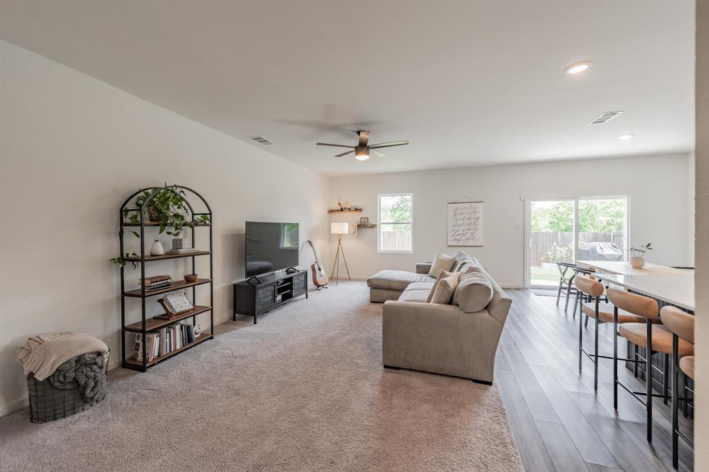 Welcome to your dream home that is better than new and completely move in ready! This immaculate property showcases the true pride of ownership, evident in every detail. Nestled in a convenient, newer neighborhood, the exterior boasts beautifully landscaped front and back yards, creating a welcoming curb appeal that invites you in. Enjoy the added privacy that comes from backing up to a treed greenbelt area, offering a peaceful and private view off your back patio. Step inside to experience a spacious and open floorplan that fosters a warm and inviting atmosphere. The owners minimalist style also helps to create a calm and functional flow that is accented by the natural light in each room. The heart of the home features a stunning yet practical kitchen complete with a generous island that also serves as a breakfast bar, perfect for enjoying casual family meals or hosting guests and connects the large living space into a great gathering area for family and friends. The thoughtful split bedroom arrangement provides privacy and comfort for everyone and could easily be used for office or flex space if needed. Lots of details have been intentionally added by the owner such as remote ceiling fans in the main living area and primary bedroom, lighting, hardware in the bathrooms, kitchen island, flower beds in the front and back, and gutters around the home. Some additional features include energy efficiency, smart thermostat and radiant barrier in the attic. This home is a peaceful haven where style and functionality meet. It's also conveniently located just off I-35W and I 20, south of Ft. Worth, within minutes of I 30 and 820. Don't miss your chance to own this exceptional property that truly stands out in the market. Schedule a showing today and make it yours!