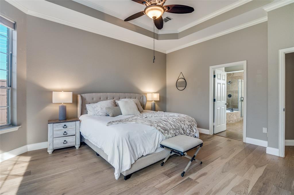 Welcome to this stunning 5-bedroom, 4-bathroom home located in one of the most highly desired areas of Plano. Perfectly blending comfort, style, and functionality, this home is truly ready for you to move right in! Step inside and be greeted by New French White Oak hardwood floors and elegant plantation shutters that set the tone throughout. Multiple living areas provide plenty of space for entertaining or relaxing, and the main living room features a cozy fireplace, creating the perfect gathering spot. The open-concept chef’s kitchen complete with brand-new appliances designed for both style and functionality, complete with a large island, double ovens, abundant cabinetry, and room to host unforgettable meals in your new kitchen. The primary suite on the first floor is a private retreat, boasting a spacious ensuite with a jacuzzi tub, separate shower, and dual sinks—your personal oasis away from it all. Also downstairs, you’ll find an additional full-sized bedroom with walk-in closet, ideal for guests or multi-generational living. Upstairs, discover three more generously sized bedrooms and a spacious game room, offering endless possibilities for fun, entertainment, or even a home theater. Step outside to your expansive backyard, perfect for outdoor entertaining, gardening, or simply enjoying peaceful evenings under the stars on your new concrete patio. Community amenities include a pool, jogging paths, playgrounds, tennis courts, and lush greenbelts, making it easy to enjoy an active lifestyle right at home. Located in the award-winning Plano ISD, you’ll be close to top-rated schools, shopping, dining, and everything the city has to offer. Don’t wait—this move-in ready gem has it all and won’t last long!