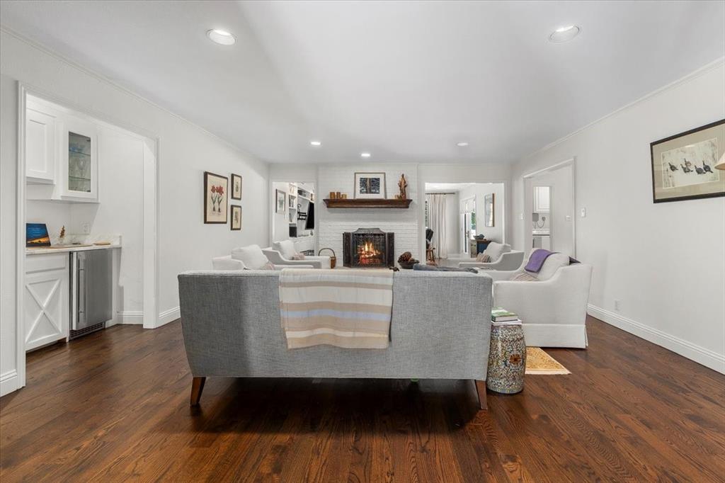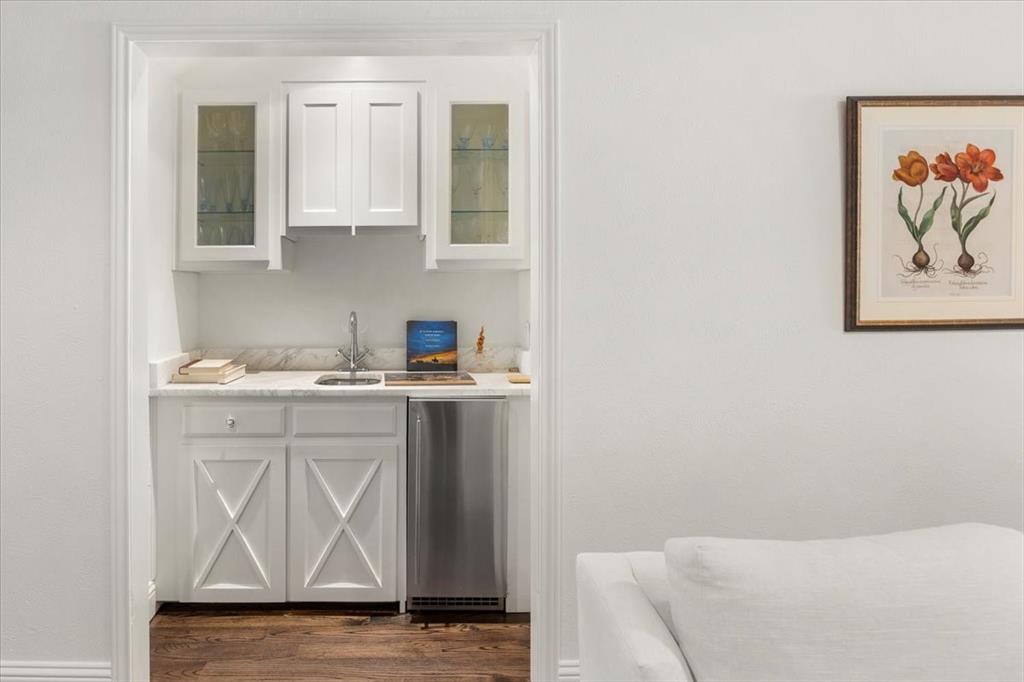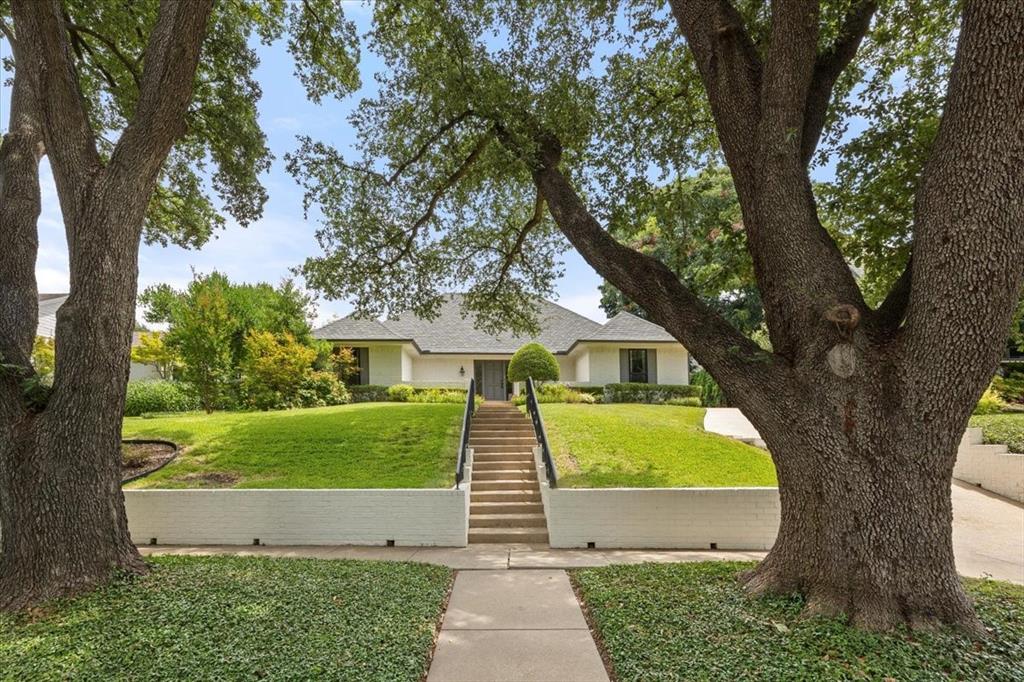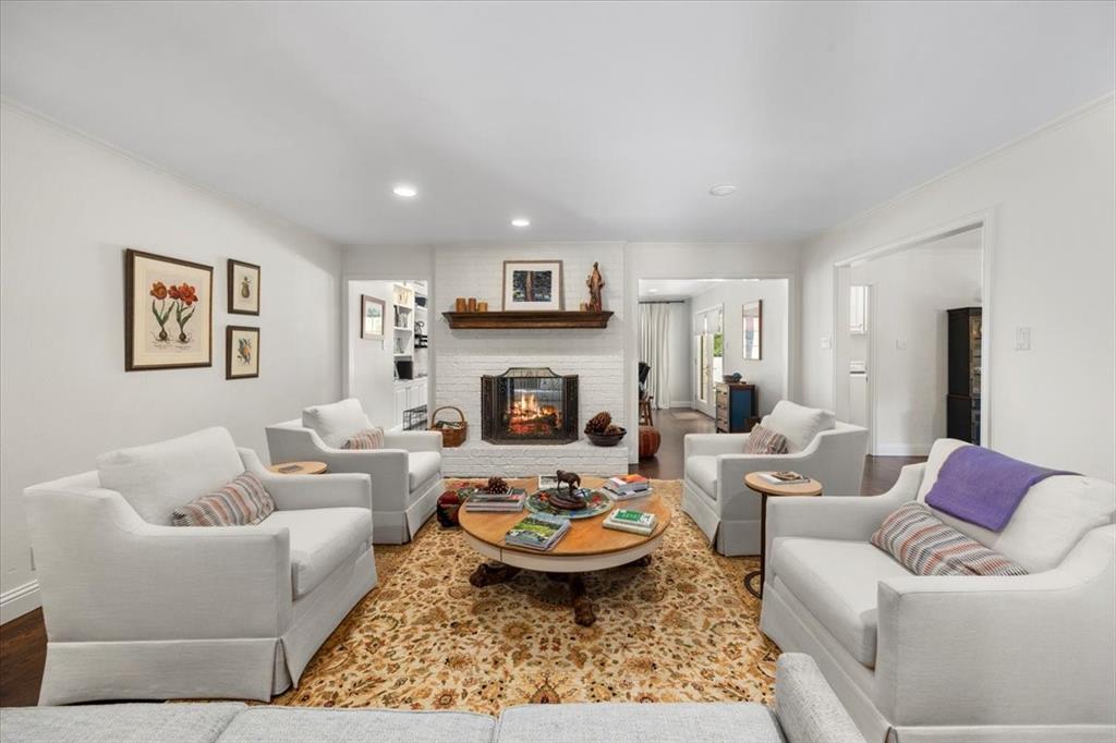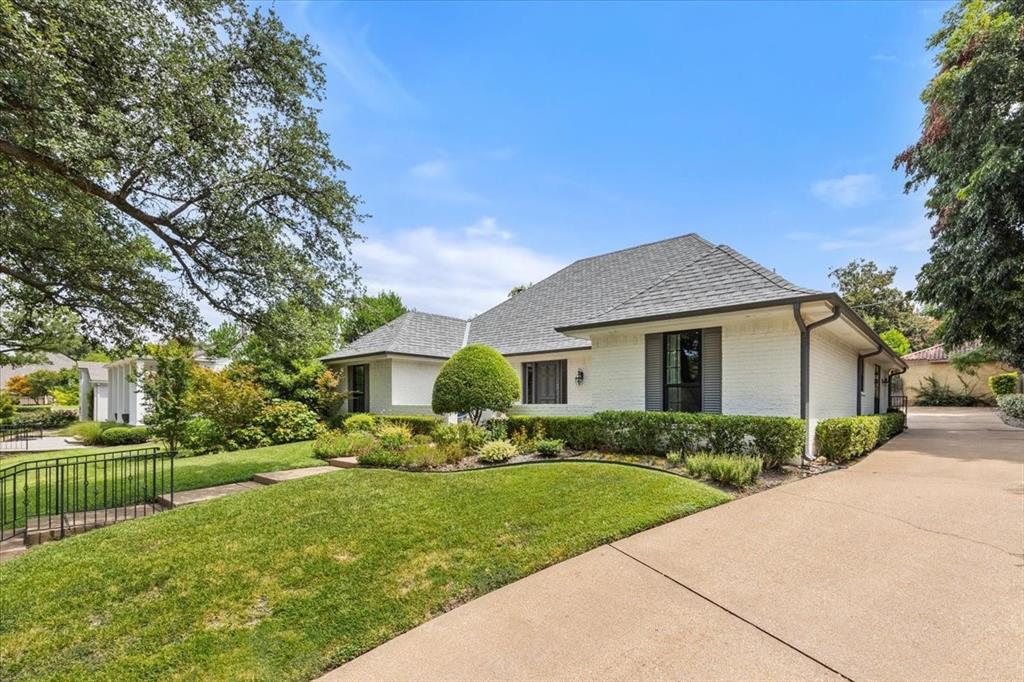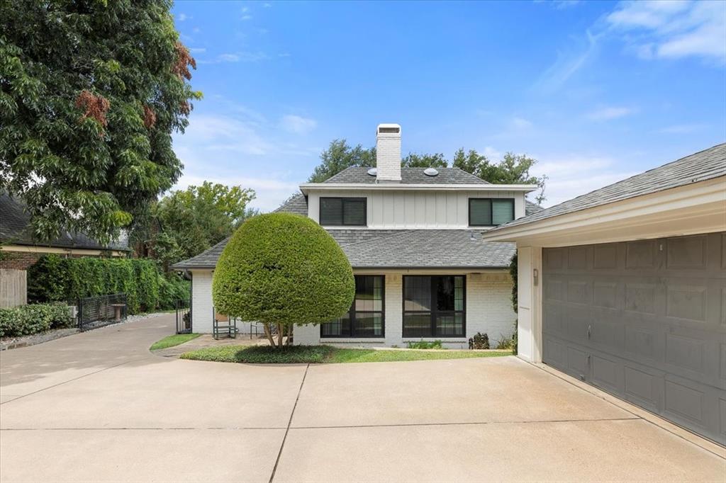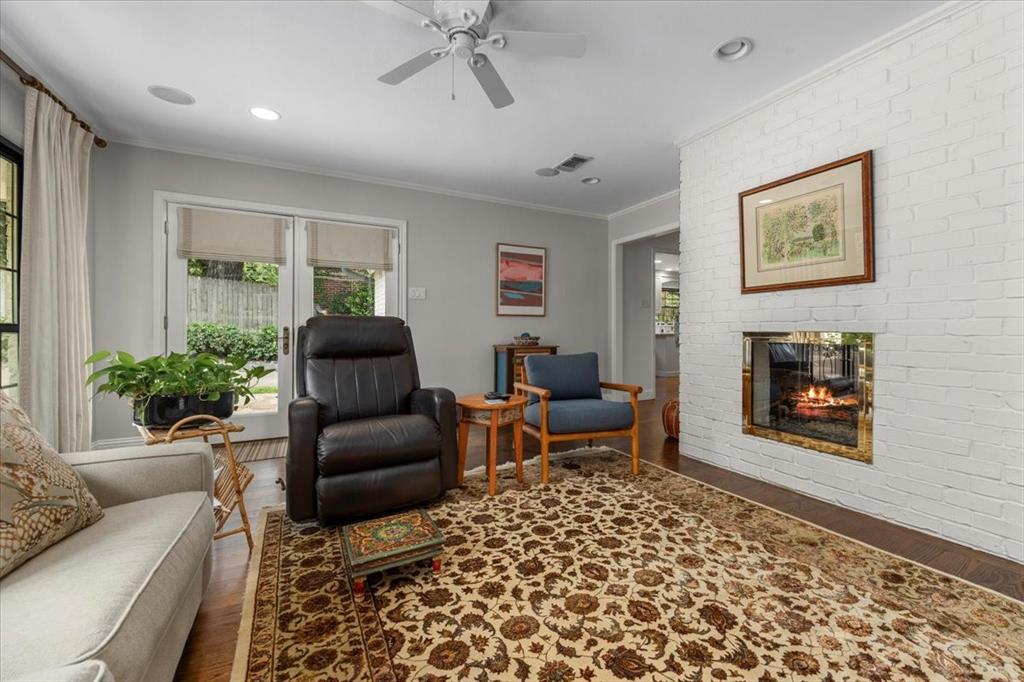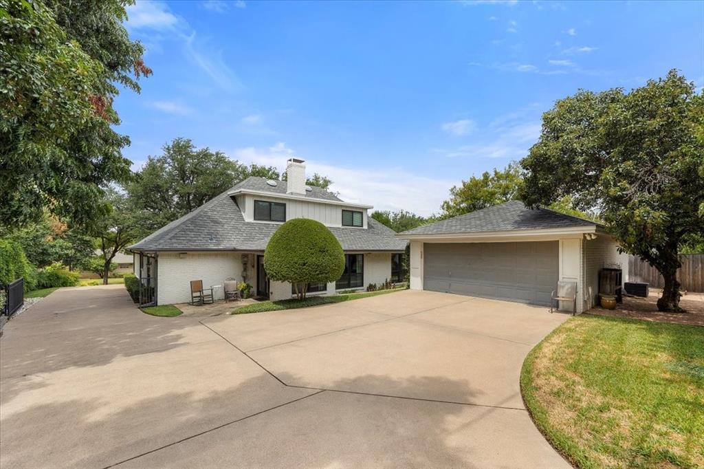 Easy living with an Elegant feel! This home is move-in ready with its light colors, beautiful gleaming wood floors, and marble counters in the kitchen and baths. Living room and family room share a see-through fireplace so each area can enjoy. The living room has a wet bar and wall of built-ins. The family room also has built-ins and is made for comfort and relaxation. Adjacent is the charming kitchen which includes a breakfast bar and built-in refrigerator, and very spacious breakfast area. Dining room is perfect for family or dinner guests. Two bedrooms are down including the primary suite which has a great sitting area and beautiful bath with marble and lots of light! Two additional bedrooms and a bath are located on the second level. The exterior includes a gated driveway and two-car garage. The home sits on an elevated lot with great views of the tree-lined street with sidewalks and the location is perfect as it is near TCU, Colonial Country Club, and great shopping!
