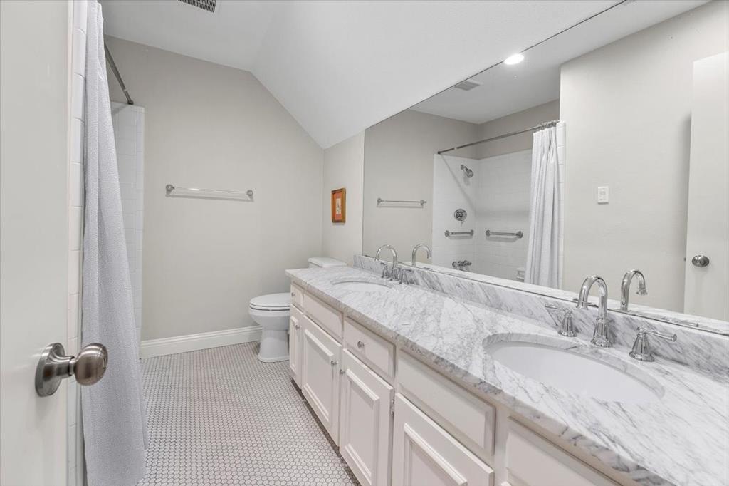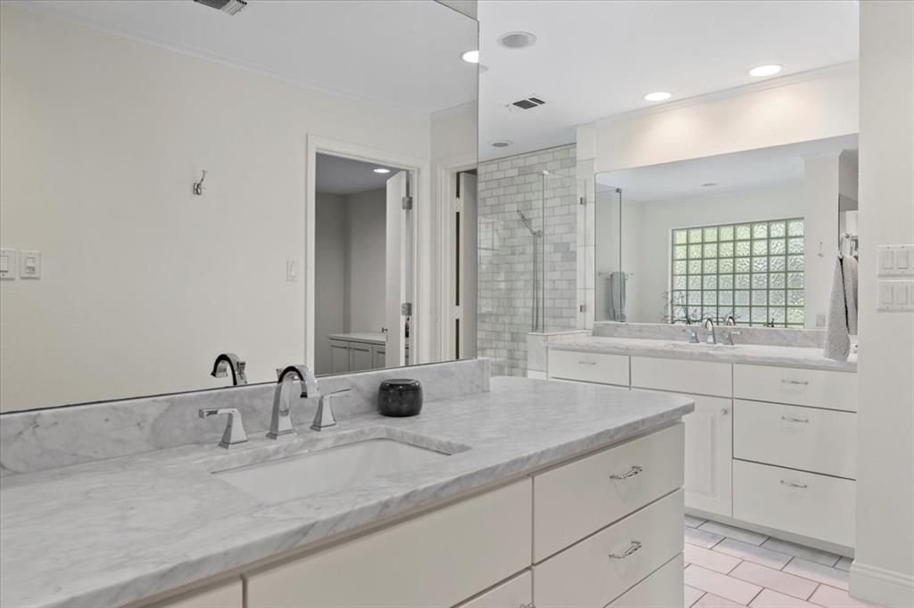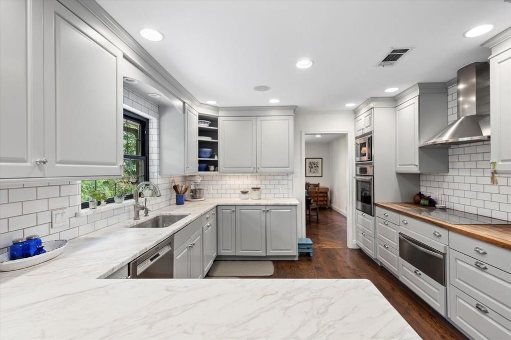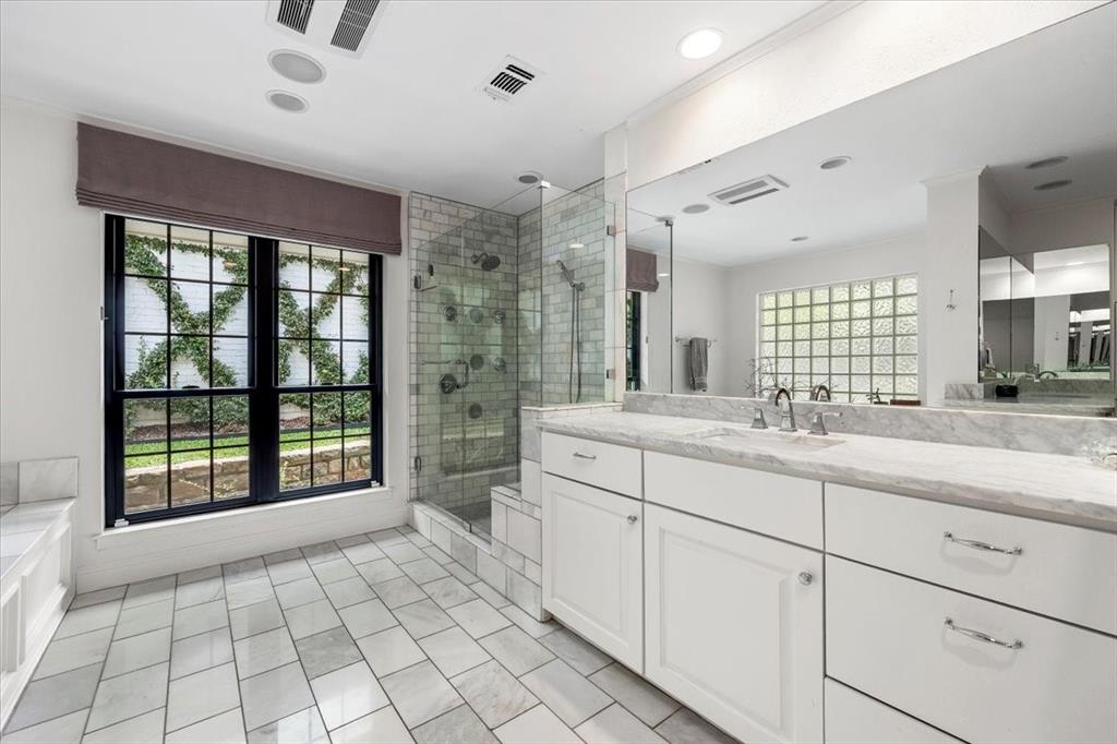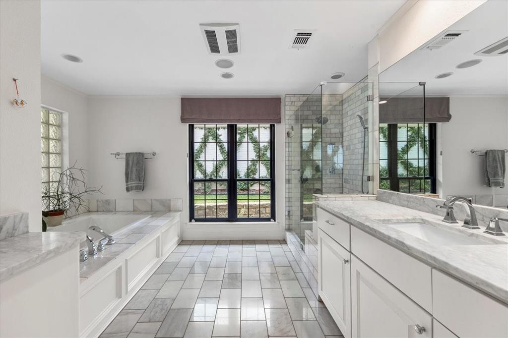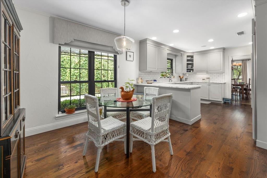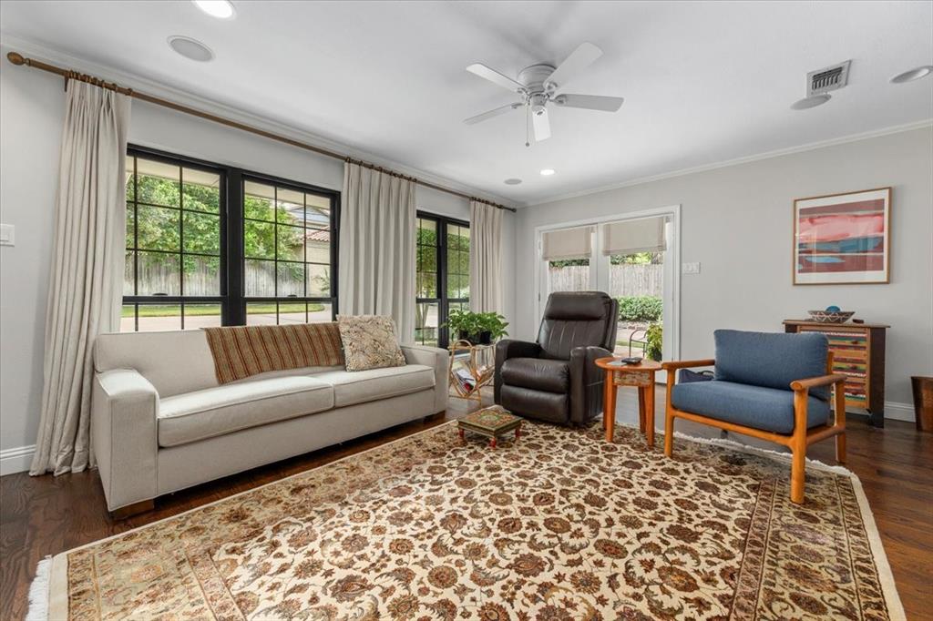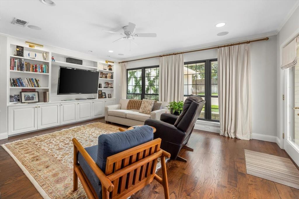 Easy living with an Elegant feel! This home is move-in ready with its light colors, beautiful gleaming wood floors, and marble counters in the kitchen and baths. Living room and family room share a see-through fireplace so each area can enjoy. The living room has a wet bar and wall of built-ins. The family room also has built-ins and is made for comfort and relaxation. Adjacent is the charming kitchen which includes a breakfast bar and built-in refrigerator, and very spacious breakfast area. Dining room is perfect for family or dinner guests. Two bedrooms are down including the primary suite which has a great sitting area and beautiful bath with marble and lots of light! Two additional bedrooms and a bath are located on the second level. The exterior includes a gated driveway and two-car garage. The home sits on an elevated lot with great views of the tree-lined street with sidewalks and the location is perfect as it is near TCU, Colonial Country Club, and great shopping!
