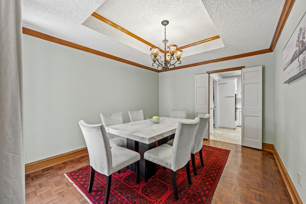 Set on an oversized, private lot, the property exudes a tranquil, country-like atmosphere while keeping you close to everything. A circular driveway and oversized garage with an EV car charger provide both functionality and curb appeal. Inside, you’re welcomed by original parquet flooring in the entry and formal dining area, decorative moulding, a trayed ceiling, designer lighting, and a tiled fireplace with a decorative mantle. The spacious open kitchen features quartz countertops, raised-panel painted cabinetry, tiled backsplash, a breakfast nook with built-in desk, and flows seamlessly into the generous living room—perfect for family gatherings.
