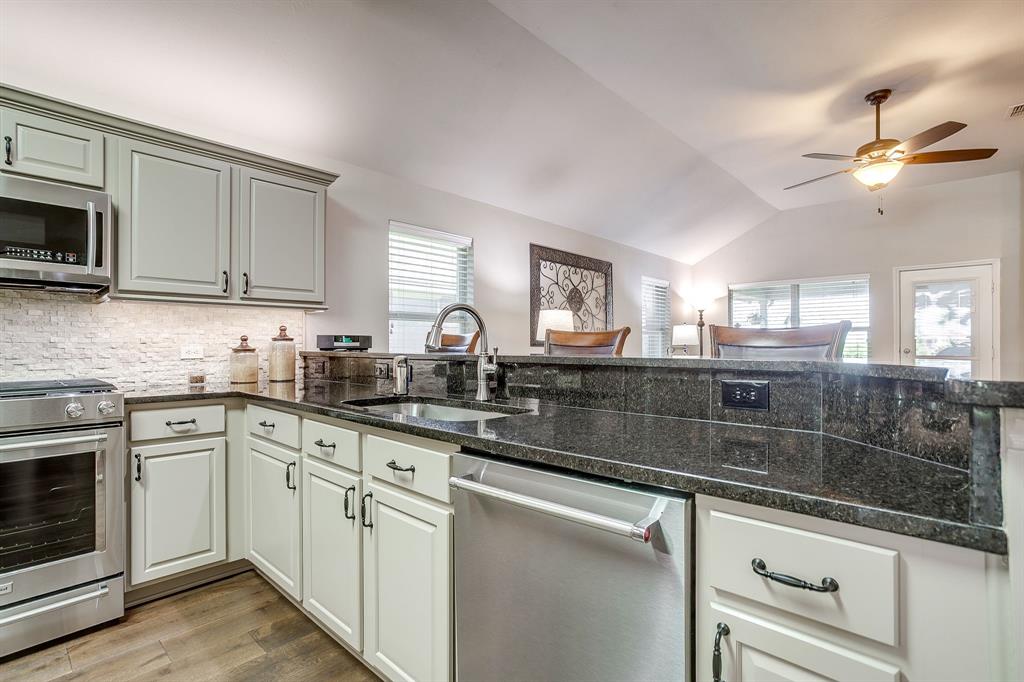 Beautifully maintained 3 bed 2 bath single story home in the well established Vista West neighborhood in West Fort Worth. This home boasts a formal dining room, oversized kitchen with granite countertops and stainless steel appliances, open concept, and gorgeous stone fireplace. The meticulously landscaped backyard provides an outdoor oasis complete with a covered patio that is great for backyard barbecues, enjoying your morning coffee, or watching the sun set. This home also has a generous owner's suite and a second living area. It is truly one of the most beautiful homes in the neighborhood.