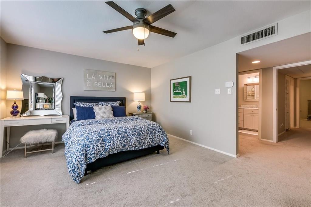 Discover refined living in this beautifully updated condominium at Northpark Garden Townhomes, ideally situated near NorthPark Center, SMU, and University Park. Step inside to a spacious living area with abundant natural light, a refinished powder bath, and seamless access to a private, landscaped patio—perfect for entertaining or quiet mornings. The thoughtfully updated galley kitchen features sleek countertops, modern appliances, and a breakfast room that opens to the patio for an easy indoor-outdoor flow. Upstairs, the generous primary suite includes a walk-in closet, a cozy sitting area, and a refreshed spa-like bath. The secondary bedroom is equally well-appointed with a large closet and an updated hall bath, offering flexibility for guests, an office, or a second suite. This well-maintained community offers more than just a home: enjoy the sparkling pool, lush courtyards, and the convenience of two assigned covered parking spaces. The HOA covers all utilities, ensuring worry-free living.
