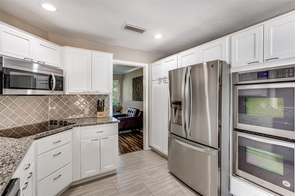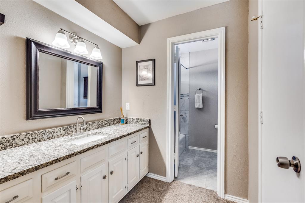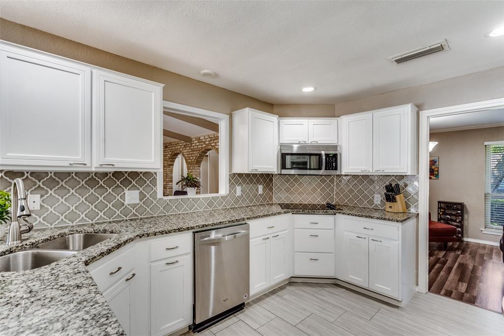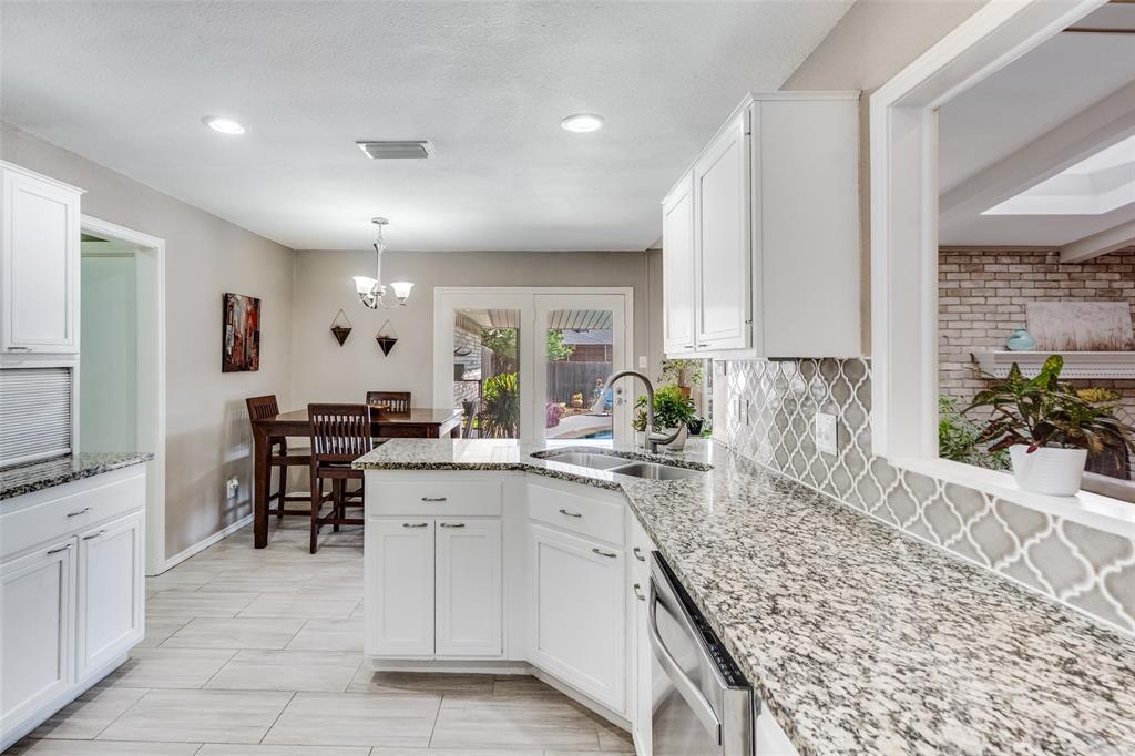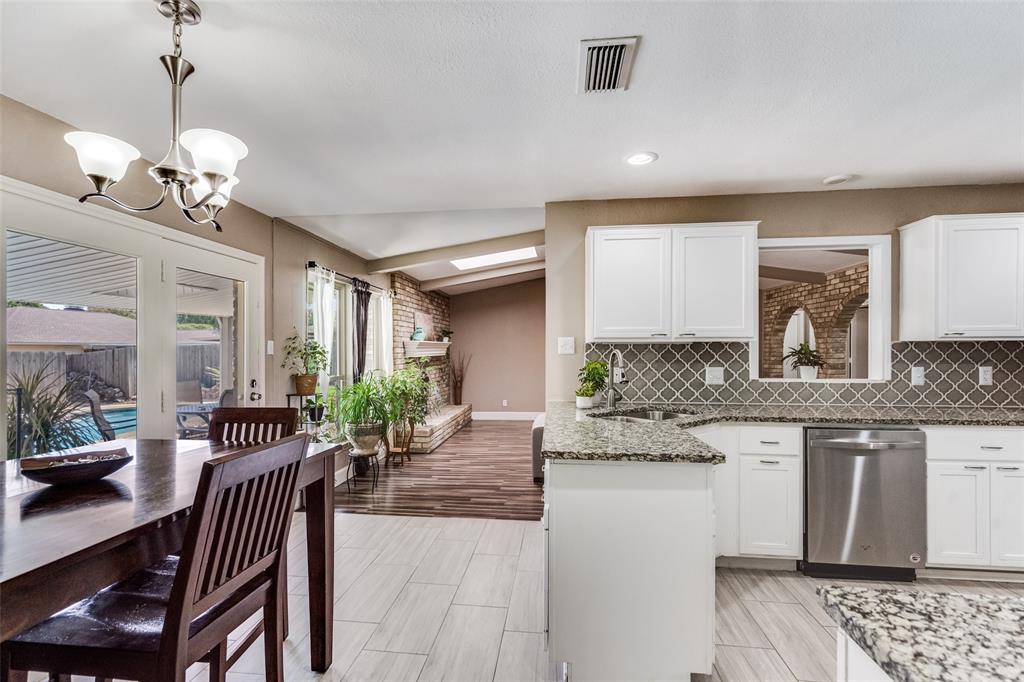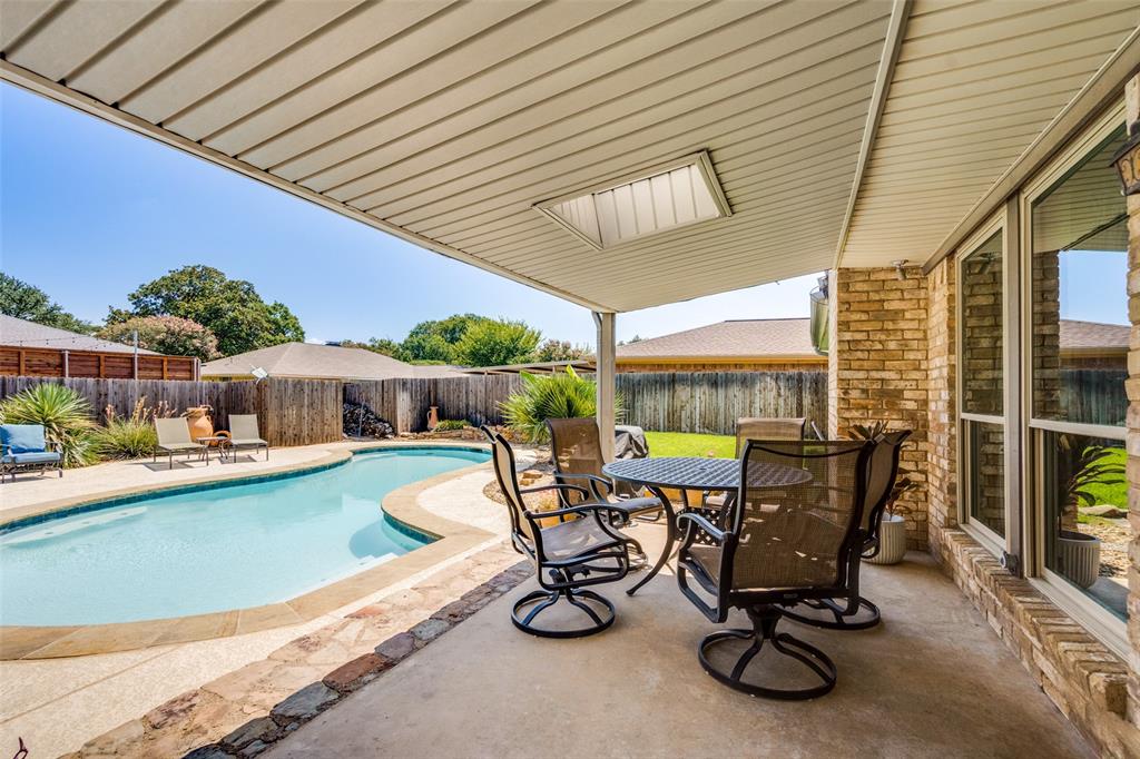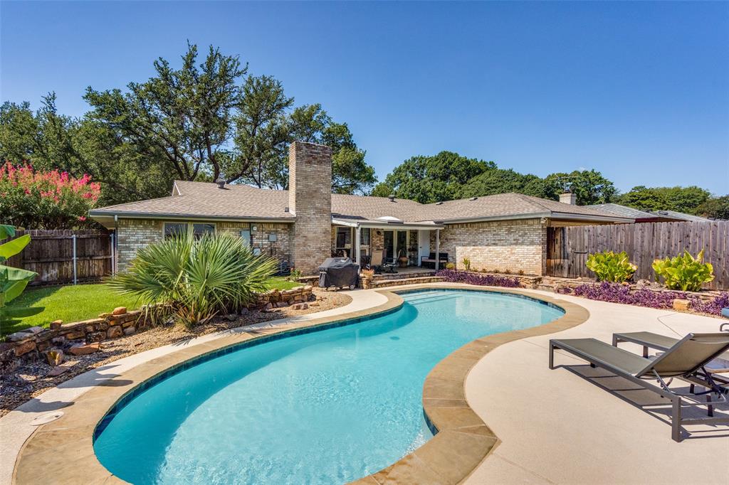 This charming single-story home located in West Plano features 4 bedrooms, 2.5 baths, on an oversized lot with mature trees. A desirable split bedroom floor plan is ideal with a secluded primary suite large enough for a small sitting area. The three additional bedrooms are enhanced with fresh new carpeting. The updated kitchen offers beautiful backsplash, double ovens, electric cook-top, nice cabinetry and custom pantry, and breakfast nook looking out to the pool. The main living area presents vaulted ceilings capturing natural light through the skylight. In the winter months cozy up to the artful arched fireplace. Summer is here to enjoy the oversized resort-style pool with a beautifully landscaped backyard. Conveniently positioned near PGBT, Legacy West, The Shops at Willow Bend and restaurants and local business.
