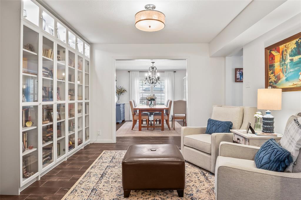 Welcome to your dream retreat in the heart of Franklin Hills, one of West Flower Mound’s most established and tree-lined neighborhoods. This stunning 5-bedroom, 5-bathroom home offers the perfect balance of luxury and warmth, thoughtfully designed to bring people together while still providing space for everyone. From the moment you step through the front door, you're greeted with a sense of comfort and ease. Natural light pours in, highlighting the rich textures and inviting spaces that make this home feel truly special. The first floor features two spacious living areas, a cozy library, a welcoming dining room, and a sunroom that opens onto your private backyard oasis. Tucked behind a charming barn door, you'll find a beautifully designed guest or mother-in-law suite complete with its own bedroom, full bathroom, the sunroom and its own designated entrance—perfect for hosting family or long-term guests. Upstairs, 4 more bedrooms await, including a serene and oversized primary suite with a spa-inspired en-suite bath. A second upstairs bedroom also boasts its own private bathroom, and a dedicated office space offers a quiet place to work or create. Step outside and you'll fall in love all over again. The lush backyard is a peaceful sanctuary featuring mature landscaping, a sparkling pool with a tranquil waterfall, a spacious grassy area for play, and a covered patio with a built-in TV and grilling area—ready for year-round entertaining. This is more than just a house—it’s a home that wraps you in warmth, invites you to stay awhile, and makes everyday living feel extraordinary. Come see for yourself what makes this Franklin Hills gem so unforgettable.