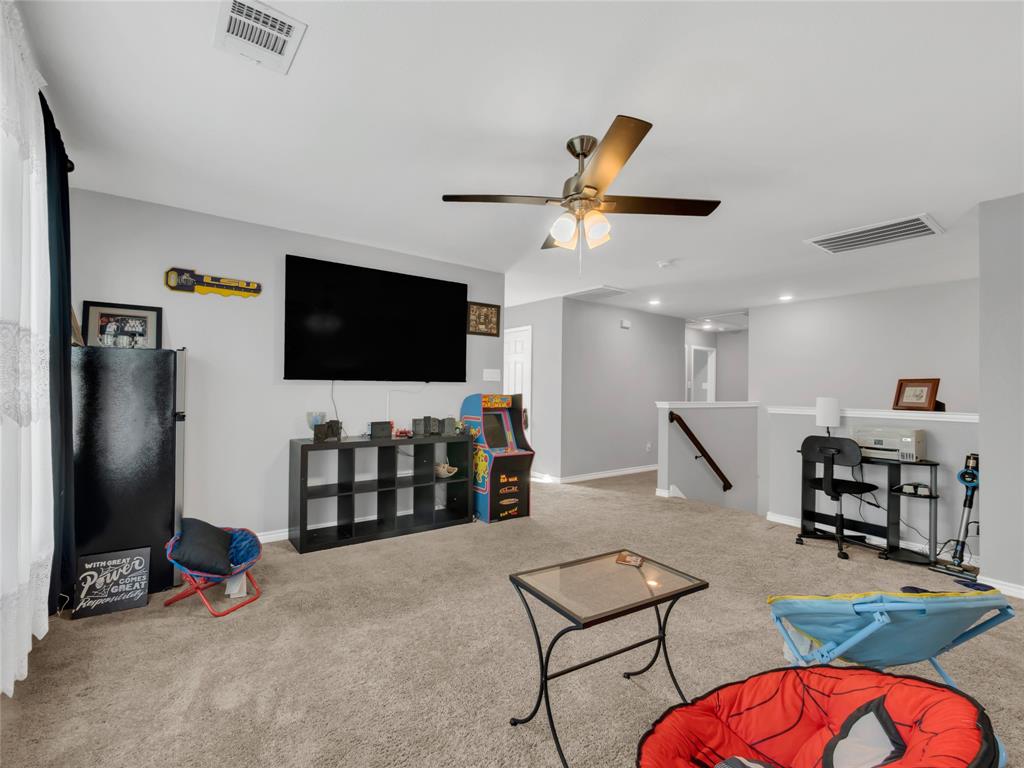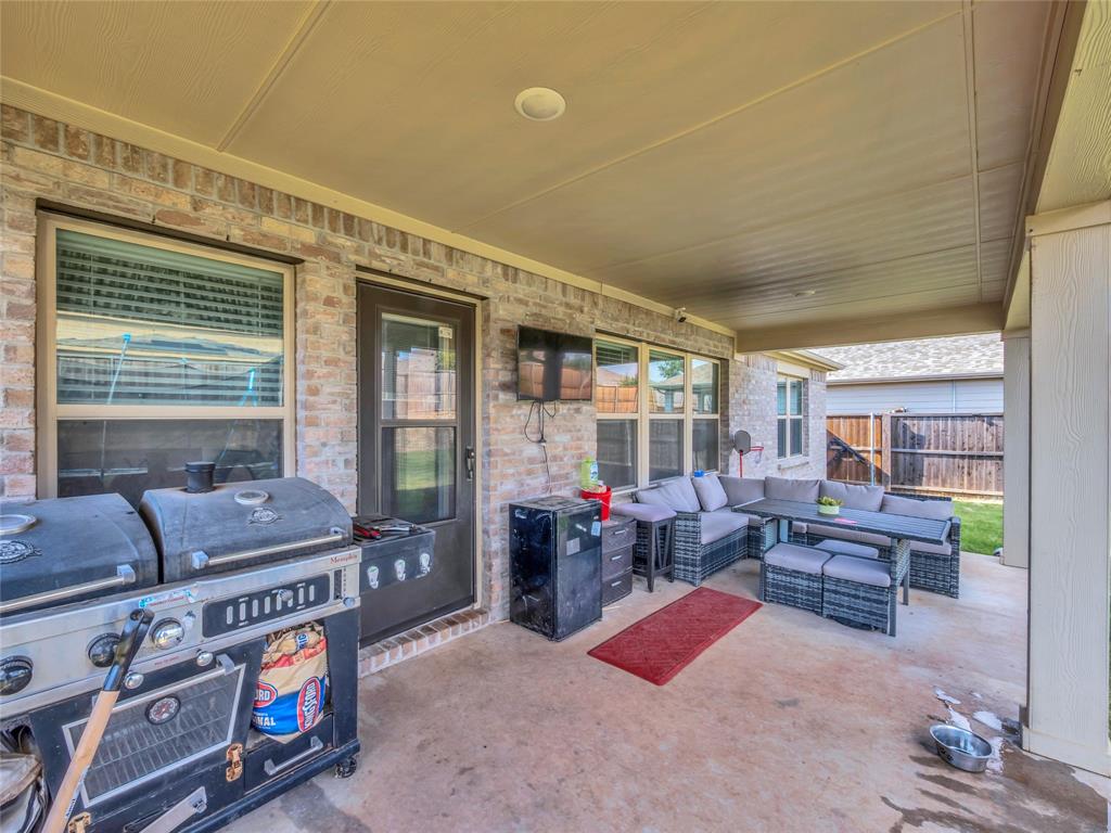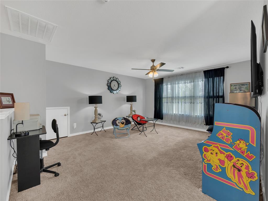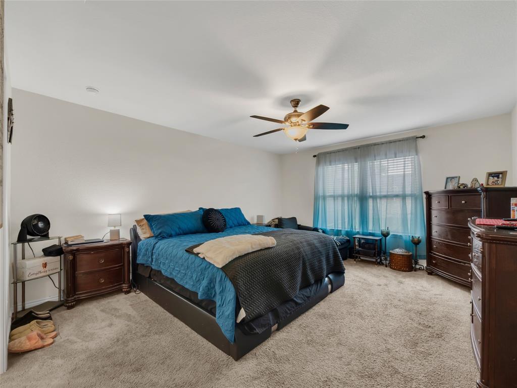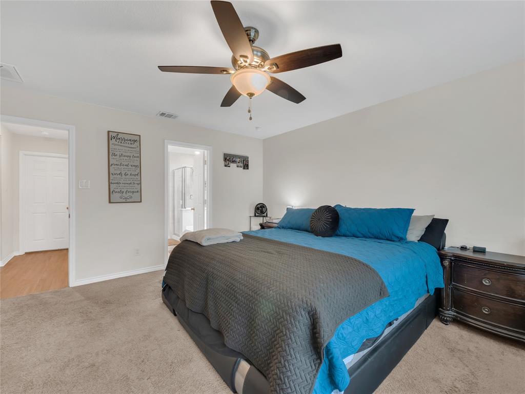 Move-in ready 5 bedroom, 3 bath home in the beautiful Winn Ridge community in Aubrey. Spacious open floor plan living, dining, kitchen space that maximizes your square footage and provides lots of flexibility. Easy to maintain vinyl plank floors throughout the main living areas. The kitchen features tons of cabinet & counter space, granite counter tops, stainless steel appliances, motion activated under cabinets lights and a huge eat at island with breakfast bar. The primary suite includes a large walk in closet and en suite bath with dual sinks, standing shower and garden tub. Large game room or additional living room on the second floor with three spacious bedrooms and a full bath. All bedrooms feature plush carpeting, ceiling fans, window covering and walk-in closets. 5th bedroom guest suite on the 1st floor with full bath would also make a great office space. Enjoy time with family and friends on the shady covered patio in your large, fully grassed backyard with wood privacy fence with solar accent lighting. Corner lot provides an additional side yard or dog run area. Lovely Winn Ridge offers a wide range of family-friendly amenities. Enjoy summers under the cabana at the resort-style pool and afternoons at the park or a quick match at the tennis courts. Take advantage of being within close proximity to shopping, dining and entertainment as Highway 380, I-35 and Dallas North Tollway are all a short drive away. Zoned for highly-rated Denton ISD schools including the brand new Ray Braswell High School.