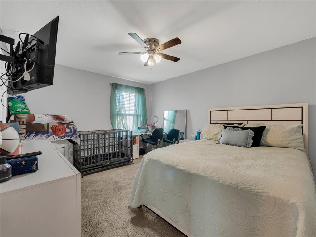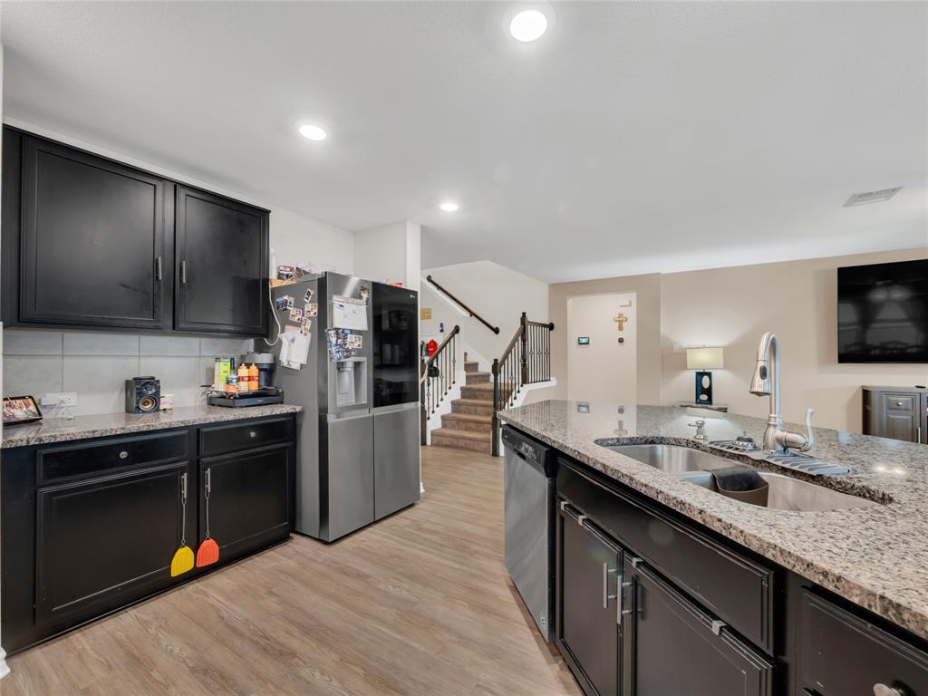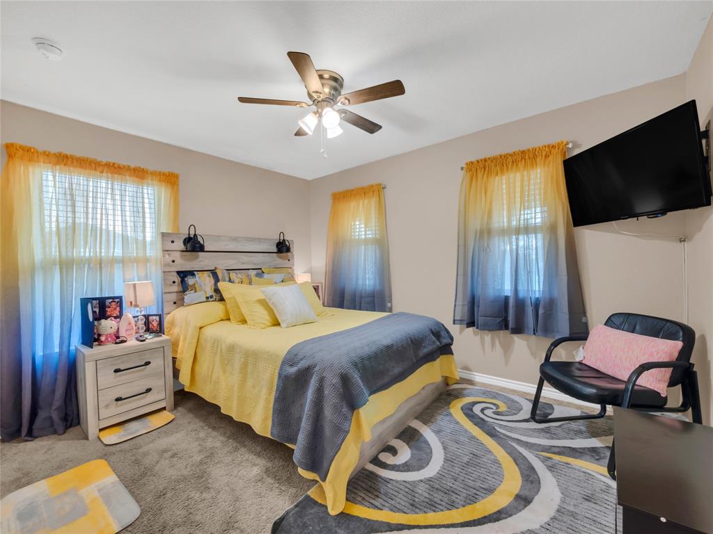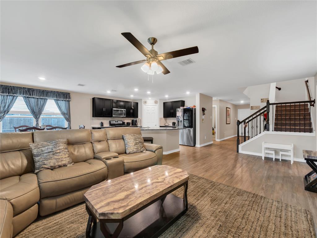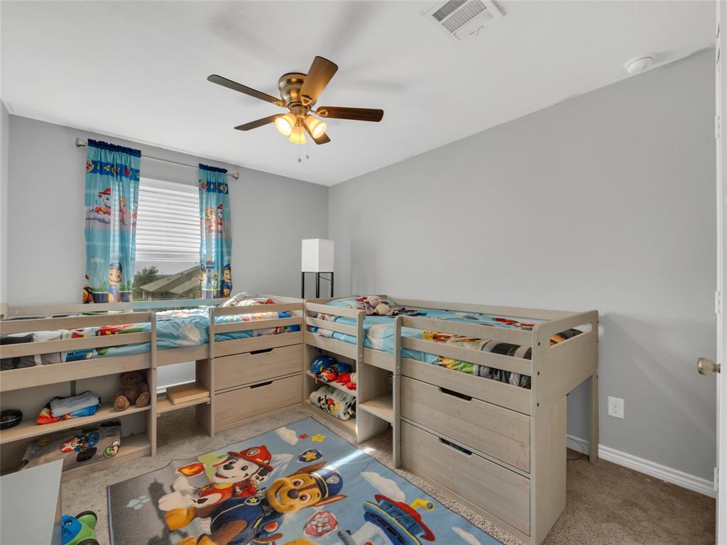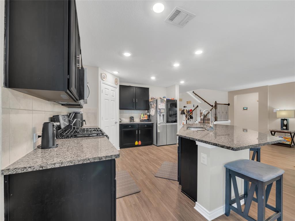 Move-in ready 5 bedroom, 3 bath home in the beautiful Winn Ridge community in Aubrey. Spacious open floor plan living, dining, kitchen space that maximizes your square footage and provides lots of flexibility. Easy to maintain vinyl plank floors throughout the main living areas. The kitchen features tons of cabinet & counter space, granite counter tops, stainless steel appliances, motion activated under cabinets lights and a huge eat at island with breakfast bar. The primary suite includes a large walk in closet and en suite bath with dual sinks, standing shower and garden tub. Large game room or additional living room on the second floor with three spacious bedrooms and a full bath. All bedrooms feature plush carpeting, ceiling fans, window covering and walk-in closets. 5th bedroom guest suite on the 1st floor with full bath would also make a great office space. Enjoy time with family and friends on the shady covered patio in your large, fully grassed backyard with wood privacy fence with solar accent lighting. Corner lot provides an additional side yard or dog run area. Lovely Winn Ridge offers a wide range of family-friendly amenities. Enjoy summers under the cabana at the resort-style pool and afternoons at the park or a quick match at the tennis courts. Take advantage of being within close proximity to shopping, dining and entertainment as Highway 380, I-35 and Dallas North Tollway are all a short drive away. Zoned for highly-rated Denton ISD schools including the brand new Ray Braswell High School.