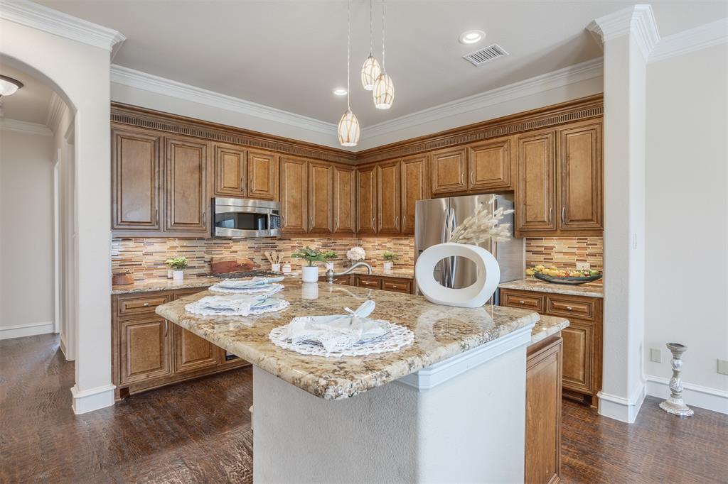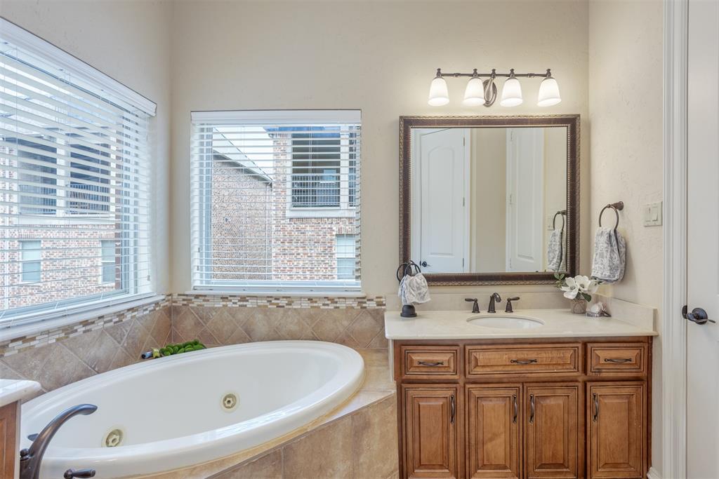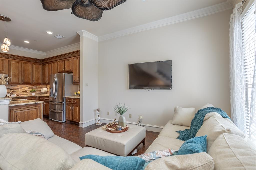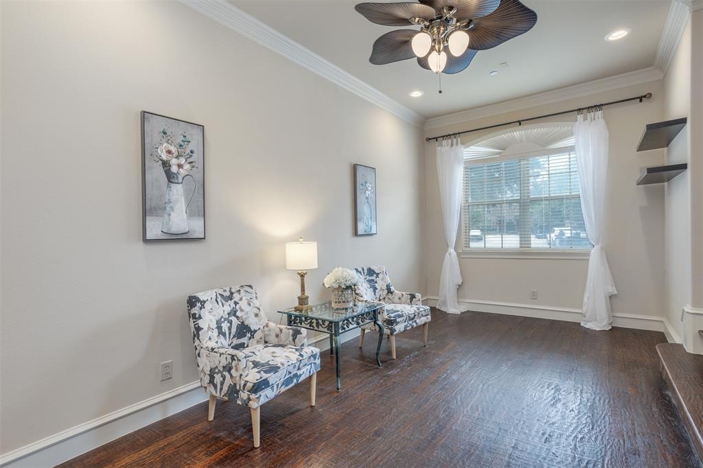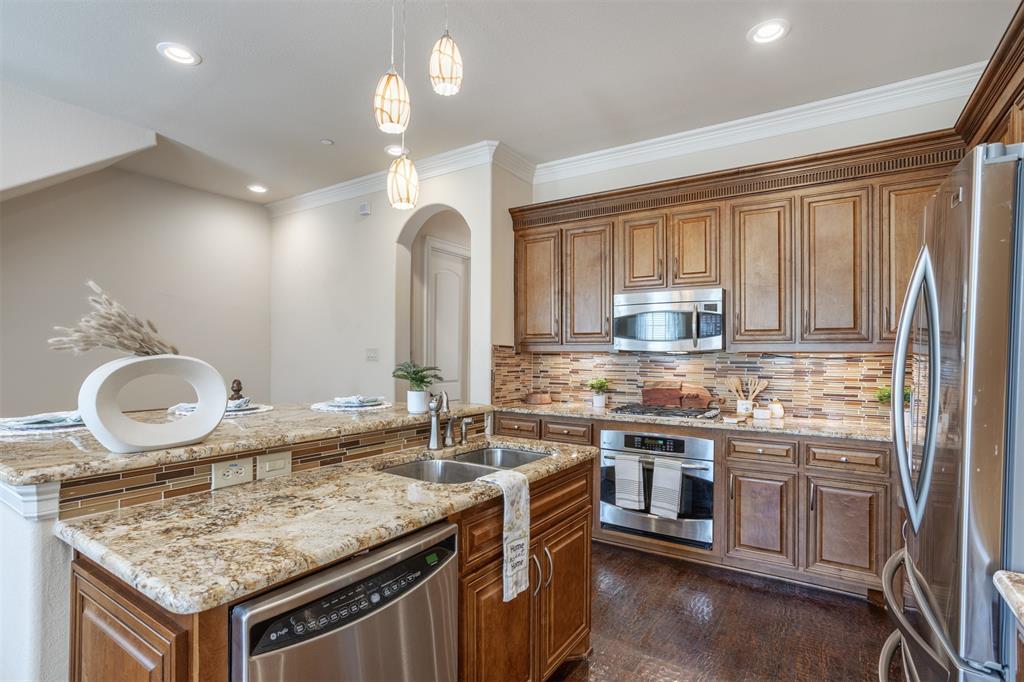 This stylish, low-maintenance townhome in one of Plano’s most desirable communities stands out with timeless marble and hand-scraped hardwood floors—no carpet anywhere. The kitchen is both sleek and functional, featuring granite countertops, stainless steel appliances, and pull-out wire shelving in the rich maple cabinets. Oversized windows and its rare corner-unit position fill the home with natural light, while iron spindles, crown molding, and custom finishes add character throughout. The master retreat offers dual walk-in closets and a spa-like bath with a jetted tub and separate shower. The layout flows with intention: a private living area with powder bath on the main floor, an airy second-level gathering space anchored by the kitchen and dining, and a top floor with two bedrooms, a full bath, and an additional living area—perfect for guests or flexible use. Just minutes from Legacy West, The Shops at Legacy, and major highways, this home provides quick access to premier dining, shopping, and entertainment, along with a true lock-and-leave lifestyle. Located in award-winning Frisco ISD, 5709 Knox Dr is move-in ready and priced to sell—don’t miss your chance to call this one home!