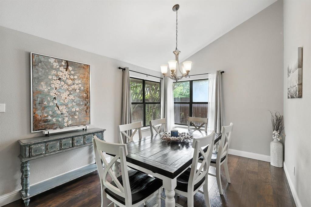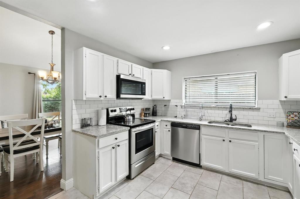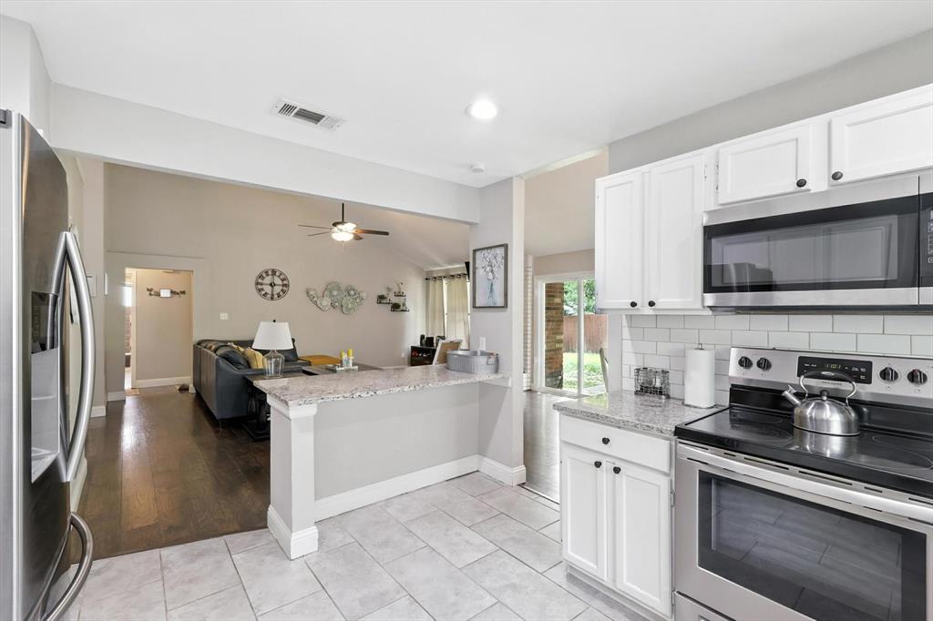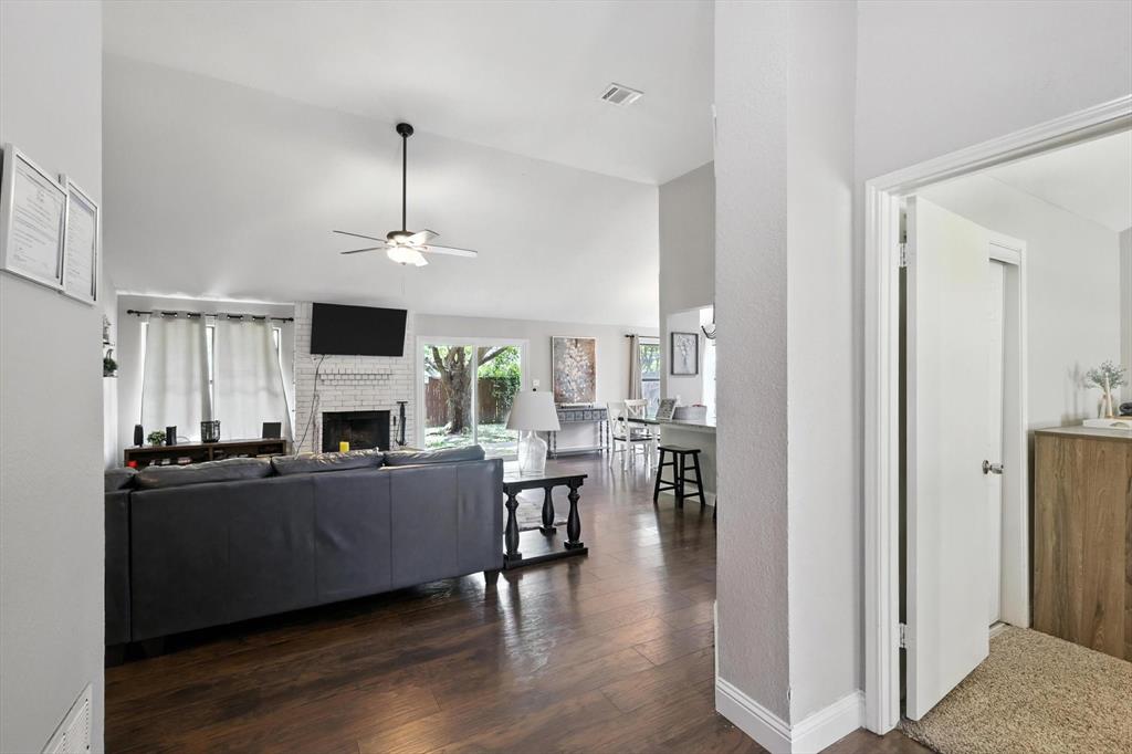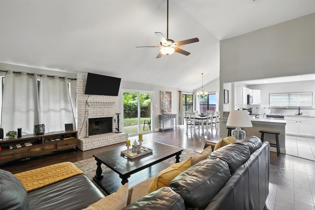 Absolutely ADORABLE and thoughtfully updated, this 4-bedroom home backs to a peaceful greenbelt and offers the perfect blend of comfort, style, and convenience! Step inside to find a light-filled open-concept layout with large windows, modern finishes, and neutral tones throughout that create a fresh, timeless feel. The expansive living and dining area is anchored by a classic brick fireplace and stunning updated flooring, ideal for everyday living and entertaining.