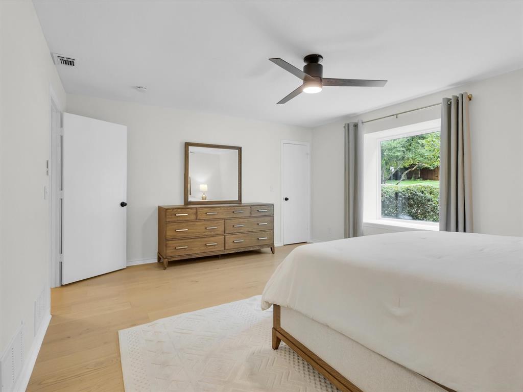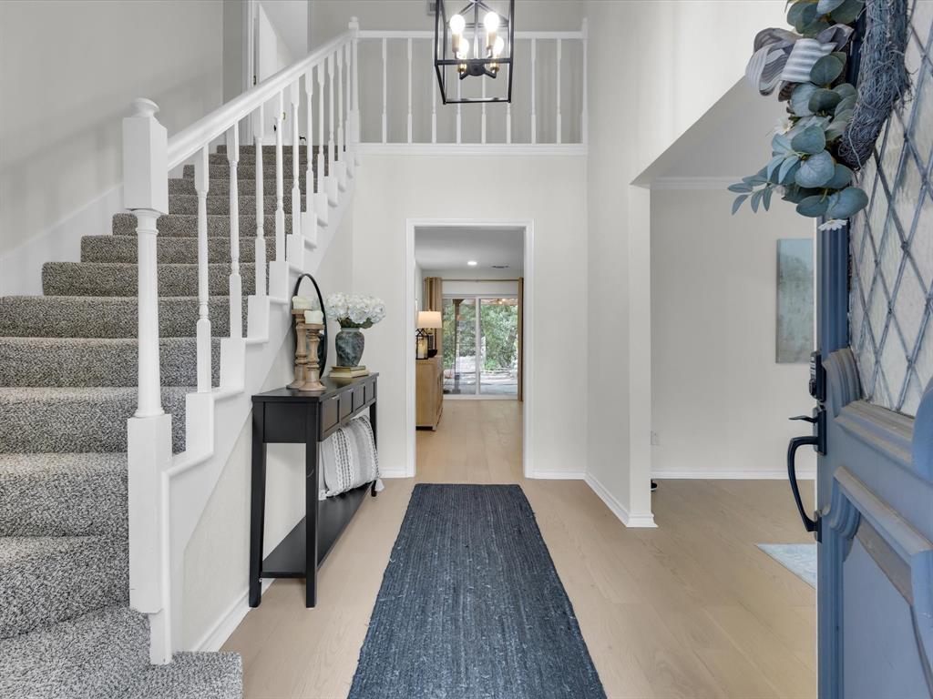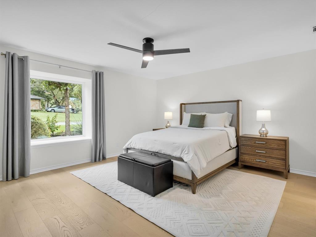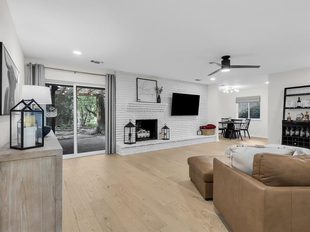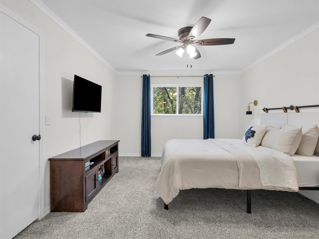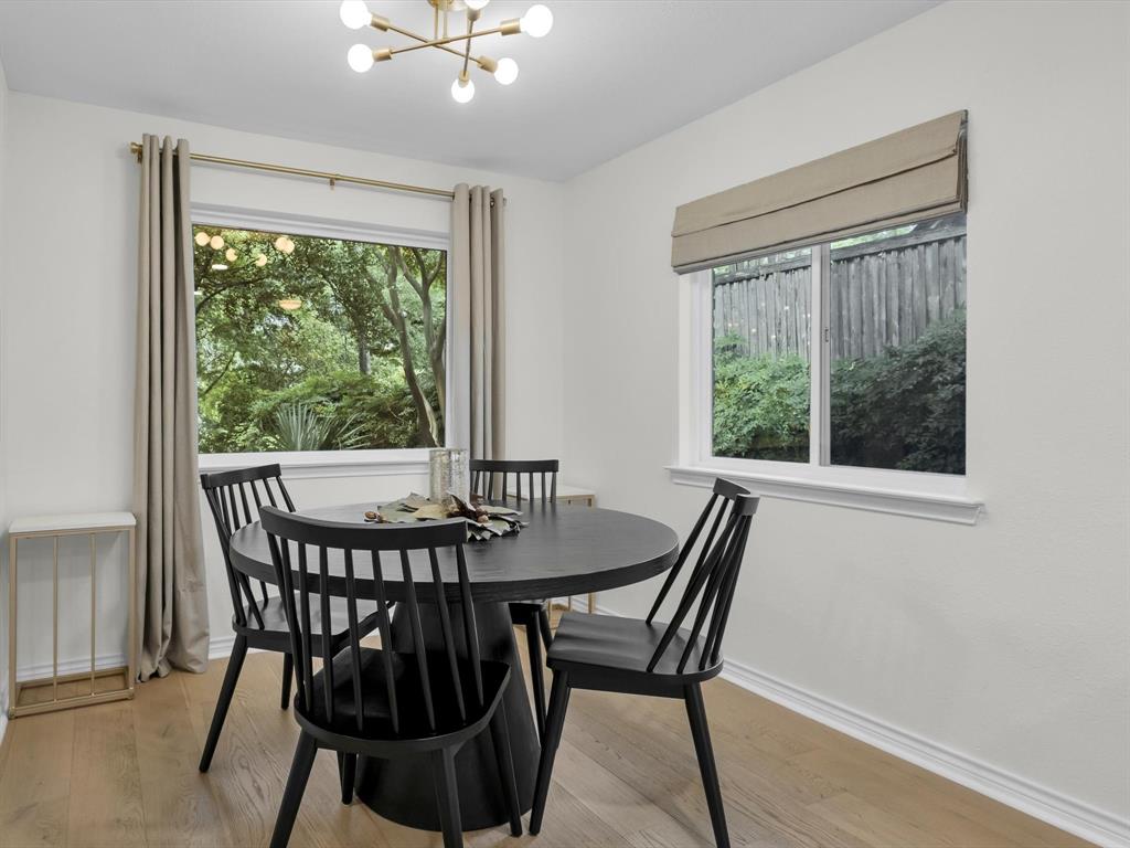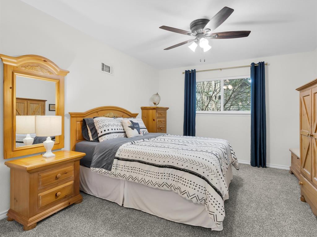 Beautiful creek lot! This spacious 4-bedroom home offers a thoughtful floor plan with the primary suite downstairs and three bedrooms up. Stylish and thoughtful updates include wood flooring throughout the main level, quartz countertops, updated windows, and plumbing. And HVAC replaced in 2023. Your living room features a cozy fireplace and long hearth. Primary retreat with en suite bath including large walk in shower, and charming choice of tile. The kitchen offers lots of cabinet and spacious drawers for storage, a striking backsplash and stainless steel appliances. The formal living and dining room are currently being used as an office and craft room - these are great flex spaces and can be separated with a translucent barn door! Set on a third-acre lot shaded by mature trees, the backyard feels like a private retreat. Enjoy multiple sitting areas that step down toward the creek, a charming arbor, and plenty of space for outdoor living and entertaining. With its combination of modern updates and tranquil outdoor setting, this home is the perfect blend of comfort and character. Truly move in ready!
