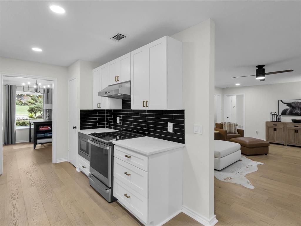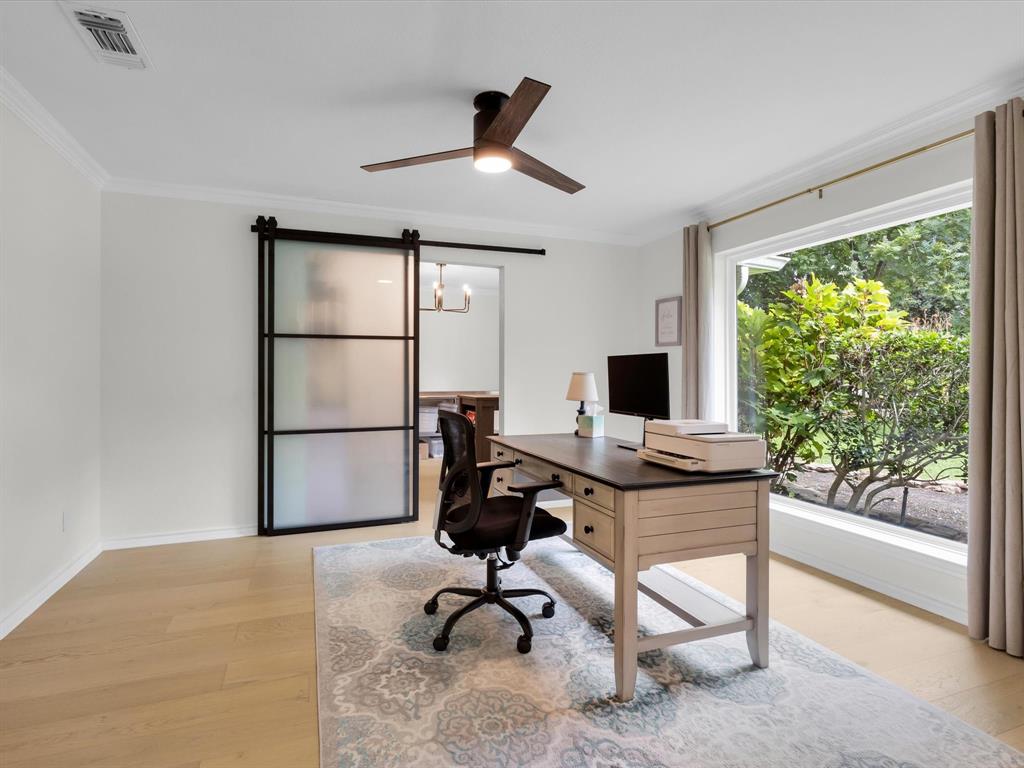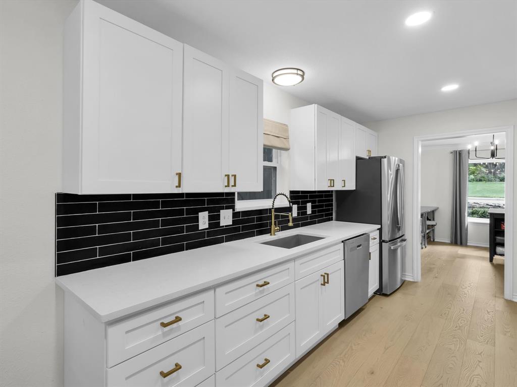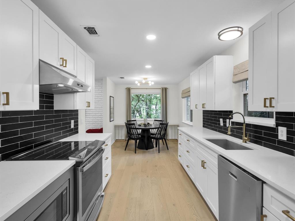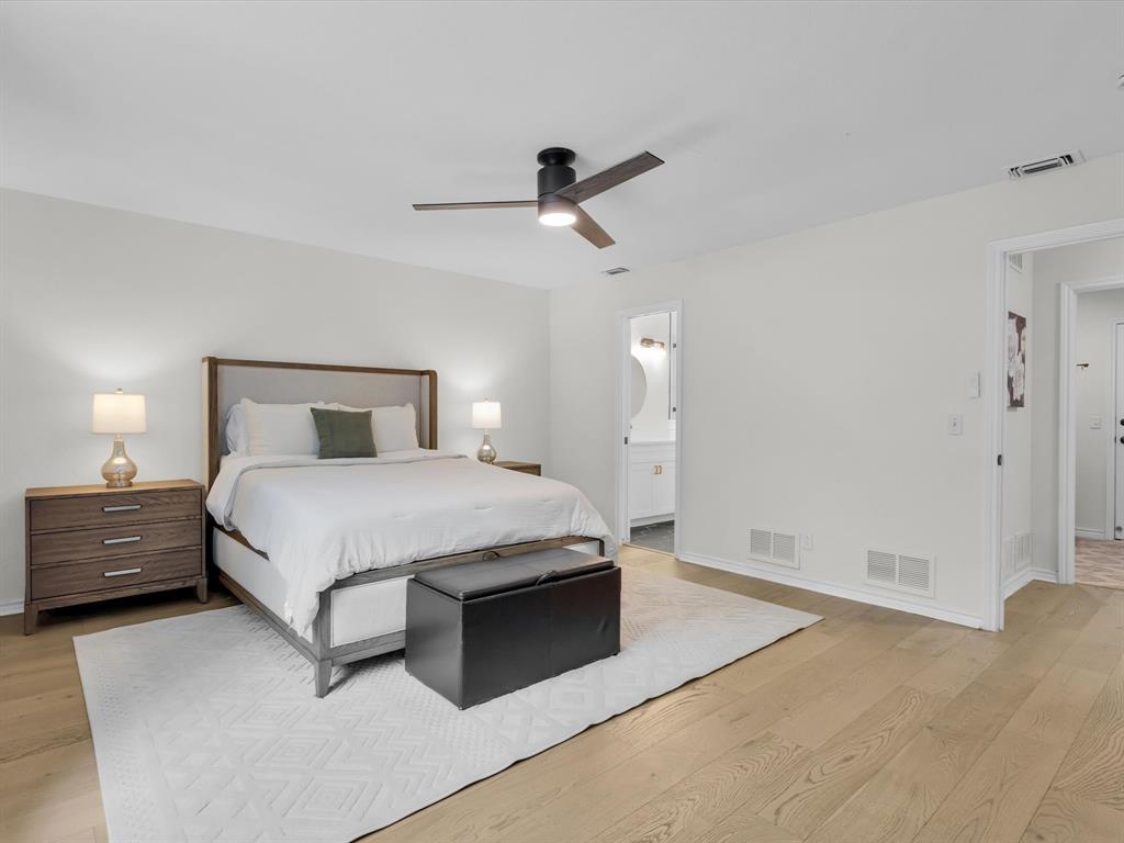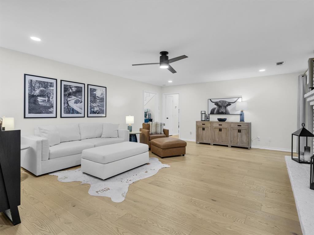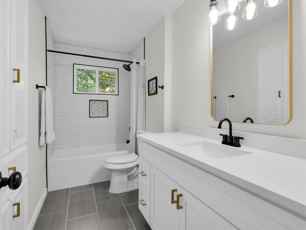Beautiful creek lot! This spacious 4-bedroom home offers a thoughtful floor plan with the primary suite downstairs and three bedrooms up. Stylish and thoughtful updates include wood flooring throughout the main level, quartz countertops, updated windows, and plumbing. And HVAC replaced in 2023. Your living room features a cozy fireplace and long hearth. Primary retreat with en suite bath including large walk in shower, and charming choice of tile. The kitchen offers lots of cabinet and spacious drawers for storage, a striking backsplash and stainless steel appliances. The formal living and dining room are currently being used as an office and craft room - these are great flex spaces and can be separated with a translucent barn door! Set on a third-acre lot shaded by mature trees, the backyard feels like a private retreat. Enjoy multiple sitting areas that step down toward the creek, a charming arbor, and plenty of space for outdoor living and entertaining. With its combination of modern updates and tranquil outdoor setting, this home is the perfect blend of comfort and character. Truly move in ready!