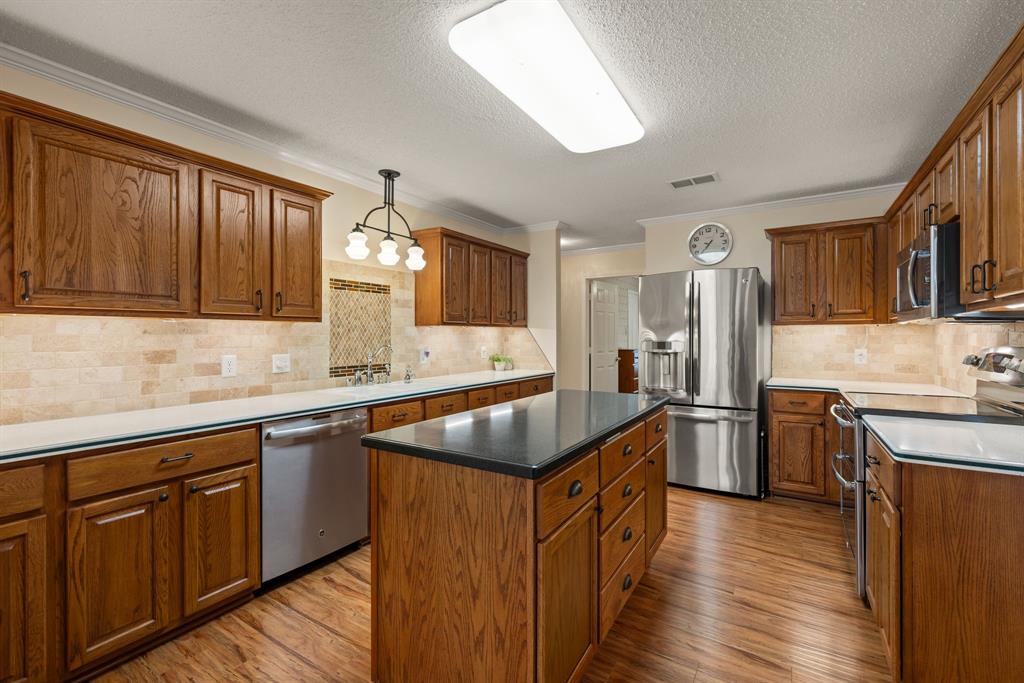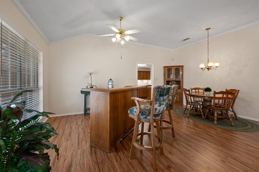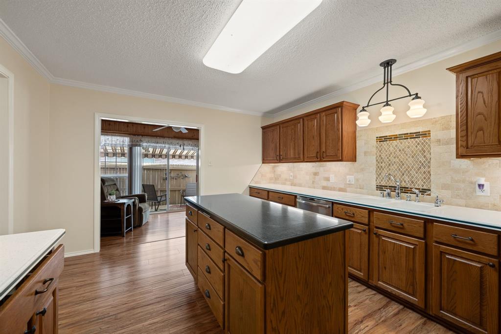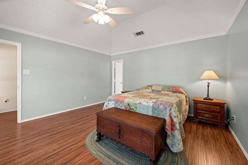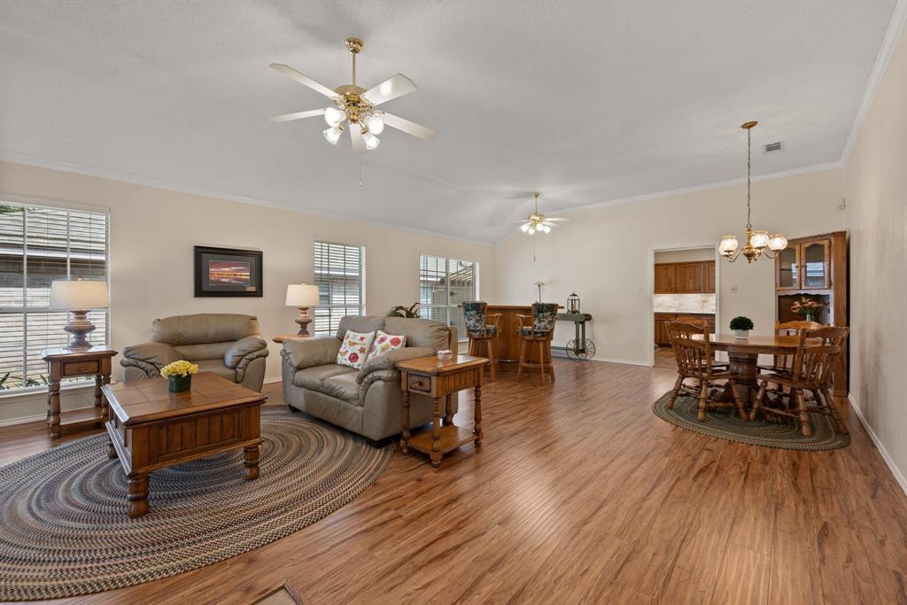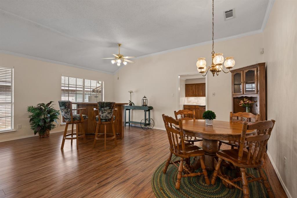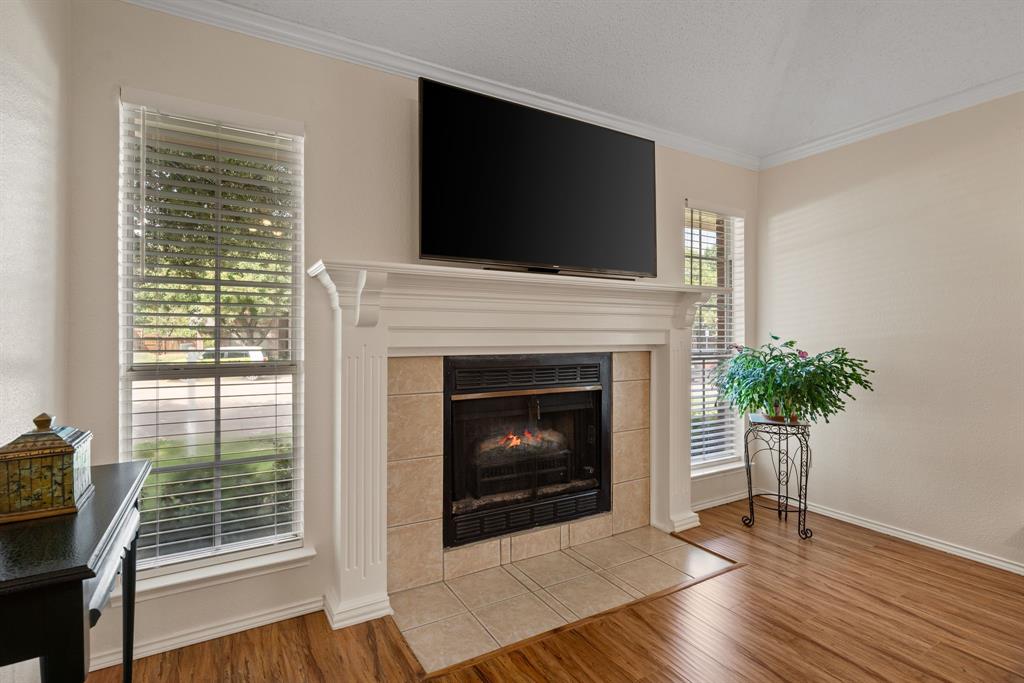 Welcome to your dream home in the sought-after Bell Ranch Terrace community! This beautifully cared-for single-story gem offers 3 spacious bedrooms, each with its own walk-in closet, 2 bathrooms, a 2-car garage with built-in cabinets, and a fabulous flex room that would make a great office, sunroom or even a breakfast area. From the moment you step inside, you’ll fall in love with the light-filled, open layout featuring vaulted ceilings, walls of windows, and warm laminate flooring and crown molding throughout. The chef’s kitchen is perfect for cooking and entertaining, boasting abundant Red Oak cabinetry with under lighting, updated solid surface countertops, stunning stone tile backsplash and sleek stainless steel appliances including a refridgerator and a convection microwave and oven. Your private primary retreat is a true sanctuary, with a bay window for natural light, 2 walk-in closets, and a spa-like ensuite complete with seperate vanities, garden tub and walk-in shower. Start your mornings in the sunny enclosed porch or out on the covered deck. Ideally located near top-rated schools, shopping, dining, and just minutes from DFW Airport, this home truly has it all.