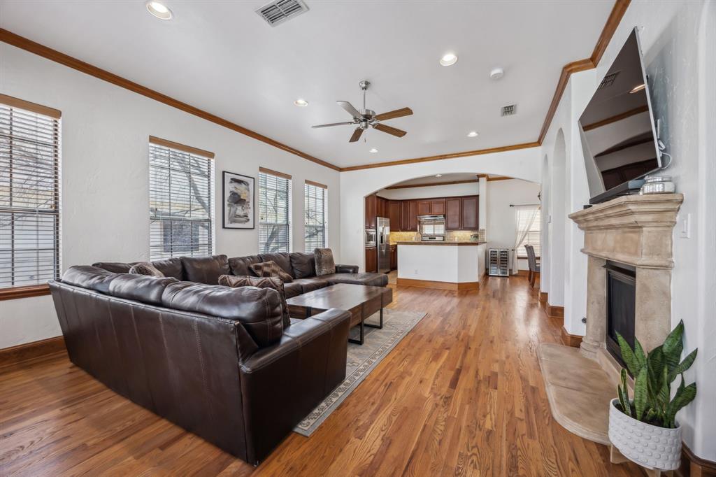 Welcome to 1012 Pavillion St, a stylish corner-unit townhouse in the heart of Bryan Place, just minutes from Downtown Dallas and Exall Park. Step inside to find a bright, open layout with hardwood floors, fresh interior paint, and natural wood accents. The main living level features a spacious living room with a fireplace and Juliet balcony, plus a dining area and kitchen with granite counters, stainless appliances, gas range, and breakfast nook.