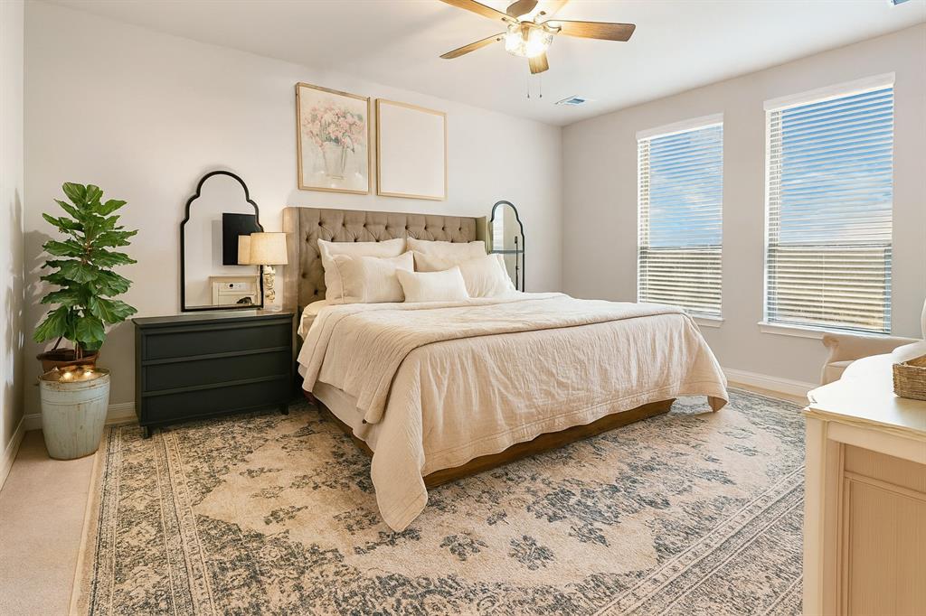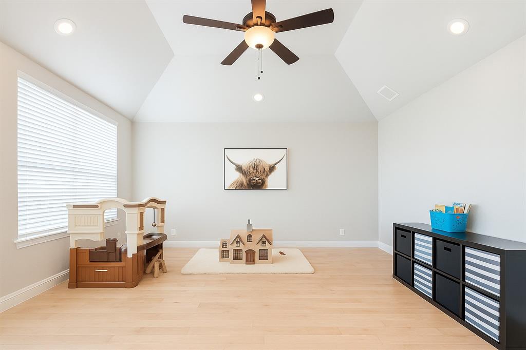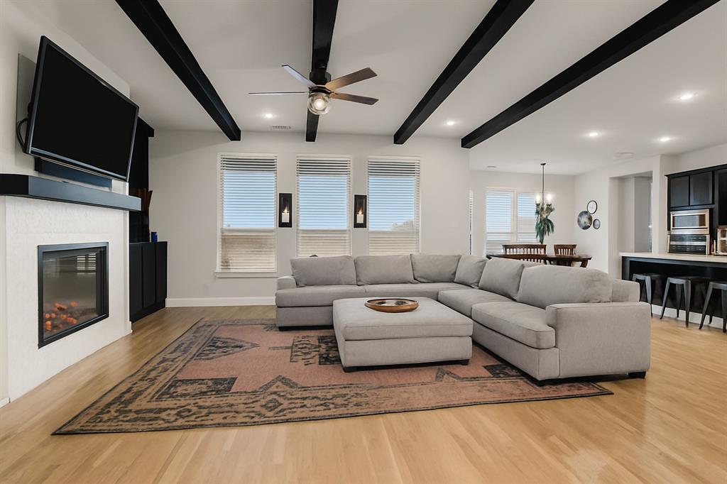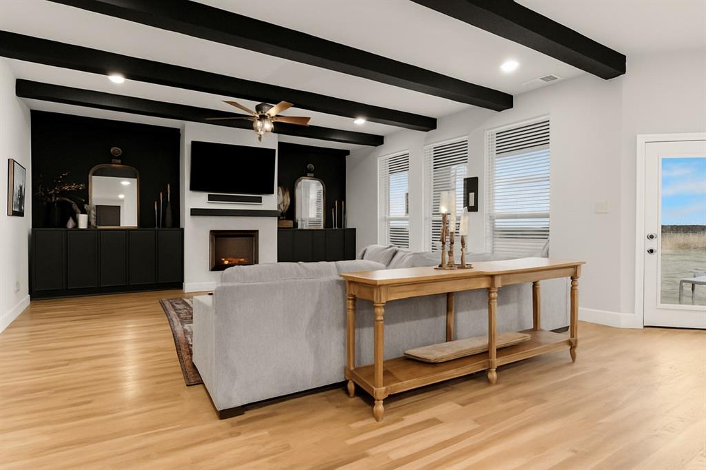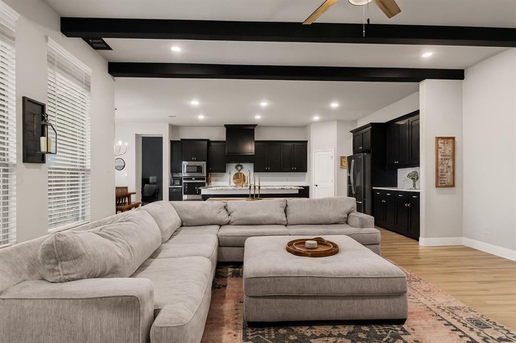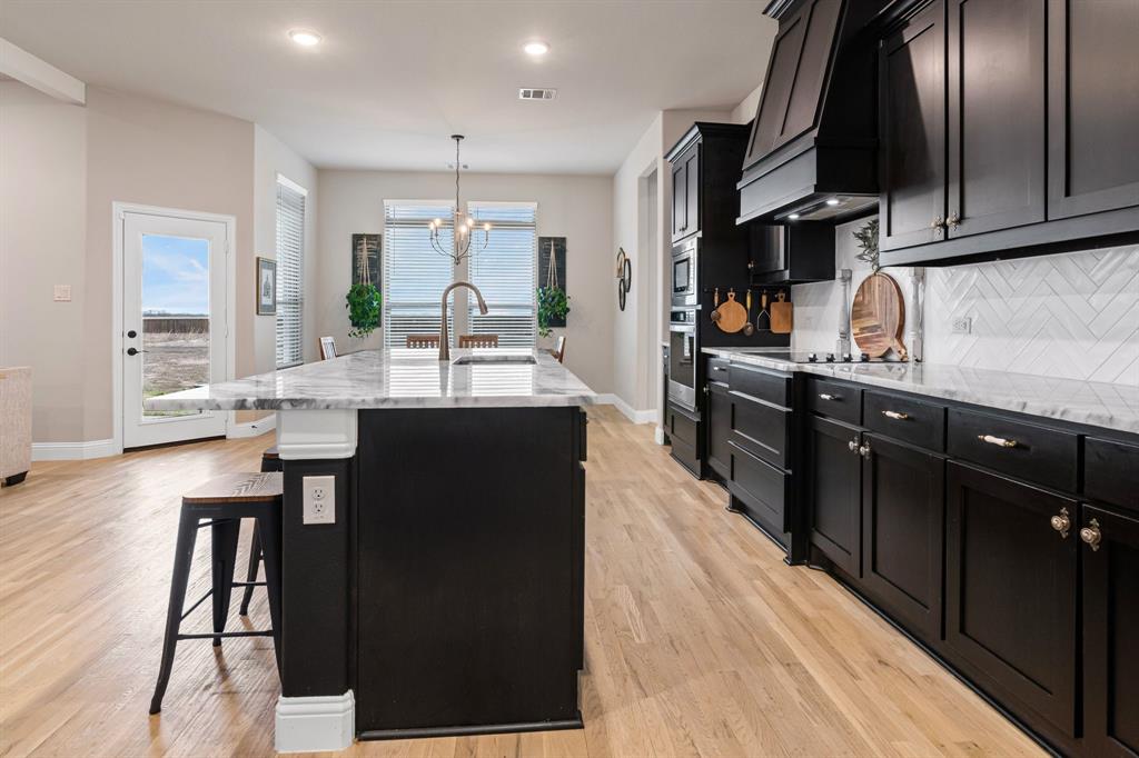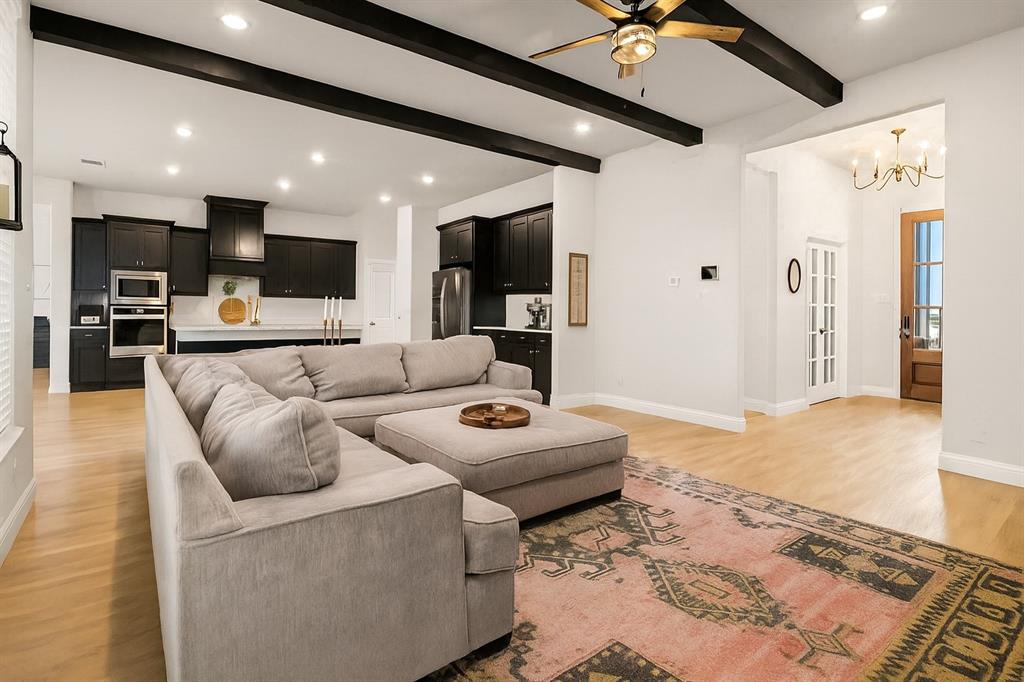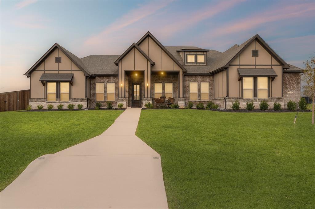 Better than new, this home offers a fully fenced lot, established landscaping, and designer finishes, providing immediate value and move-in-ready upgrades. Set on 1.7 acres outside city limits (no city taxes), this home combines privacy, practicality, and sweeping SUNSET VIEWS. The expansive backyard is fully fenced, lined with crape myrtles, and ready for pets, play, gardening, or your future pool. Inside, the single-story design features 4 bedrooms, a private study, a game room with a power bath—perfect for an in-law suite or second master —and an additional 3 full baths, perfectly blending open-concept living with private retreats. Elegant details include natural wood flooring, decorative beams, and a custom electric fireplace. The gourmet kitchen makes a statement with bold black cabinetry and custom pulls, granite countertops, a walk-in pantry, and a large island flowing seamlessly into the family room for effortless entertaining. The primary suite feels like a spa, with a freestanding tub, dual open shower, and a walk-in closet with natural sunlight. Additional highlights include a large laundry room, custom mudroom with bench, radiant barrier with foam insulation for efficiency, and a 3-car garage. This property offers an established backyard retreat and a peaceful country setting that combine convenience with exceptional value.