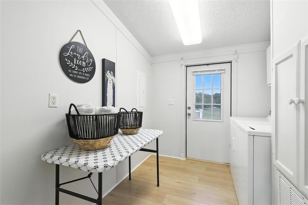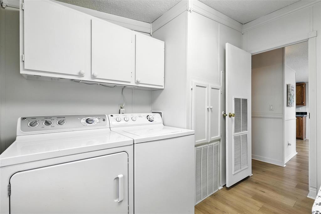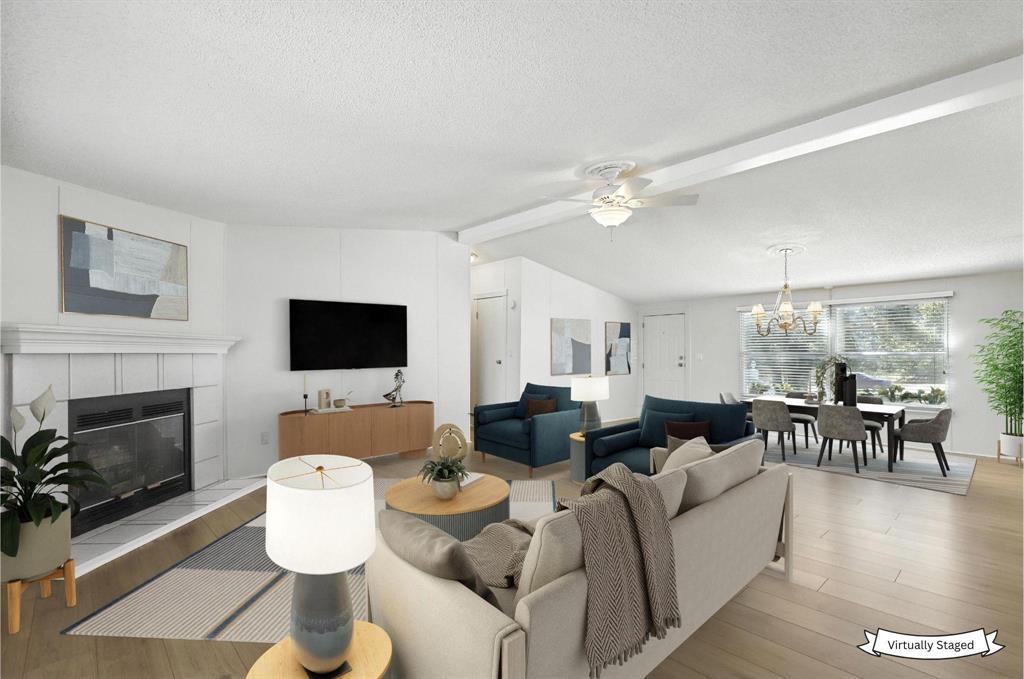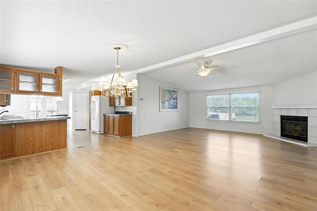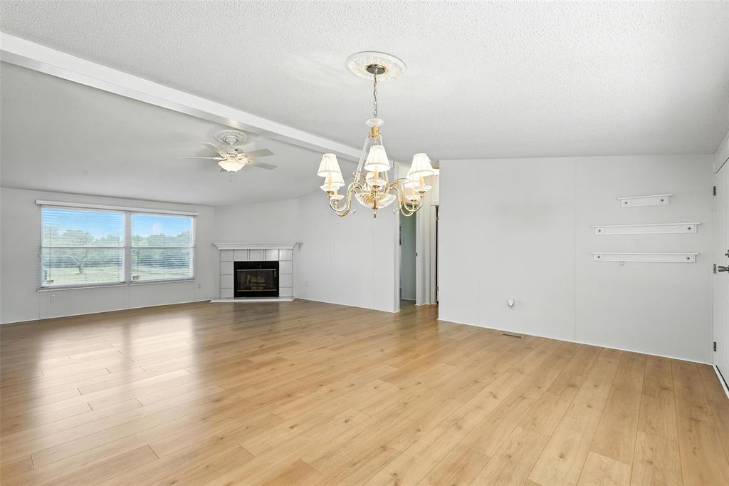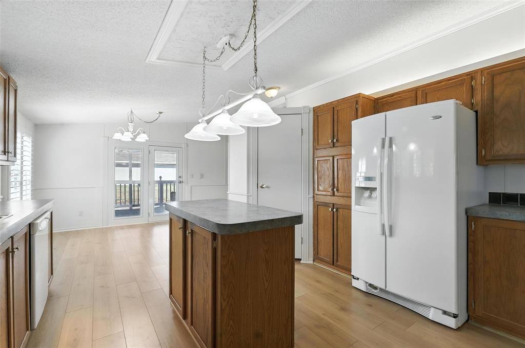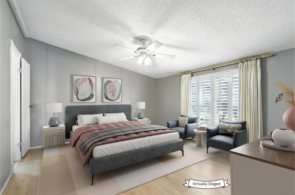Inside, you’ll love the plantation shutters throughout, fresh interior paint, and brand-new luxury wood-look flooring that is both waterproof and sound-dampening. The open layout features a spacious living room with fireplace, dining area, and a large kitchen ideal for family gatherings. The primary suite includes dual sinks, and walk-in closet. The refrigerator and washer dryer all convey allowing for easy move in.