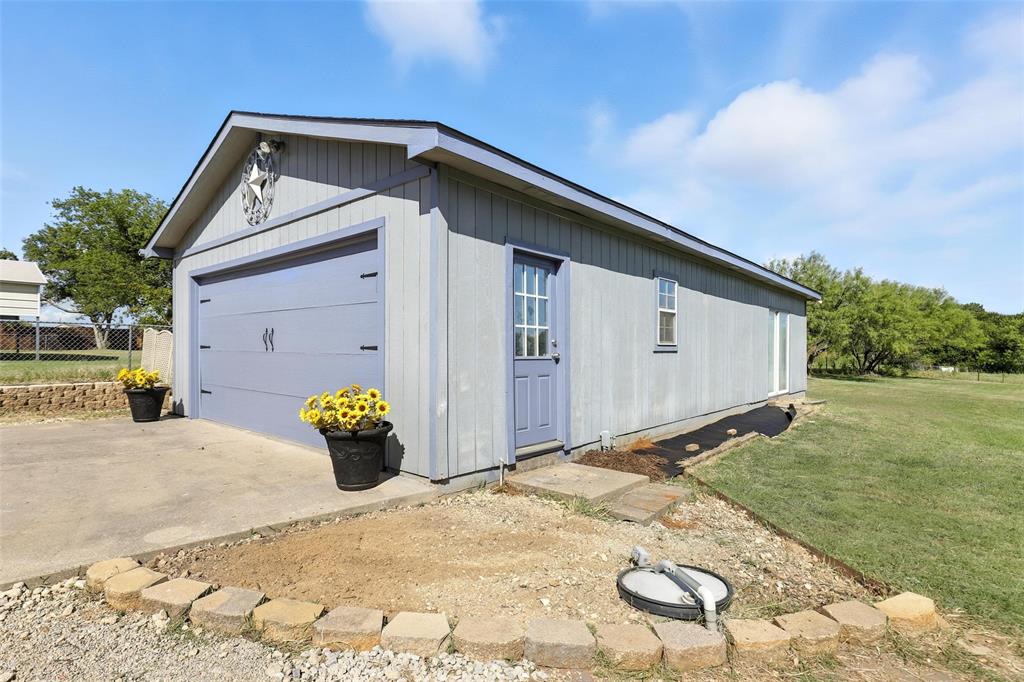 Outside, enjoy a detached oversized 2-car garage with decorative hardware wood door, an additional workshop with power, and multiple storage buildings. The fenced backyard and asphalt driveway add to the convenience and function.