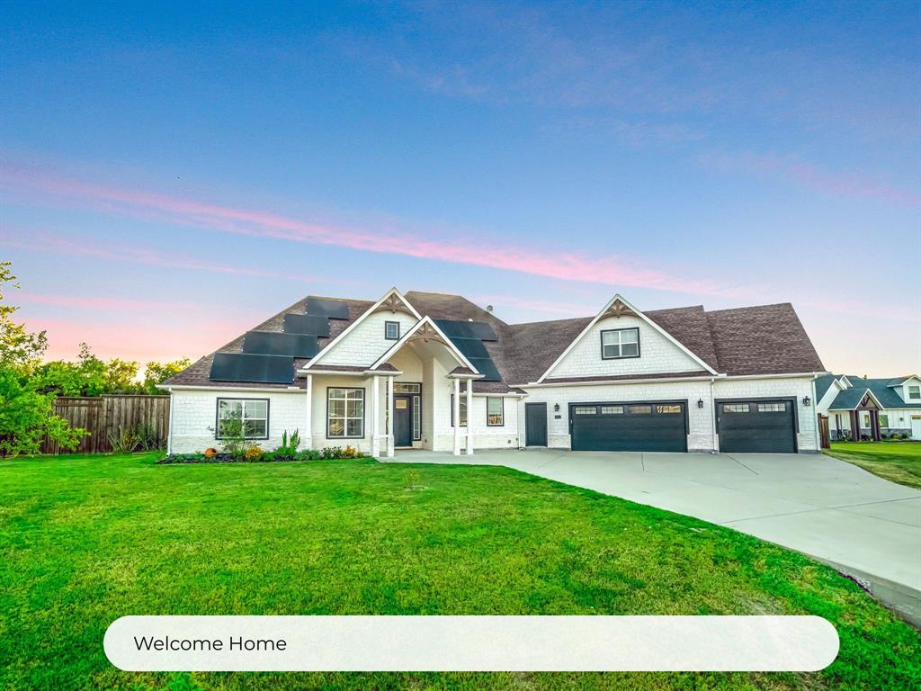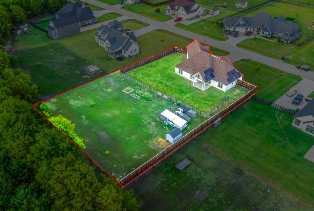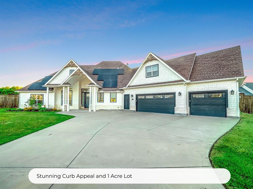 NO HOA! ASK ABOUT 2.375% ASSUMABLE VA LOAN OPTION. Welcome to your dream home in the charming town of Nevada Texas where small town living meets modern convenience. This stunning modern farmhouse design is set on a 1+ acre homesite in Community ISD WITH NO HOA! 3 spacious bedrooms each w its own ensuite bathroom. A total of 3 & a half baths this home is built for comfort & functionality. Step inside & be greeted by an open living, kitchen, & casual dining layout making entertaining easy. The modern kitchen features granite, stainless steel appliances, & a 5 burner gas cooktop. A large island provides prep space & seating while the open concept allows easy flow into the living areas. LVP flooring extends throughout creating a stylish, durable & low maintenance lifestyle. The primary suite is your private retreat with a spa inspired bathroom including dual sink vanity, an oversized walk in closet, a garden soaking tub, & a large walk in shower. 2 additional bedrooms each with ensuite bathrooms & walk in closets ensure comfort & convenience. A large office provides the perfect setting for remote work or study. 2 living areas offer plenty of room for relaxation & game nights. Step outside to country living at its finest. The large covered patio is ideal for morning coffee or evening gatherings overlooking a tree lined lot where sunsets paint the sky. The property includes chicken coops for those who want to enjoy farm fresh eggs & a homestead lifestyle. Views of mature trees & plenty of space make this property perfect for outdoor fun or quiet evenings under the Texas stars. With 100% PAID OFF solar panels you’ll enjoy energy efficiency & savings. Every detail from the open layout to the farmhouse finishes have been designed to combine style & modern comfort. If you’ve been looking for a home that offers acreage, privacy, style, & sustainable living this home delivers. Schedule your tour today!