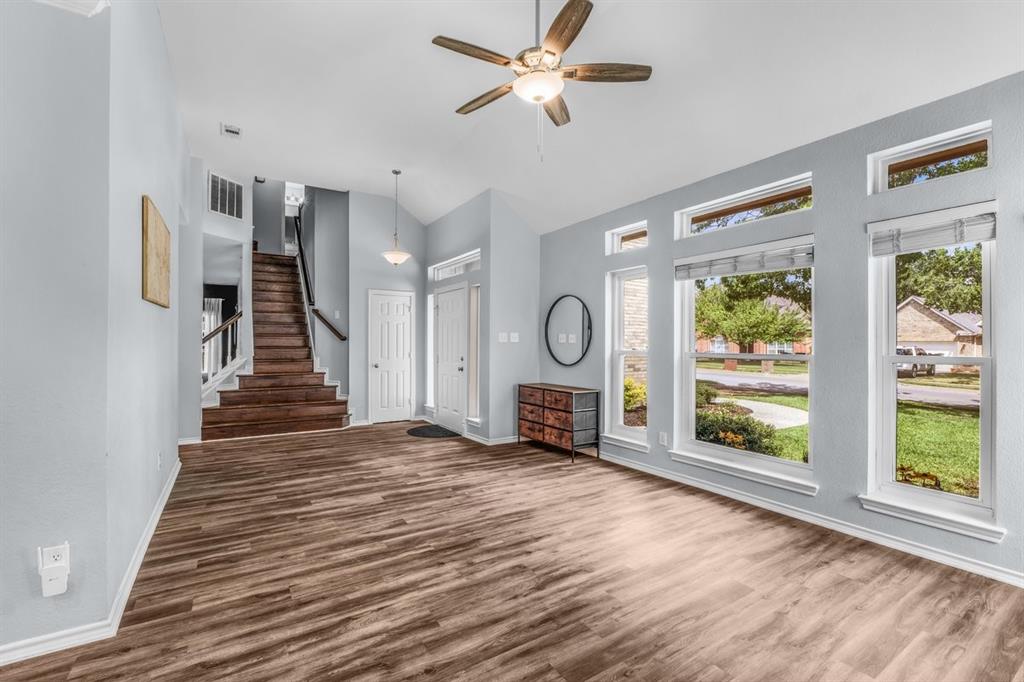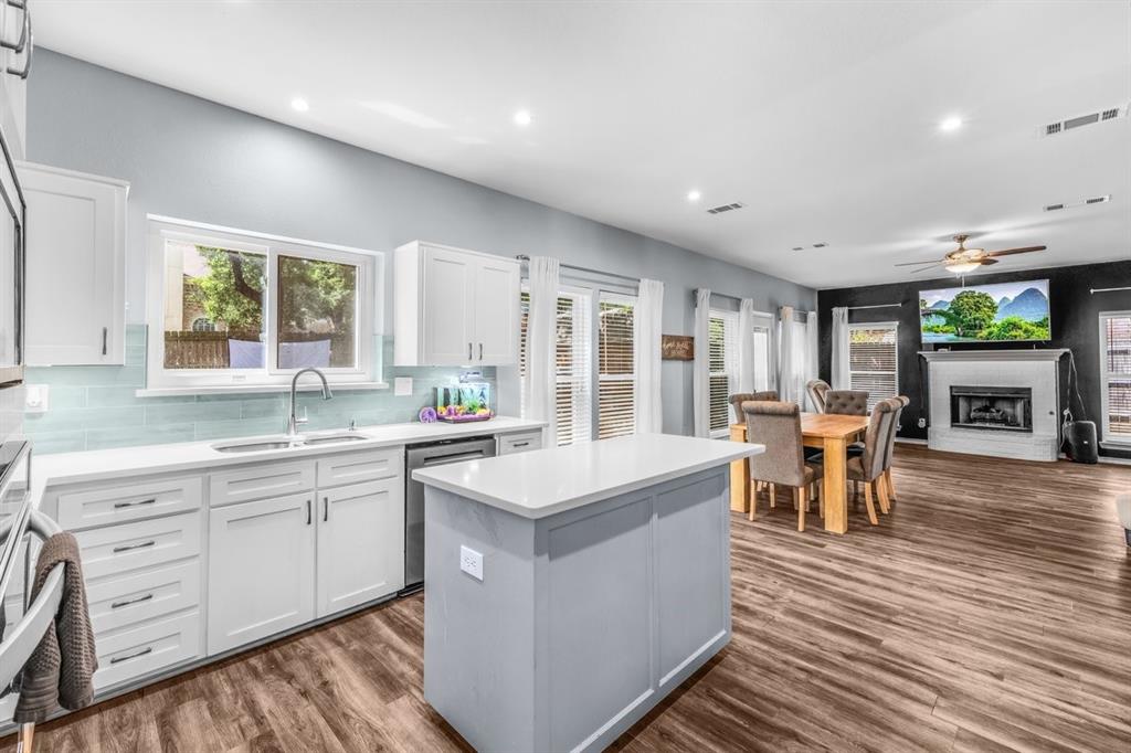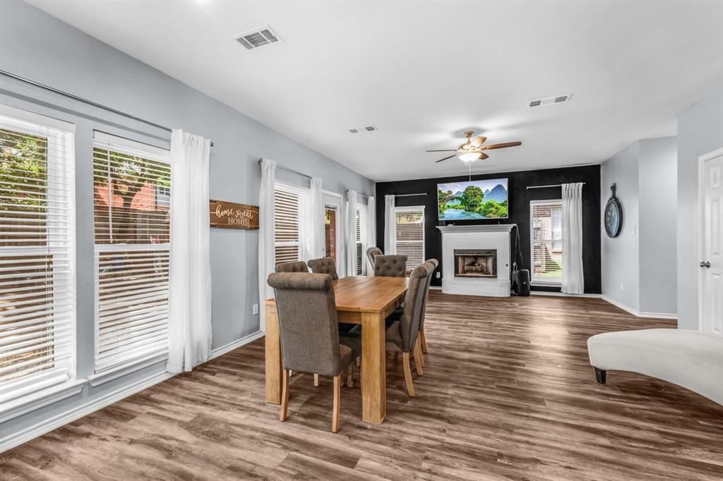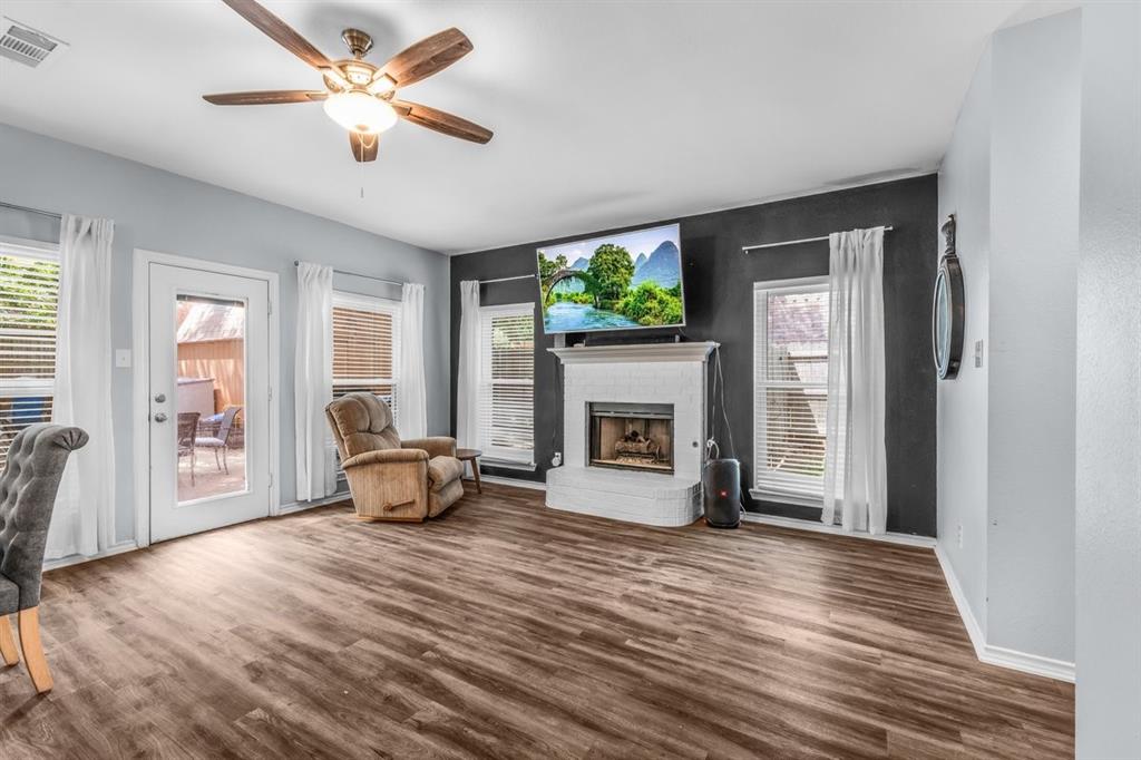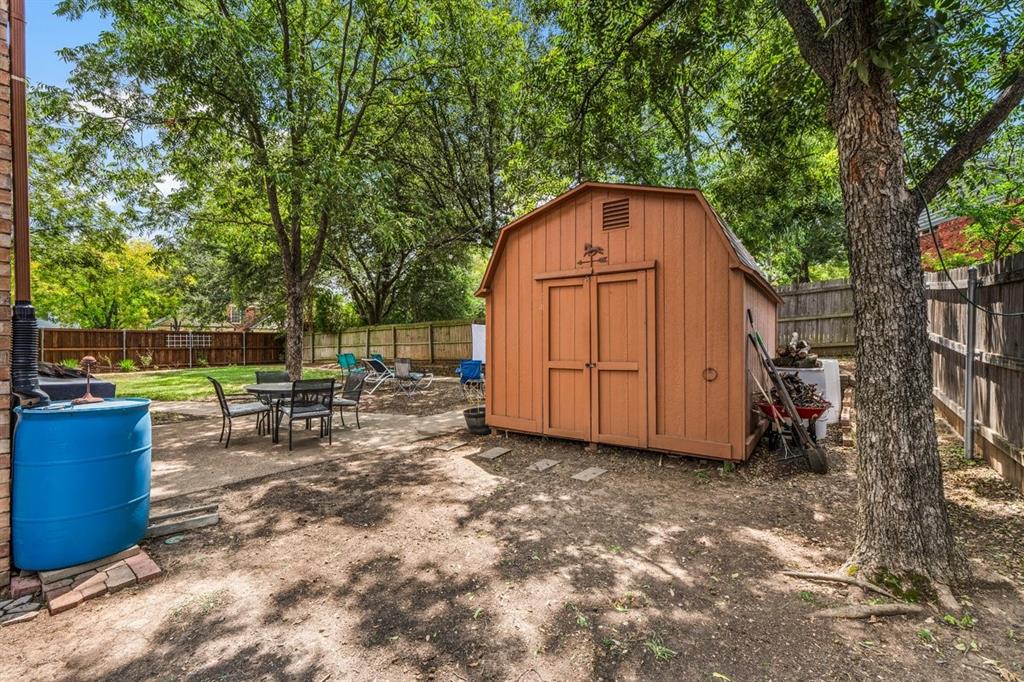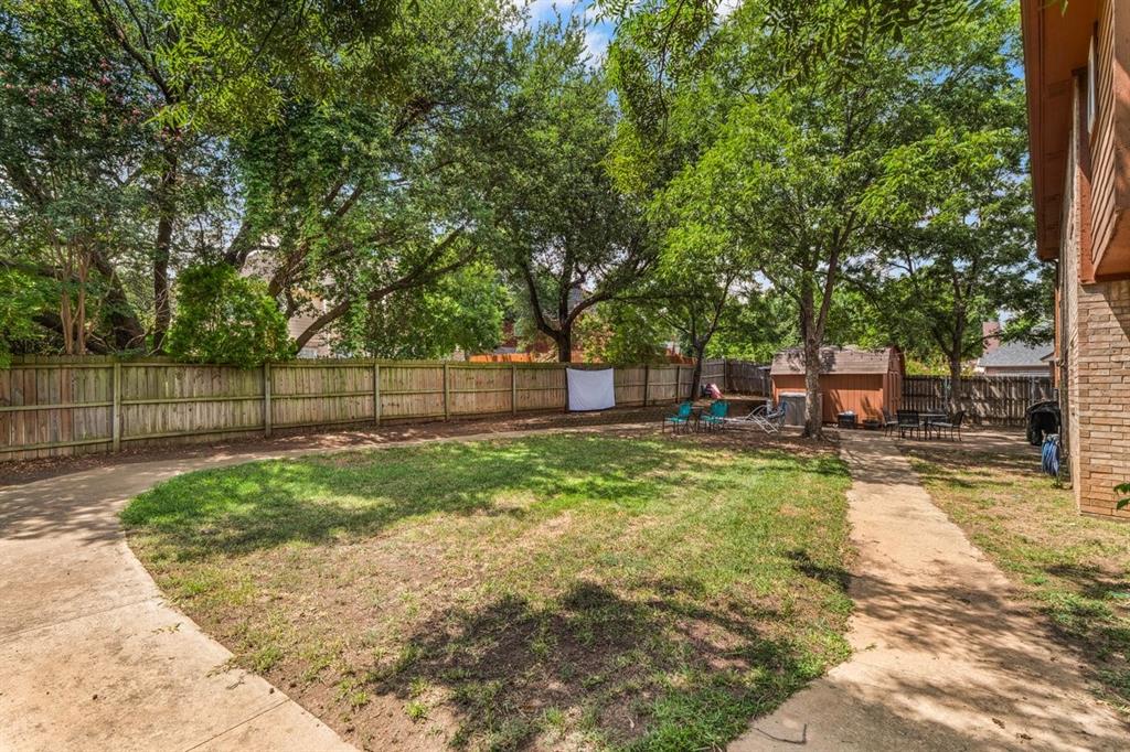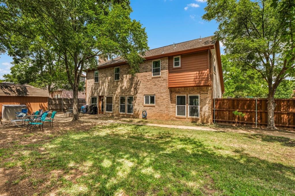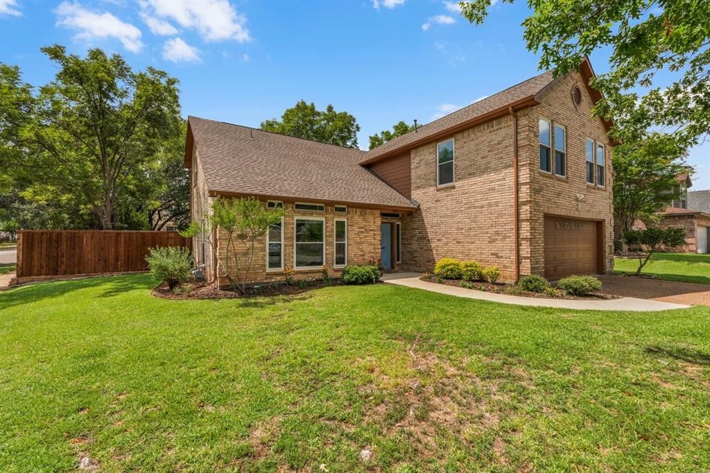 Nestled in the highly sought-after Grapevine–Colleyville ISD and tree lined streets, this charming 4-bedroom, 2.5-bathroom home sits on a spacious corner lot with a generous backyard—perfect for entertaining, play, or even adding a pool. Mature trees provide shade and character, enhancing the curb appeal. Step inside to find warm vinyl plank flooring, a formal living and dining area, and a light-filled family room with a cozy brick gas fireplace and mantle. The updated kitchen boasts quartz countertops, white shaker-style cabinetry, a stylish tile backsplash, pantry and stainless steel appliances, opening seamlessly to the breakfast area and family room. Both bathrooms have been tastefully updated, and the home offers walk-in closets, triple-pane energy-efficient windows, ceiling fans throughout, crown moulding, and two HVAC units (zone controlled with the downstairs unit replaced approx two years ago). Backyard shed with electricity. The roof was replaced approx three years ago, providing peace of mind for years to come. Centrally located, this home offers easy access to schools, local parks, walking trails, a nearby city pool, shopping, dining, and airports.