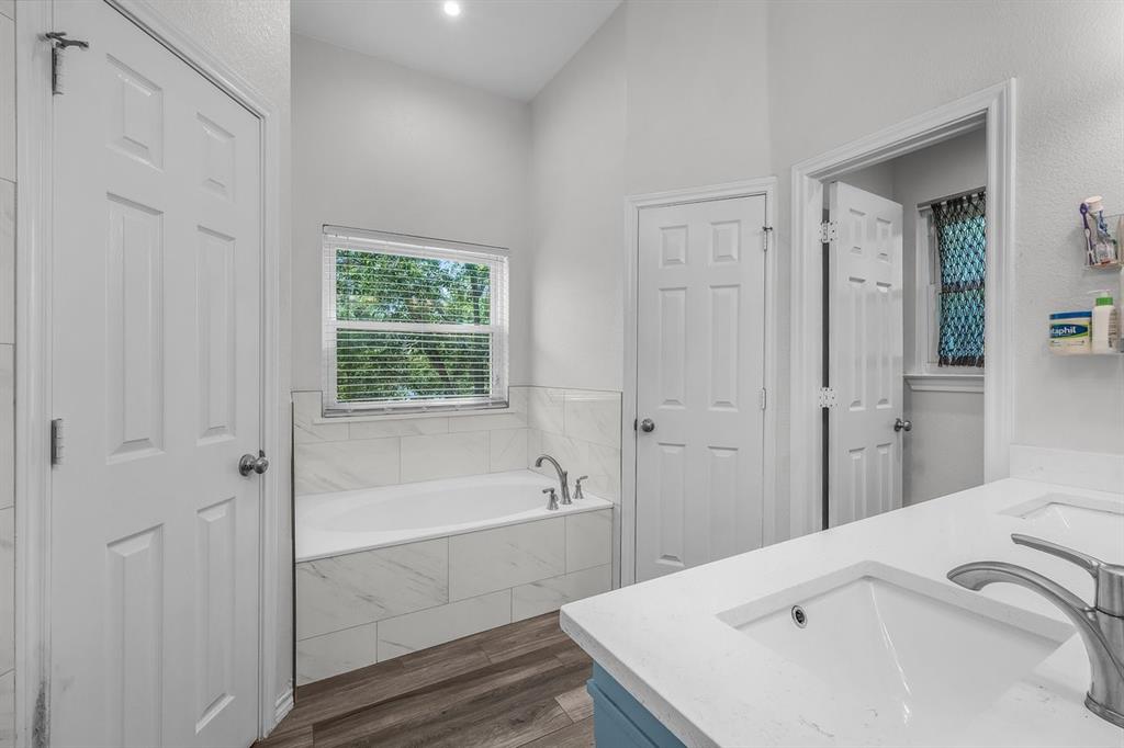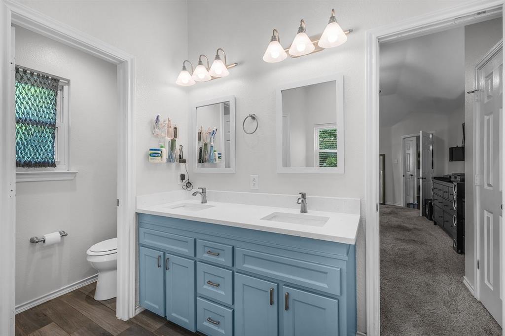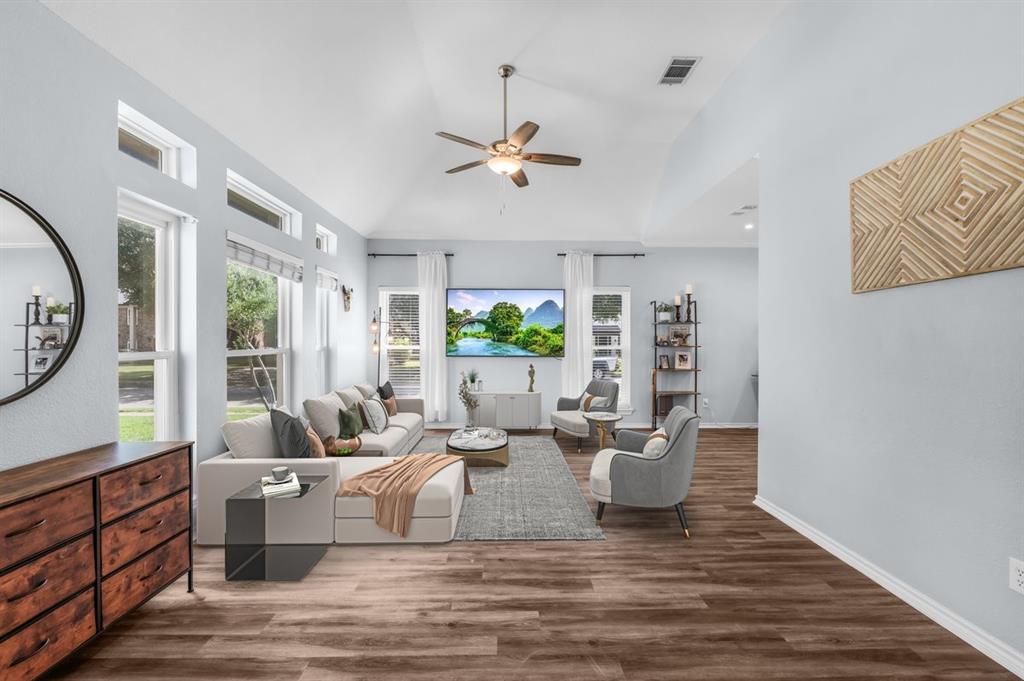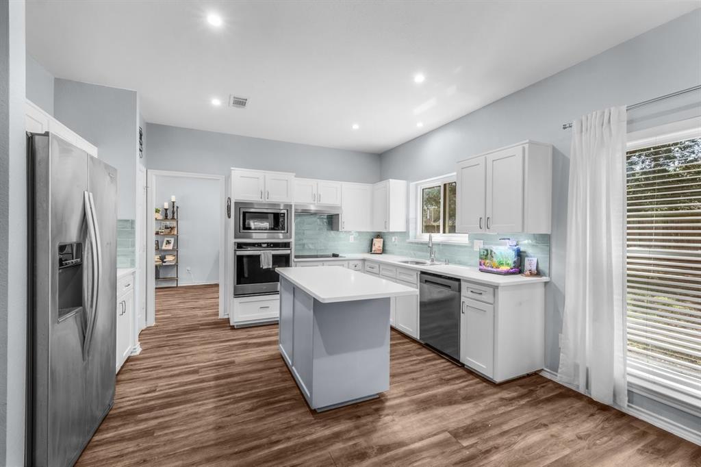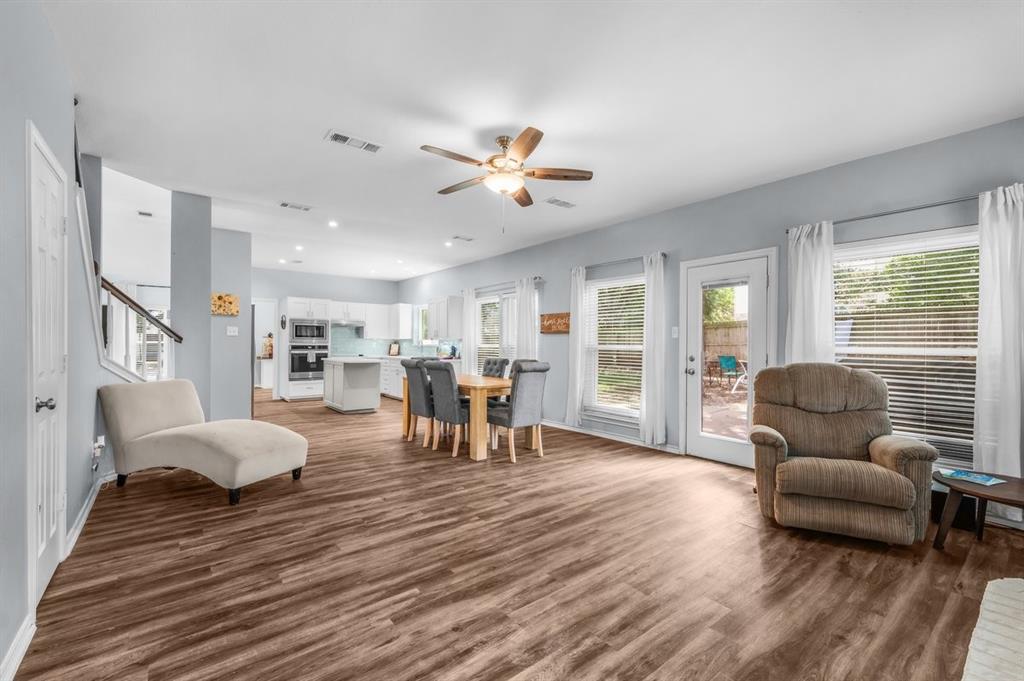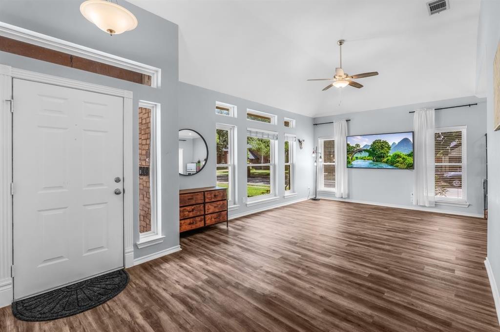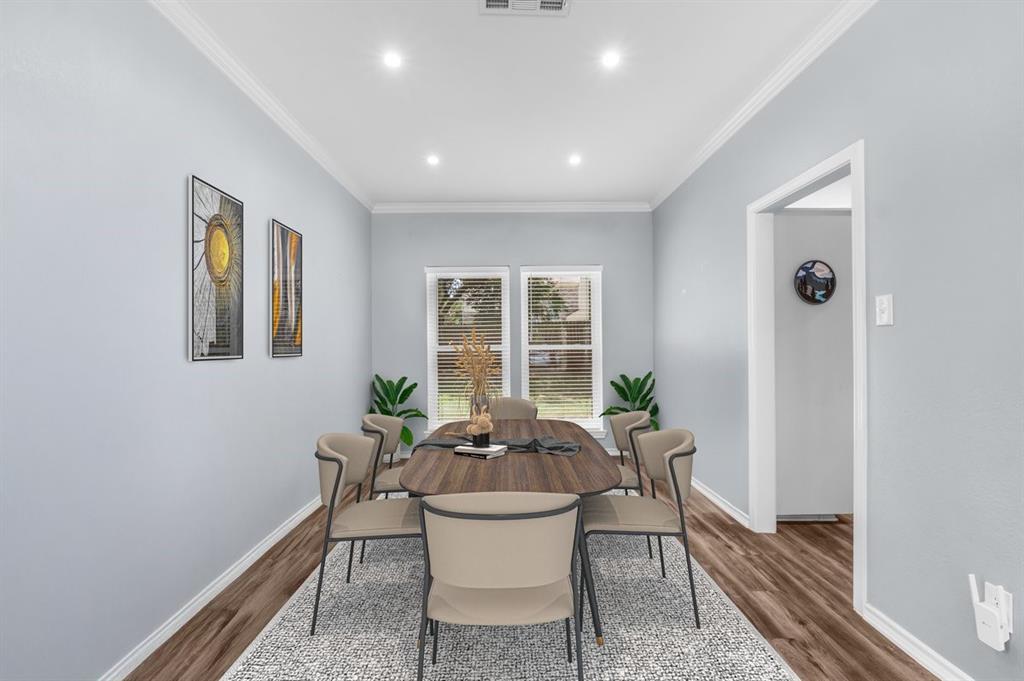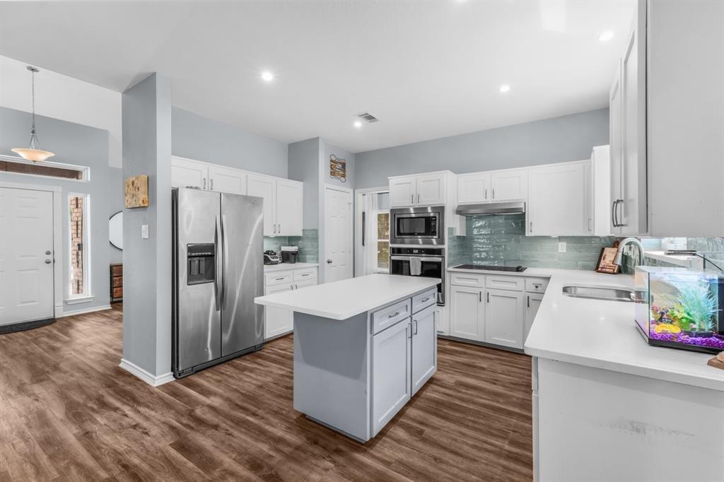 Nestled in the highly sought-after Grapevine–Colleyville ISD and tree lined streets, this charming 4-bedroom, 2.5-bathroom home sits on a spacious corner lot with a generous backyard—perfect for entertaining, play, or even adding a pool. Mature trees provide shade and character, enhancing the curb appeal. Step inside to find warm vinyl plank flooring, a formal living and dining area, and a light-filled family room with a cozy brick gas fireplace and mantle. The updated kitchen boasts quartz countertops, white shaker-style cabinetry, a stylish tile backsplash, pantry and stainless steel appliances, opening seamlessly to the breakfast area and family room. Both bathrooms have been tastefully updated, and the home offers walk-in closets, triple-pane energy-efficient windows, ceiling fans throughout, crown moulding, and two HVAC units (zone controlled with the downstairs unit replaced approx two years ago). Backyard shed with electricity. The roof was replaced approx three years ago, providing peace of mind for years to come. Centrally located, this home offers easy access to schools, local parks, walking trails, a nearby city pool, shopping, dining, and airports.