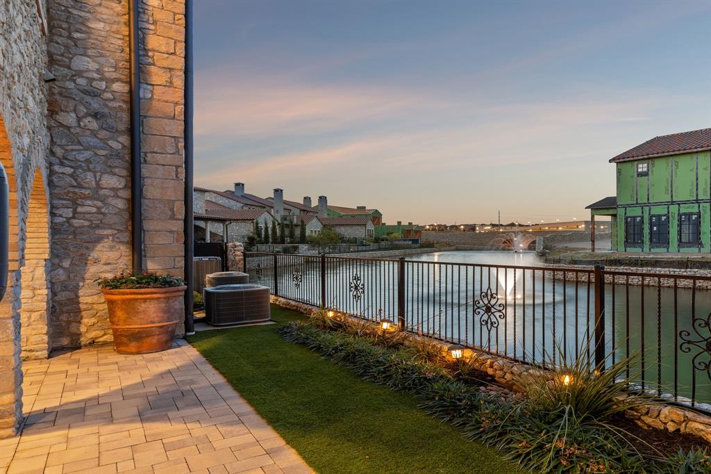 Welcome to 22 Comillas Dr, a meticulously cared-for waterfront townhouse with beautiful designer upgrades! Perfectly positioned along the canal in the heart of Westlake Entrada, a lock-and-leave community tailored for those who value refined living and everyday ease. Enjoy serene views of the canal, fountains, and stone bridge from multiple rooms of this home, along with curated finishes such as designer wallpaper, dimmable lighting, in ceiling speakers, and both under and over cabinet lighting. The light-filled kitchen offers canal views through the multiple windows and is well-appointed with Sub-Zero and Wolf appliances and custom cabinetry. A timeless cast stone fireplace, motorized custom made curtains, and a Juliet balcony overlooking the canal enhance the welcoming family room. The primary suite is a true sanctuary, featuring its own Juliet balcony with canal views, a built-in coffee bar, and a spa-like bath with dual vanities, a soaking tub, walk-in shower, expansive walk-in closet, and a private elevator for added ease and privacy. The floor plan offers two additional en-suite bedrooms, a spacious laundry room, and a private front-facing office—perfect for quiet focus and complete with motorized shades. Downstairs, the stylish game room invites relaxation and connection, featuring a custom wet bar with Sub-Zero beverage cooler, Roman shades, a half bath, and French doors that open to a tranquil patio. With both covered and open-air spaces, a calming water feature, and peaceful canal views, the outdoor retreat is ideal for effortless entertaining. Additional highlights include: Focal in-ceiling speakers, built-in dressers, one upgraded larger AC unit installed in 2023, and a fire-protected safe in the office closet. Patio furniture and TV in family room convey with the home. Choose Carroll ISD or Westlake Academy (an IB World School). Conveniently located just minutes from DFW Airport, LifeTime Fitness, and Southlake Town Square.