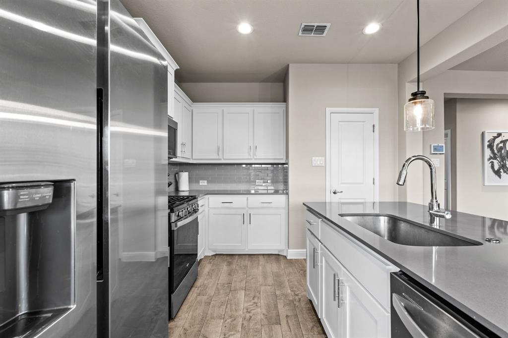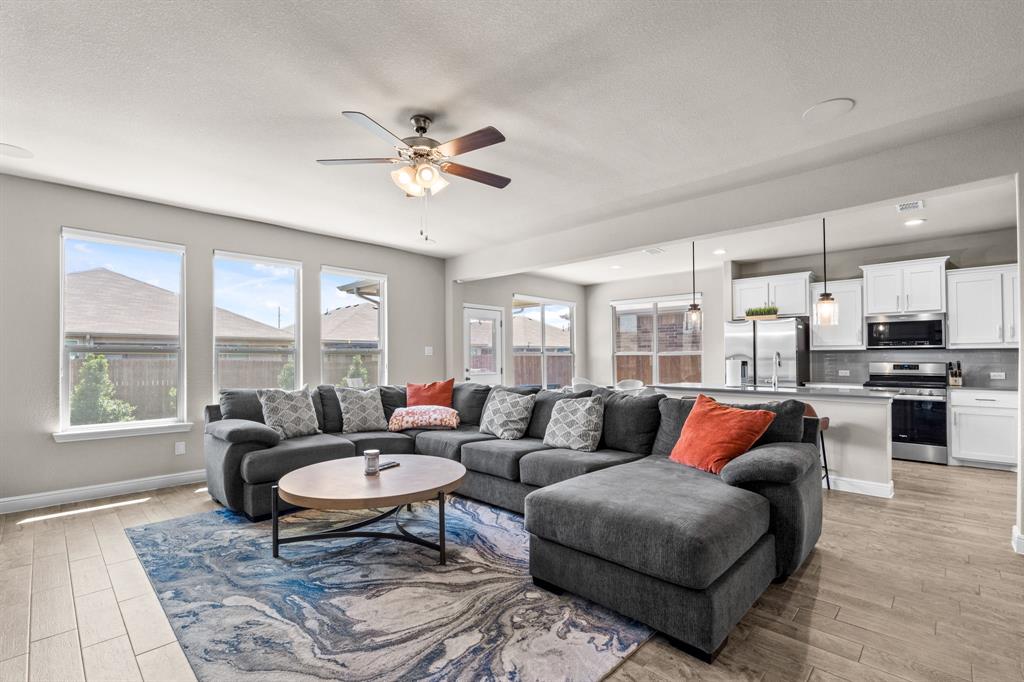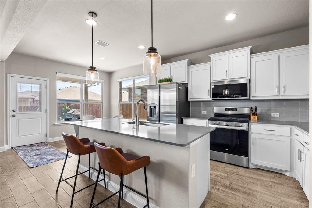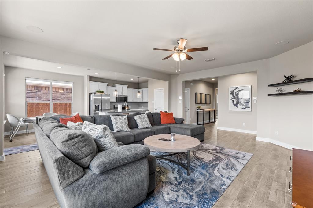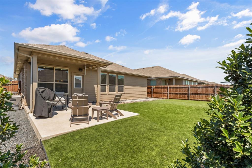 Welcome to this beautifully maintained single-story home located in the highly desirable Northwest ISD. This 3-bedroom, 2-bath property offers an open-concept design that blends comfort, functionality, and style. Step inside to find a bright and inviting floor plan featuring a spacious living area that flows seamlessly into the dining space and kitchen—perfect for entertaining or everyday living. The kitchen is a true highlight, complete with a gas cooktop, abundant cabinetry, and modern finishes. The private primary suite offers a peaceful retreat with its own en-suite bath and large closet, while two additional bedrooms provide flexibility for family, guests, or a home office. Outdoors, you’ll discover a backyard that’s both low-maintenance and stunning, finished with artificial turf, stone pavers, decorative rock accents, a tree-lined fence, and an extended patio—a serene space for relaxing or gathering with friends. In addition to your private retreat, the community offers resort-style amenities including neighborhood parks, a clubhouse, and a pool with a lazy river—perfect for enjoying Texas summers. Ideally situated, this home is just minutes from shopping, dining, and entertainment options, with convenient access to major highways for an easy commute to both Dallas and Fort Worth. If you’re looking for a move-in ready property with thoughtful upgrades, community amenities, and an unbeatable location, this is the perfect choice!