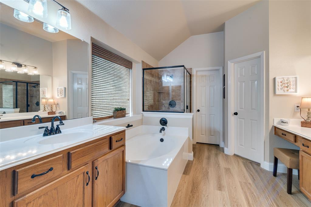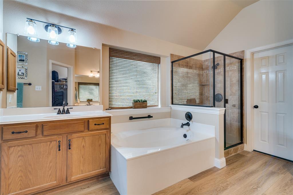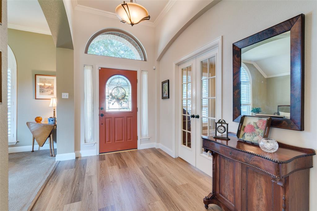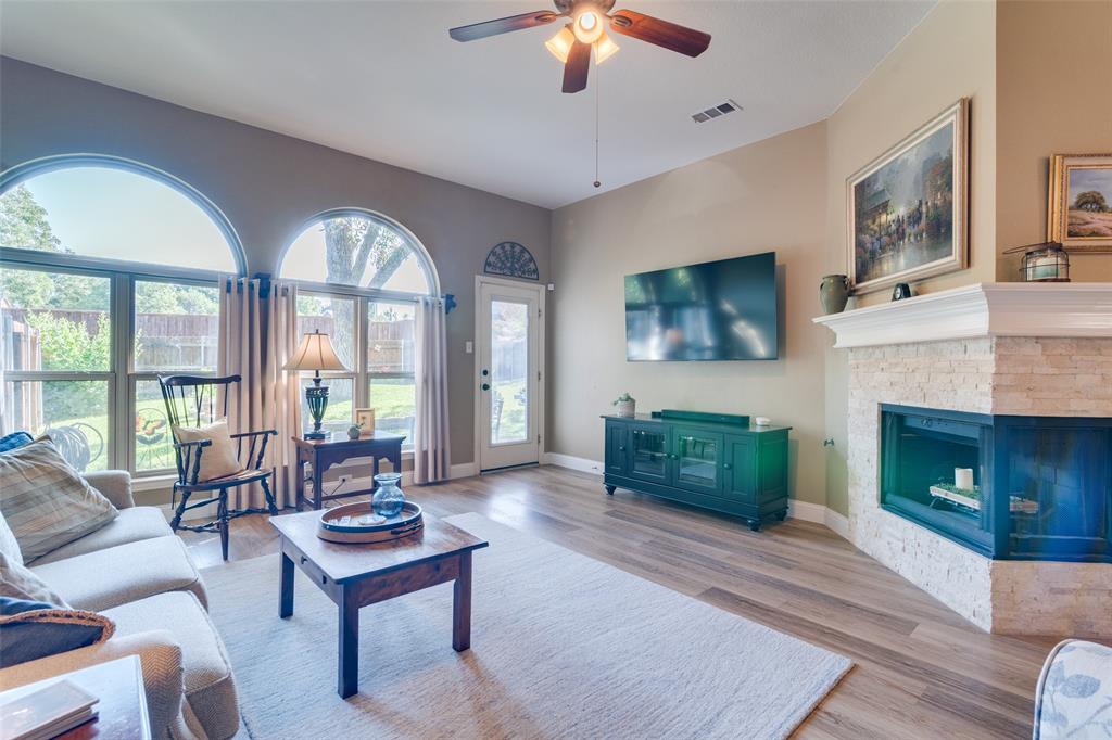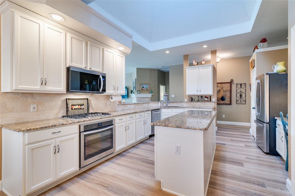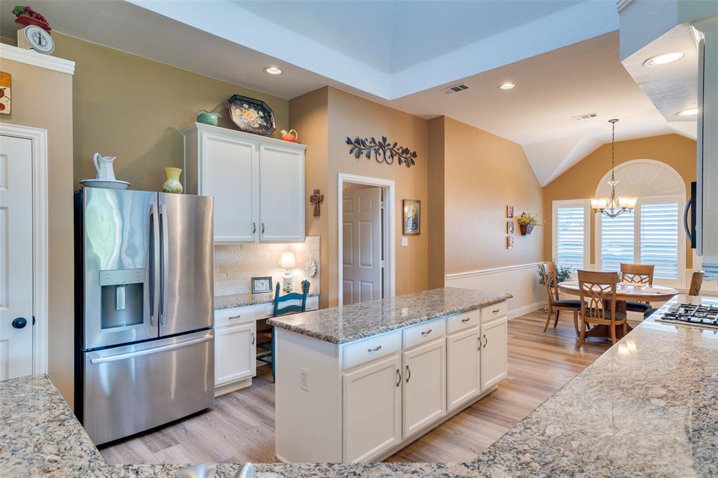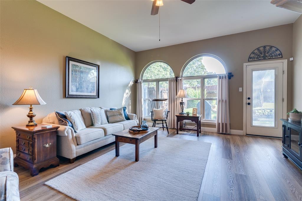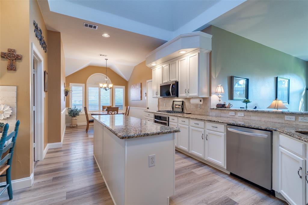 Welcome to this beautifully updated, meticulously maintained 3 bed, 2 bath home with 2 living areas, 2 dining areas and a separate office space, located in the peaceful neighborhood of Westwood Shores. From the moment you arrive, you'll be impressed by the home's inviting curb appeal and beautiful landscaping that adds to the beauty of the exterior. Step inside to discover high ceilings, creating an open and airy feel that enhances every room. The home features PLANTATION SHUTTERS throughout. The spacious living areas are ideal for entertaining, and the dedicated office provides the flexibility to work from home. In 2023, LUXURY VINYL PLANK was installed in the den, study, and kitchen, offering durability and modern appeal with low maintenance. The UPDATED KITCHEN that opens to the den and has a breakfast nook is a standout feature of the home. All three bedrooms are comfortably sized, with ample closet space. This home has been thoughtfully updated over the last few years to ensure both aesthetic beauty and long-term peace of mind. NEW ENERGY EFFICIENT WINDOWS WERE INSTALLED IN 2023, for improved insulation, comfort, and energy savings. 30 YEAR HAIL RESISTANT ROOF in 2022 is durable and built to withstand the elements. Beautifully landscaped yard – lush, mature plantings that add to the overall appeal. Enjoy the outdoor space as much as the interior! The beautifully landscaped yard provides a tranquil retreat for relaxing, gardening, or entertaining.