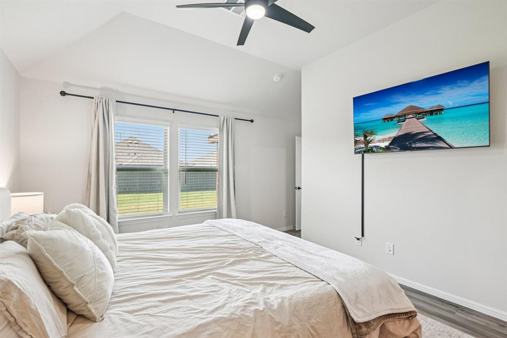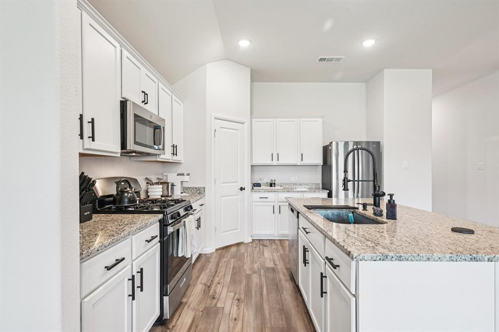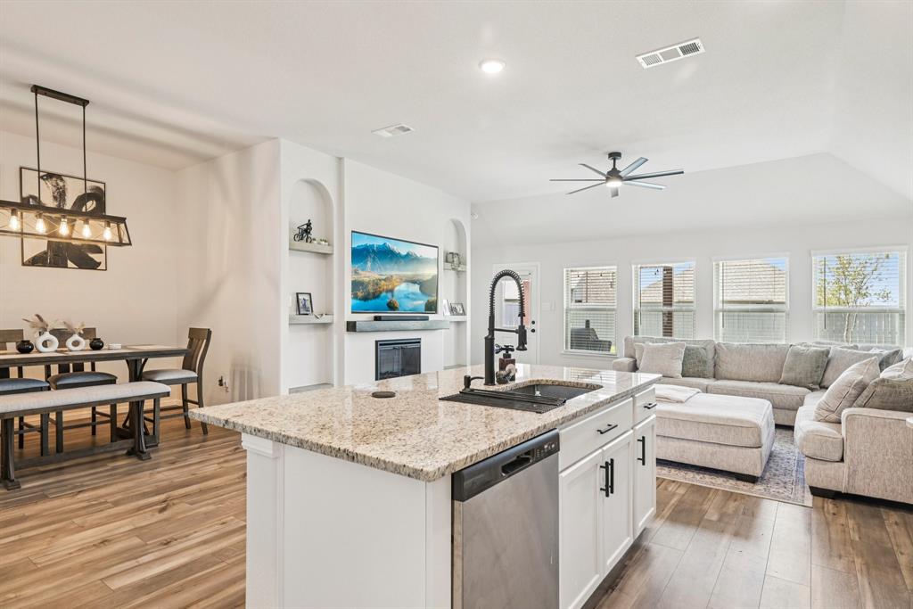 Discover this gorgeous 2024-built home in the sought-after Goodland at Prairie Ridge community. Featuring three bedrooms, two bathrooms, and a bright open-concept layout, this home is designed for both style and function. Custom touches include a designer entertainment wall with fireplace, upgraded iron front door, enhanced laundry room with extra shelving, and modern black ceiling fans. The sleek kitchen showcases a spacious island, white cabinetry, and bold black fixtures, capturing natural light and offering beautiful backyard views—with the backyard including a gorgeous gable covered porch, perfect for everyday living and entertaining. This home also features a spacious flex room that can easily serve as an office, playroom, or guest space. Goodland, formerly known as Prairie Ridge, is a vibrant master-planned community offering lakes, trails, parks, pools, and social spaces like The Hangout and The Retreat. With a future Downtown Goodland bringing shopping and dining even closer, top-rated Midlothian ISD schools, and an easy commute to Dallas, Fort Worth, and DFW Airport, this home offers the perfect blend of modern living, convenience, and community. Come tour this home today! Refrigerator will convey with property!
