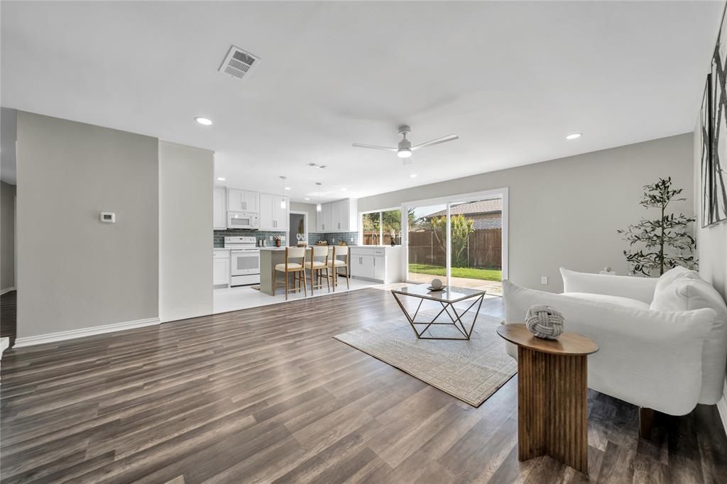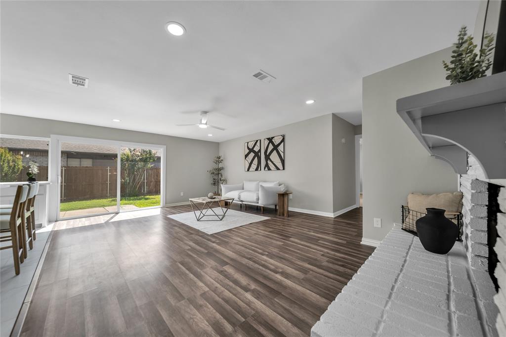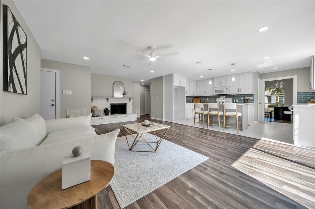 Step inside to find upgraded LVP flooring, brand-new windows, and a spacious double living room featuring a cozy fireplace and sliding glass doors that flood the space with natural light. The chef’s kitchen boasts a custom island, sleek finishes, and plenty of room for entertaining, along with fresh paint inside and out.