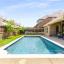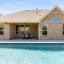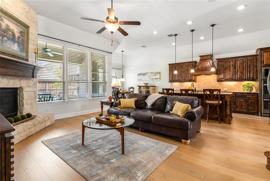 This beautifully maintained home is nestled within a secure gated community minutes from shopping, dining, major thoroughfares and top rated schools. Designed with sophisticated finishes and modern amenities, this home combines elegance with convenience. Upon entry, you are greeted by an abundance of natural light and newly installed, light-toned wood floors. The open concept floor plan allows views to the pool from the kitchen and living areas. Recently painted in neutral colors throughout and new carpet installed in 2024. You can spend time outdoors enjoying your sparkling pebble tech pool (installed in 2021), dining al fresco on your covered patio or taking a meandering walk around the neighborhood lake. The kitchen features a large island, double oven, walk in pantry, gorgeous custom cabinetry and stainless appliances. Designed to provide both relaxation and luxury, the primary suite has views to the serene pool and the primary bath offers a soaking tub and elegant finishes.. This functional 1.5 story floor Click on videos to see Zillow 3D walk through and a video.