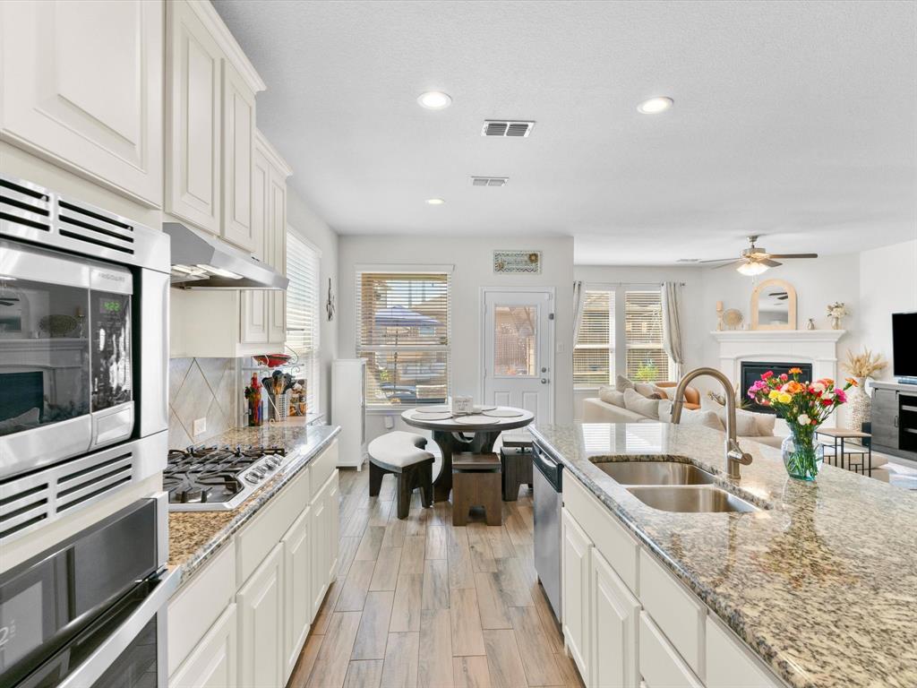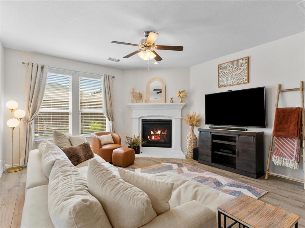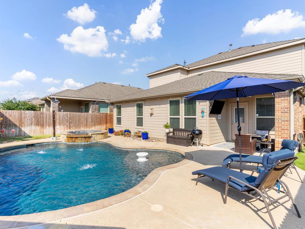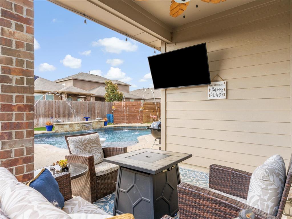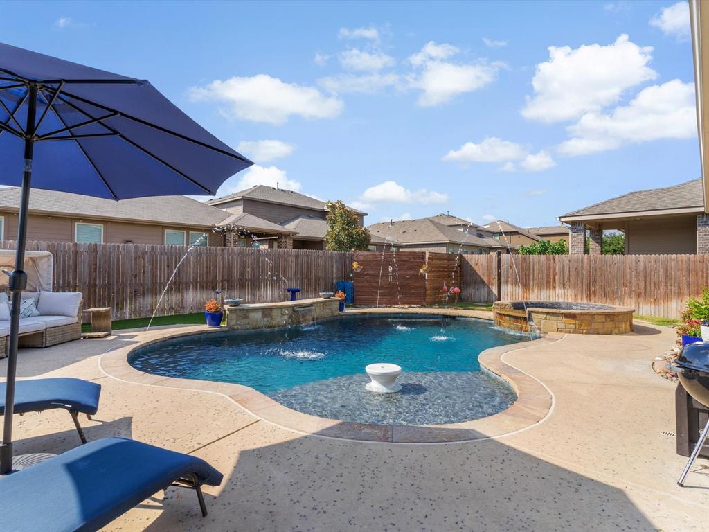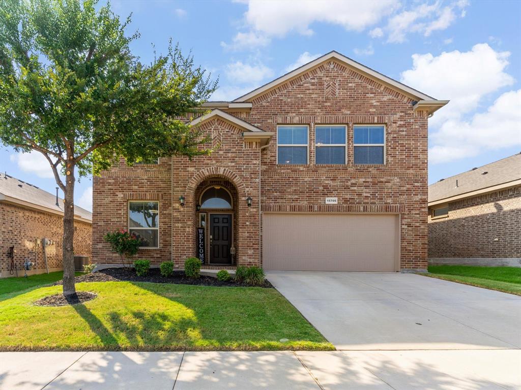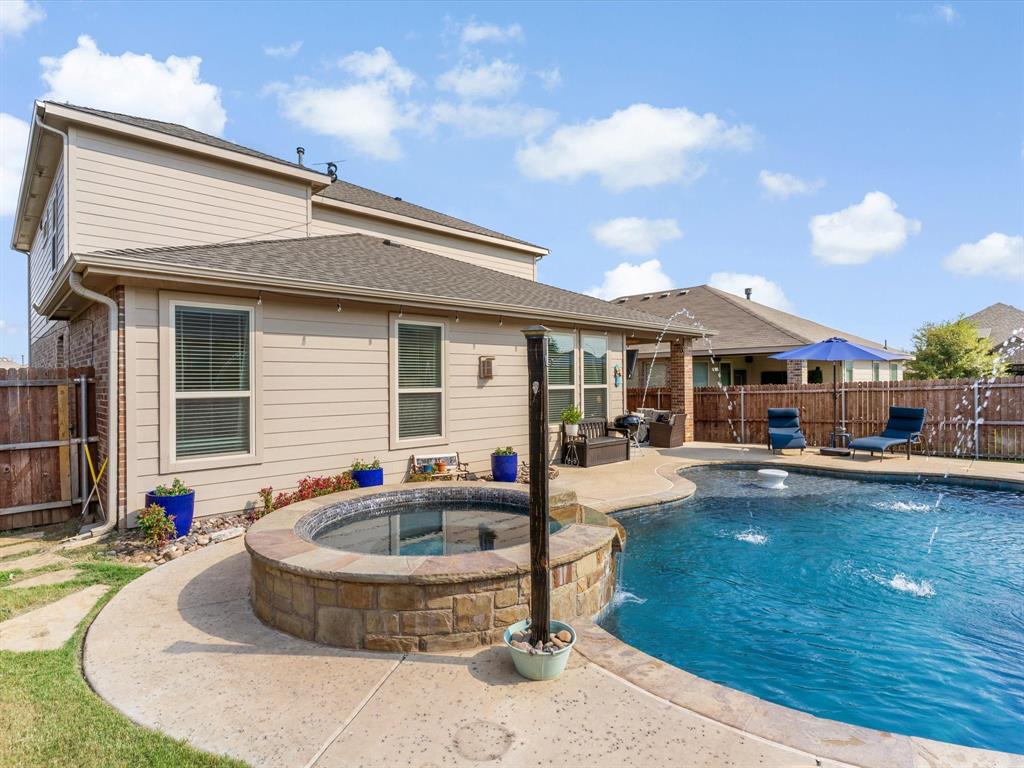 This meticulously cared for original-owner home features a POOL and NEWER ROOF installed in March 2025. The wood-look tile floors flow throughout the first floor, leading to a front office, a half bath for guests and a bright kitchen with white painted cabinets, granite countertops, stainless steel appliances, an eat-at island, and a breakfast area. With a kitchen overlooking the central living space and complete with a gas fireplace, you’re likely to be impressed. The primary suite is conveniently located on the first floor and offers dual sinks, a soaking tub, separate shower, and a spacious walk-in closet. Upstairs, enjoy a Texas-sized game room, three additional bedrooms, and two full bathrooms. Step outside to a cozy covered back patio overlooking the inground chlorine pool and spa combo with water features, complete with extended decking—perfect for entertaining or relaxing. With 4 bedrooms, 3.5 bathrooms, easy highway access, and just a short drive to Champion Circle Golf Club, Tanger Outlets, Northwest High School, and Texas Motor Speedway, this home offers a blend of style, comfort, all in an ideal location. Additional features include smart lighting and thermostats!