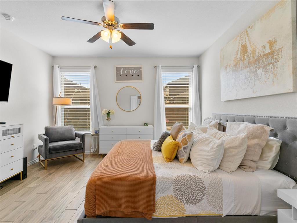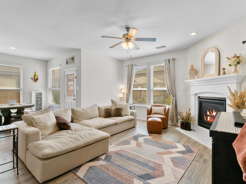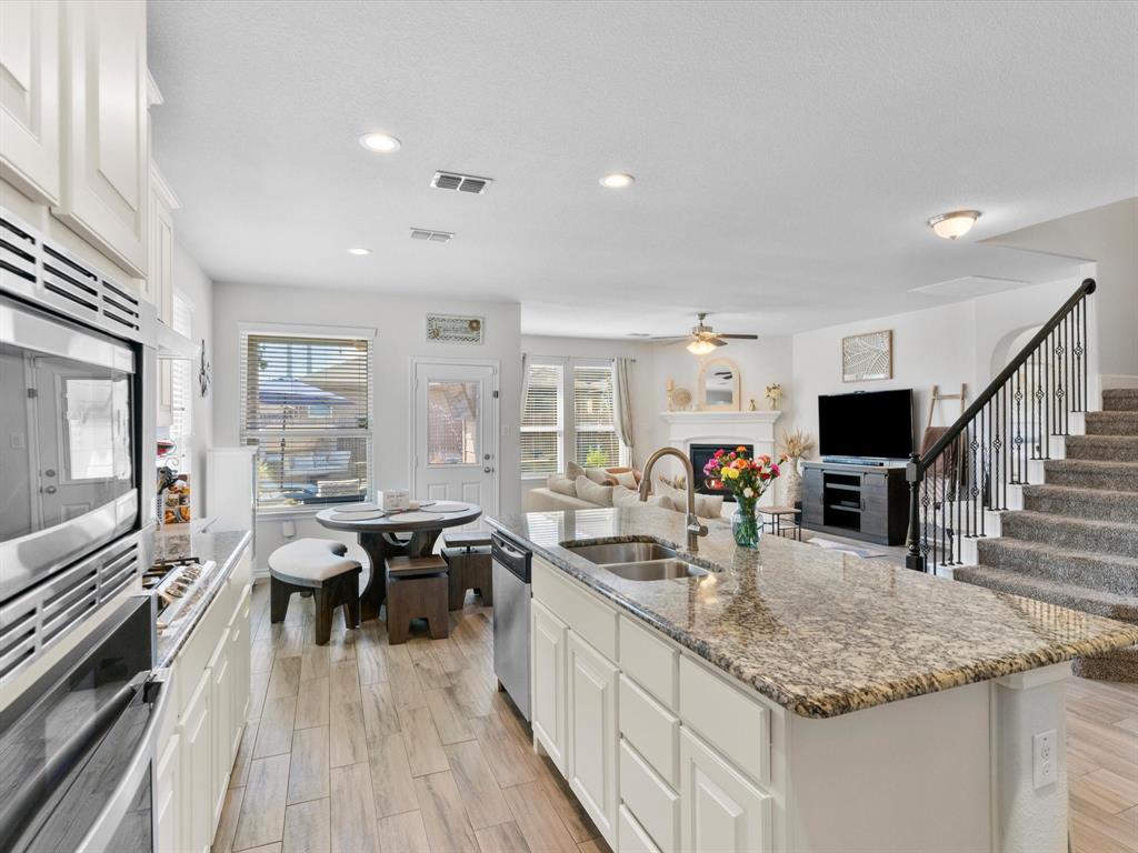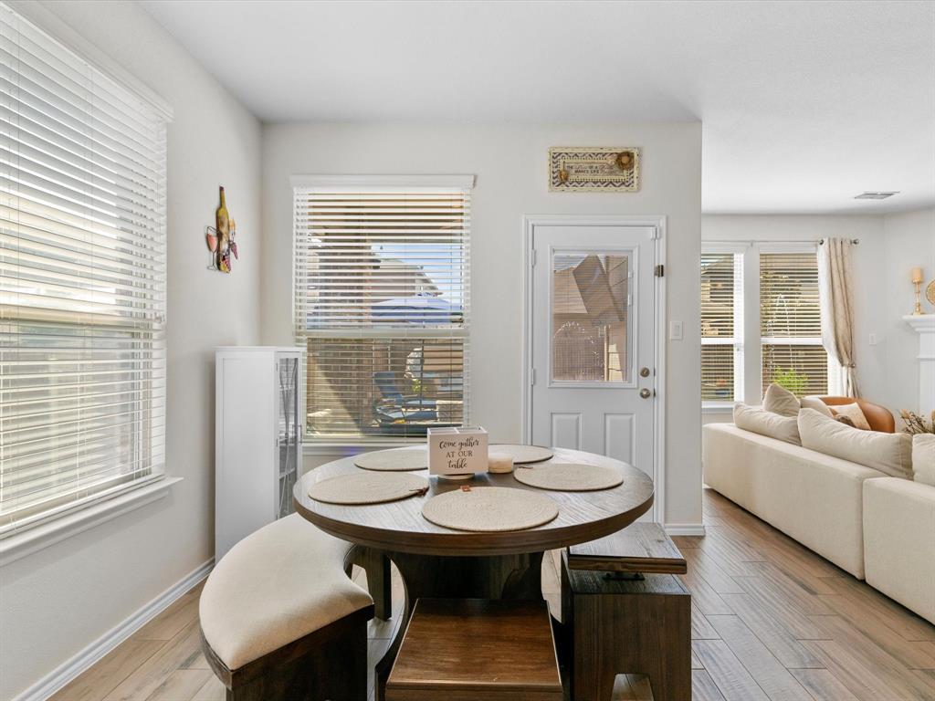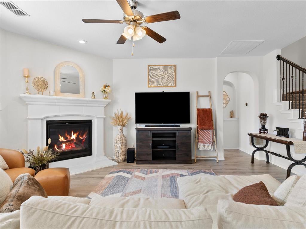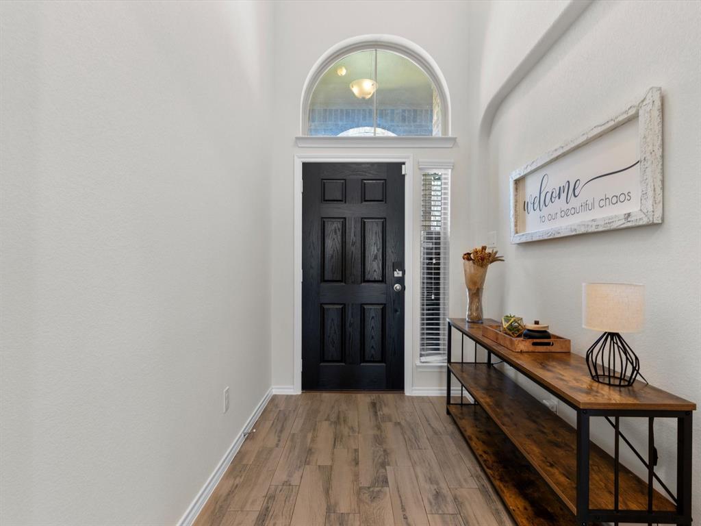 This meticulously cared for original-owner home features a POOL and NEWER ROOF installed in March 2025. The wood-look tile floors flow throughout the first floor, leading to a front office, a half bath for guests and a bright kitchen with white painted cabinets, granite countertops, stainless steel appliances, an eat-at island, and a breakfast area. With a kitchen overlooking the central living space and complete with a gas fireplace, you’re likely to be impressed. The primary suite is conveniently located on the first floor and offers dual sinks, a soaking tub, separate shower, and a spacious walk-in closet. Upstairs, enjoy a Texas-sized game room, three additional bedrooms, and two full bathrooms. Step outside to a cozy covered back patio overlooking the inground chlorine pool and spa combo with water features, complete with extended decking—perfect for entertaining or relaxing. With 4 bedrooms, 3.5 bathrooms, easy highway access, and just a short drive to Champion Circle Golf Club, Tanger Outlets, Northwest High School, and Texas Motor Speedway, this home offers a blend of style, comfort, all in an ideal location. Additional features include smart lighting and thermostats!