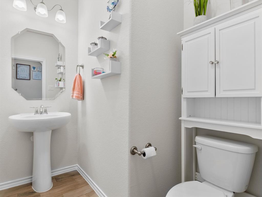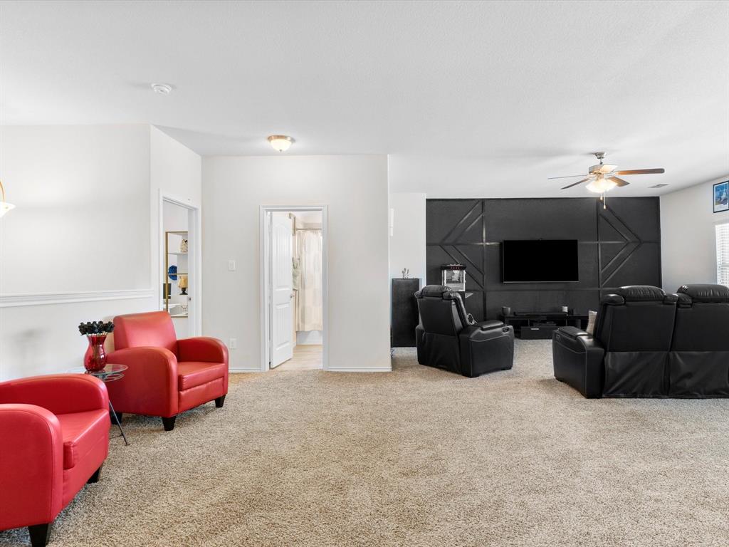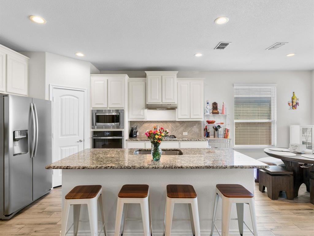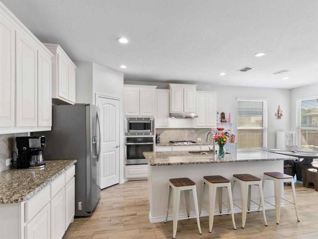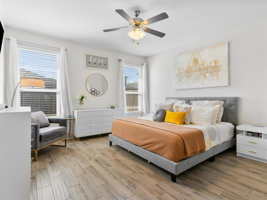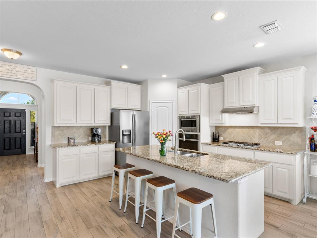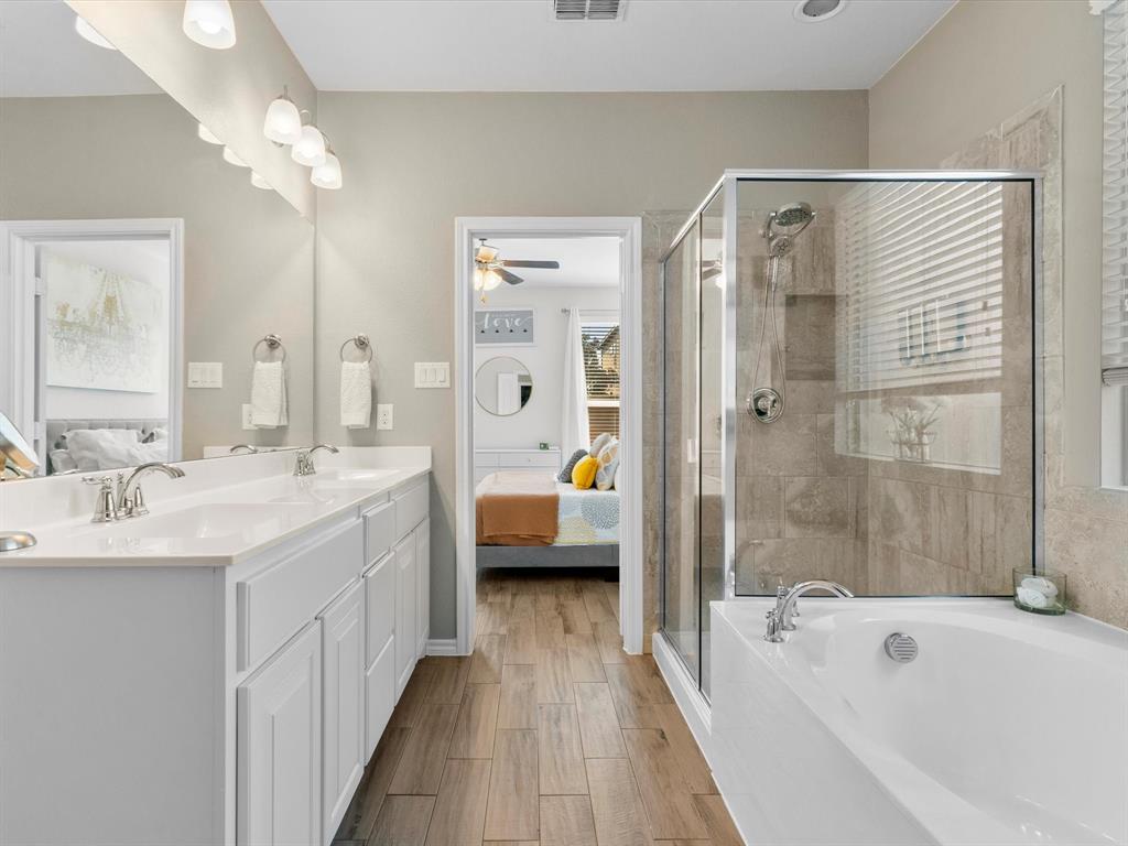 This meticulously cared for original-owner home features a POOL and NEWER ROOF installed in March 2025. The wood-look tile floors flow throughout the first floor, leading to a front office, a half bath for guests and a bright kitchen with white painted cabinets, granite countertops, stainless steel appliances, an eat-at island, and a breakfast area. With a kitchen overlooking the central living space and complete with a gas fireplace, you’re likely to be impressed. The primary suite is conveniently located on the first floor and offers dual sinks, a soaking tub, separate shower, and a spacious walk-in closet. Upstairs, enjoy a Texas-sized game room, three additional bedrooms, and two full bathrooms. Step outside to a cozy covered back patio overlooking the inground chlorine pool and spa combo with water features, complete with extended decking—perfect for entertaining or relaxing. With 4 bedrooms, 3.5 bathrooms, easy highway access, and just a short drive to Champion Circle Golf Club, Tanger Outlets, Northwest High School, and Texas Motor Speedway, this home offers a blend of style, comfort, all in an ideal location. Additional features include smart lighting and thermostats!