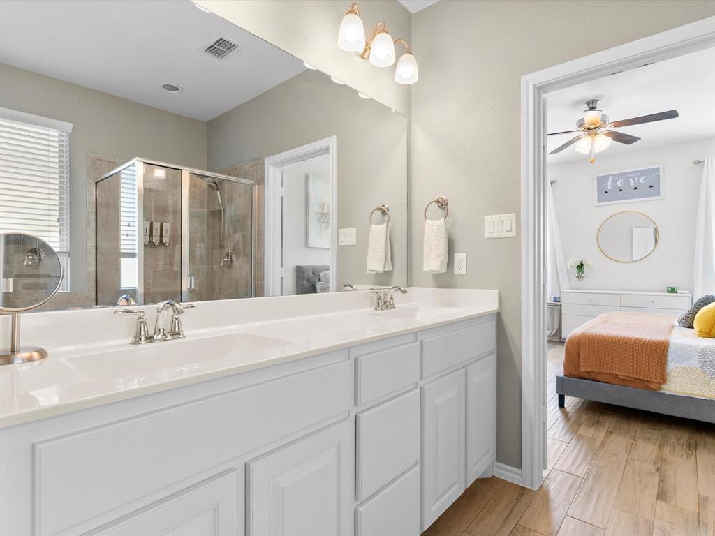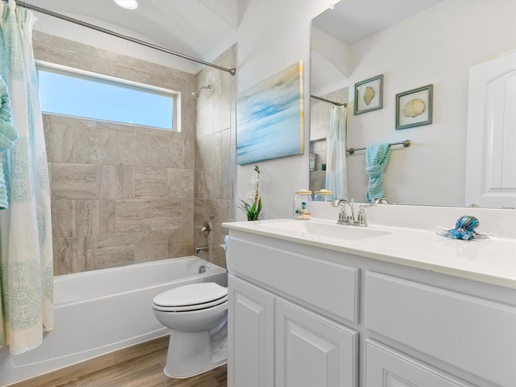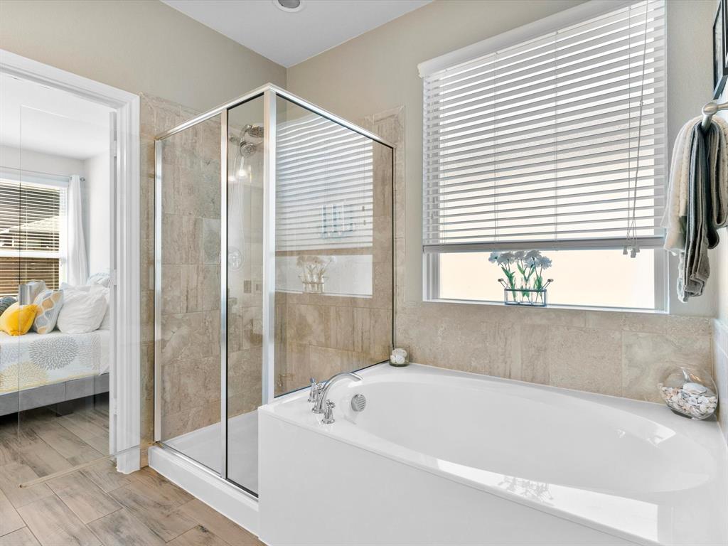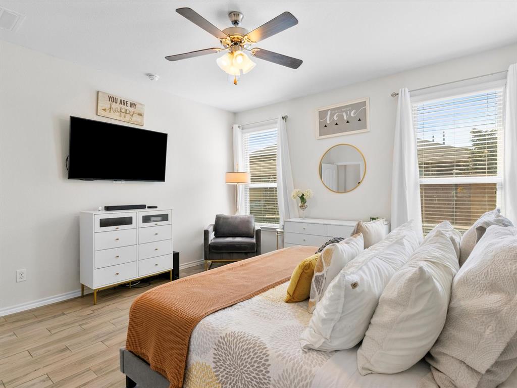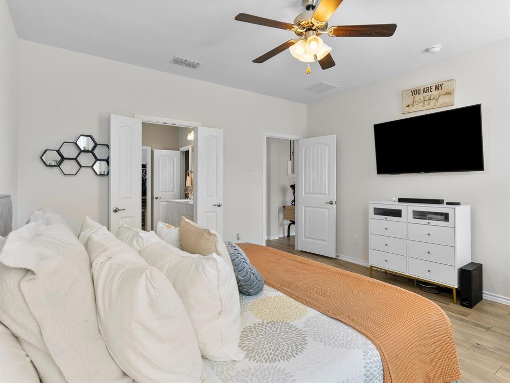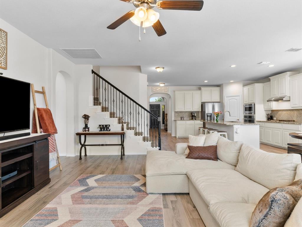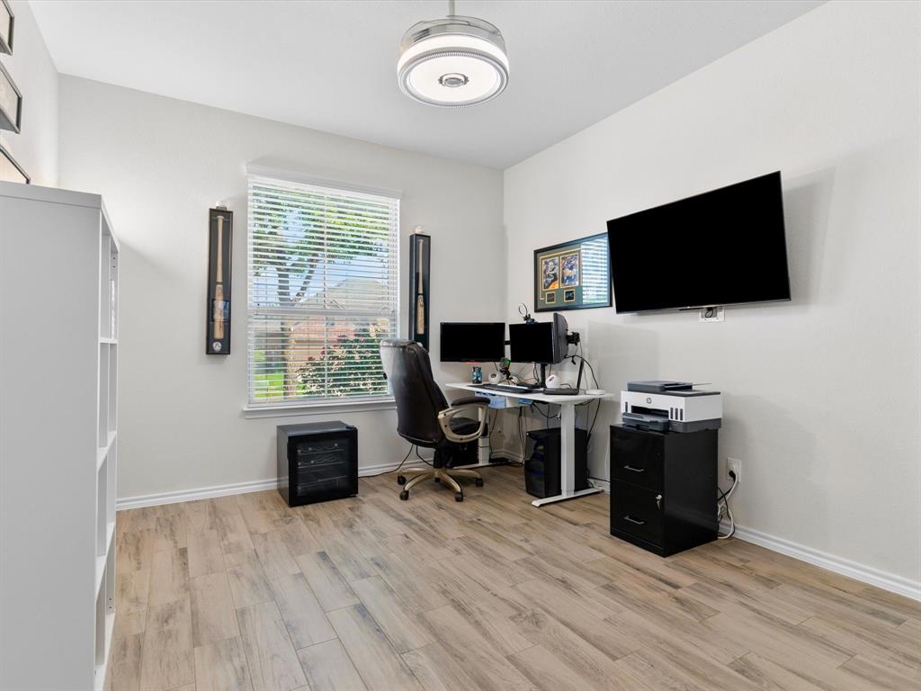 This meticulously cared for original-owner home features a POOL and NEWER ROOF installed in March 2025. The wood-look tile floors flow throughout the first floor, leading to a front office, a half bath for guests and a bright kitchen with white painted cabinets, granite countertops, stainless steel appliances, an eat-at island, and a breakfast area. With a kitchen overlooking the central living space and complete with a gas fireplace, you’re likely to be impressed. The primary suite is conveniently located on the first floor and offers dual sinks, a soaking tub, separate shower, and a spacious walk-in closet. Upstairs, enjoy a Texas-sized game room, three additional bedrooms, and two full bathrooms. Step outside to a cozy covered back patio overlooking the inground chlorine pool and spa combo with water features, complete with extended decking—perfect for entertaining or relaxing. With 4 bedrooms, 3.5 bathrooms, easy highway access, and just a short drive to Champion Circle Golf Club, Tanger Outlets, Northwest High School, and Texas Motor Speedway, this home offers a blend of style, comfort, all in an ideal location. Additional features include smart lighting and thermostats!