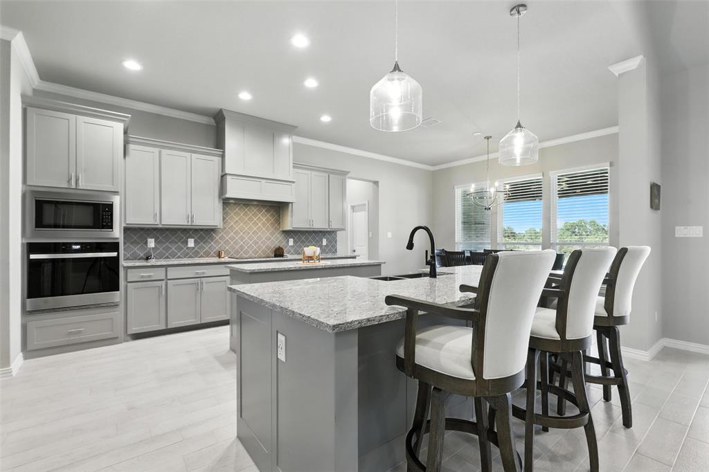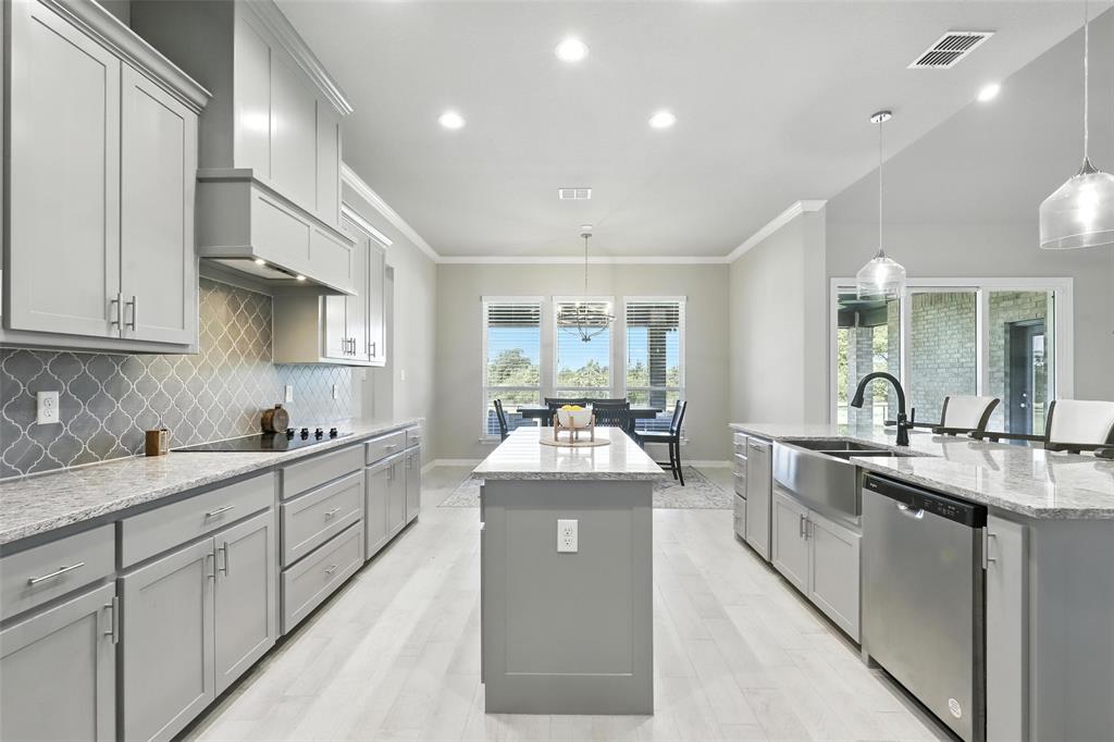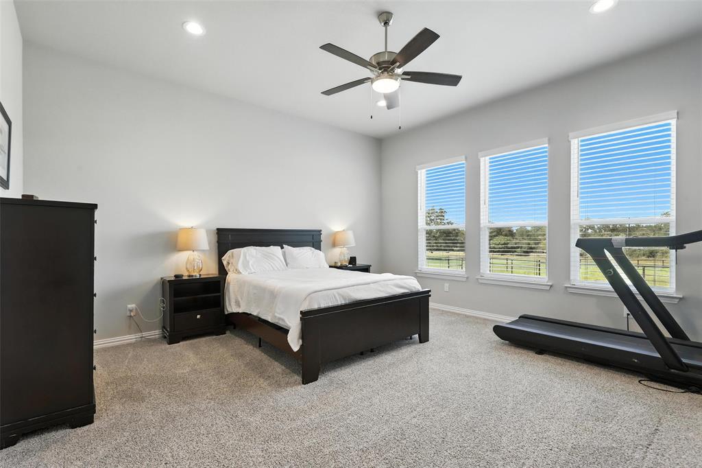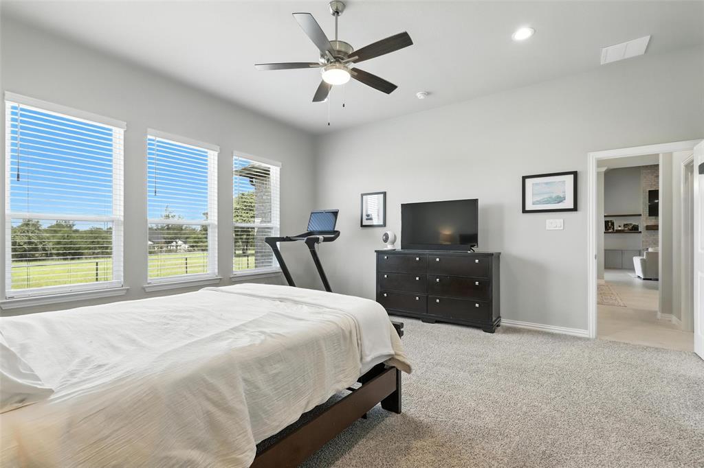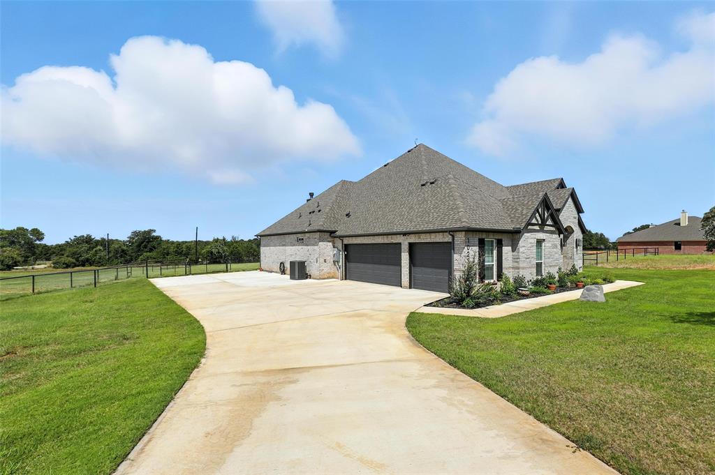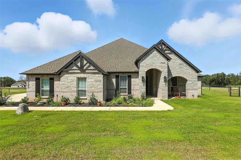 This thoughtfully designed home offers many amenities that make it a unique find. Two private primary ensuites offer options for multigenerational households, guests, or a dedicated mother-in-law suite. Bedrooms three and four are connected by a Jack-and-Jill bathroom, each with its own vanity. The kitchen stands out with two spacious islands, granite countertops, a built-in microwave, soft-close trash drawer, pot and pan storage, stylish tile accents, and a generous walk-in pantry, making it both functional and fashionable. The main living area features soaring vaulted ceilings, wood-burning fireplace, and wood-look tile flooring that flows throughout the shared spaces. A bonus room offers options to be used as a home office, playroom, game room, or creative studio. The primary suite features a standalone soaking tub, a full walk-through tile shower, and an oversized walk-in closet. All three full bathrooms in the home have been updated with high-end finishes, new tile work, and quartz countertops. Step outside and you’ll find an entertainer’s dream with an extended covered back patio, complete with a fireplace, built-in lighting, and two ceiling fans—perfect for year-round gatherings. Set on 2.22 acres, the property is fully fenced and cross-fenced with a 4-foot pipe fence—ideal for pets, livestock, or recreation. A three-car attached garage adds practicality and storage, while additional features such as wood shutters, a brick exterior, and a 30-year composition roof enhance the home’s durability and curb appeal. Some furnishings are negotiable or may convey with an acceptable offer. Schedule your private showing today!