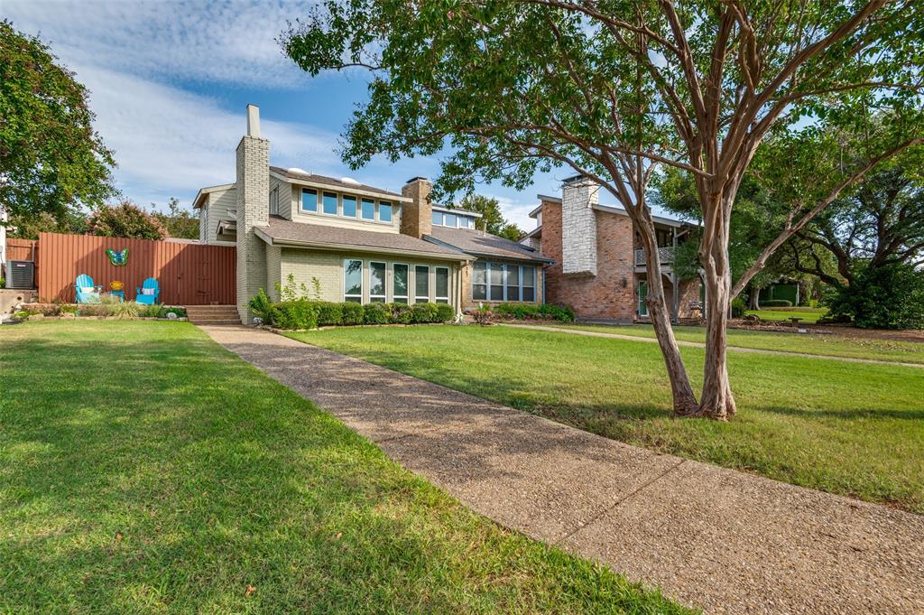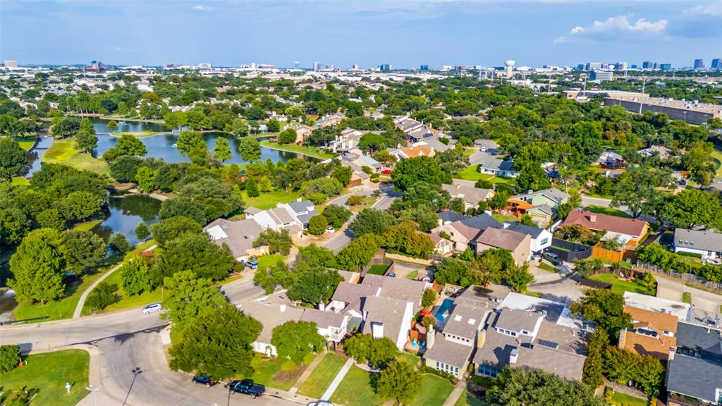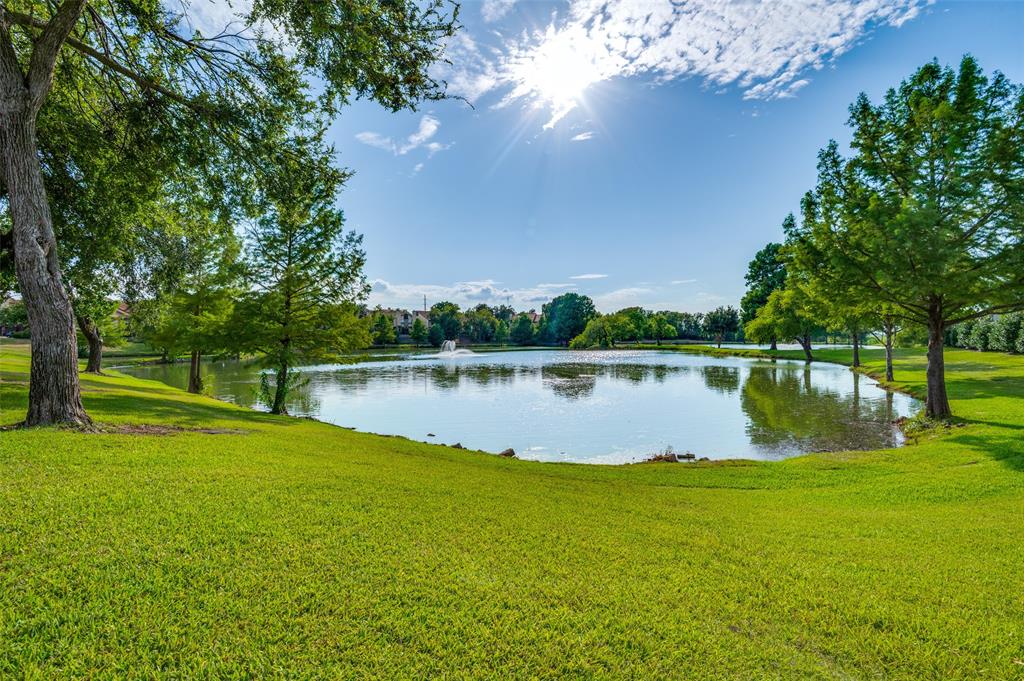 Stunning Soft Contemporary Townhouse in Country Place. This lock-and-leave townhouse offers a rare opportunity for low-maintenance living with a private inground pool. Natural light fills this multi-level home, featuring a large living room and a main-level primary suite with an ensuite that includes a vessel tub, shower, and two walk-in closets. Vaulted ceilings, a loft, and breakfast and formal dining areas enhance the space. Set on a double lot with scenic views of a stocked lake and nearby pickleball and tennis courts, this property is situated in a golf community with inclusive golf and low HOA dues. Convenient access to Addison, LBJ, DNT, and 190 makes it a must-see!