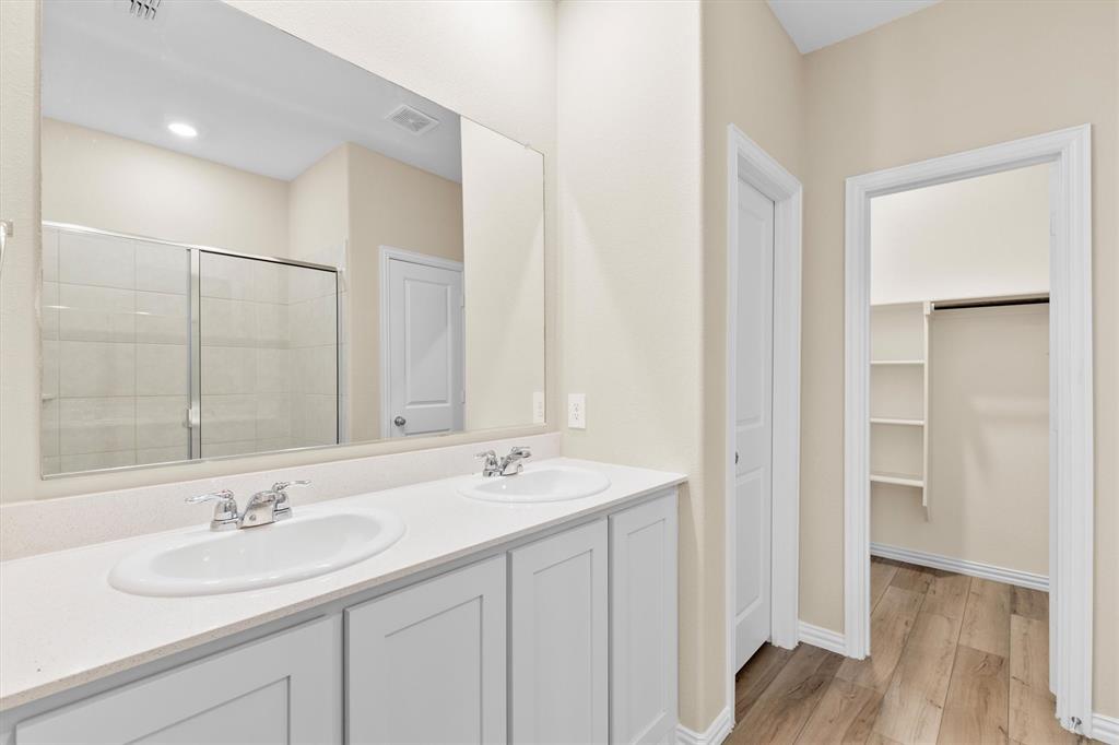 The primary suite offers a generous space with an en-suite bathroom, complete with dual vanities and a spacious walk-in closet that provides plenty of room for storage. Three additional bedrooms offer flexibility for guests, an office, or whatever your lifestyle requires.