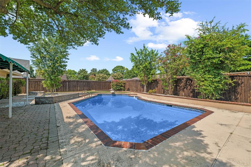 The private backyard is a summer dream—complete with a refreshing in-ground, diving pool, making it perfect to beat the summer heat in Texas.