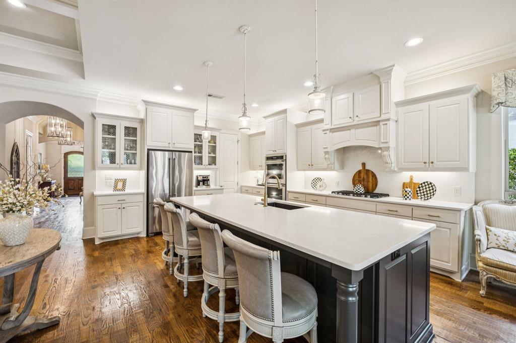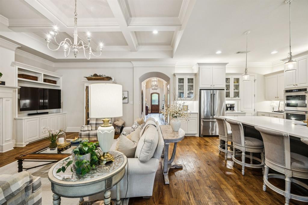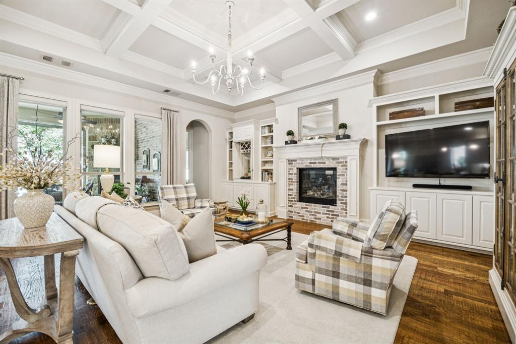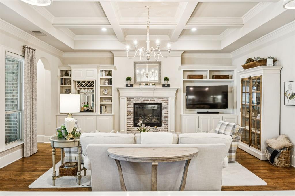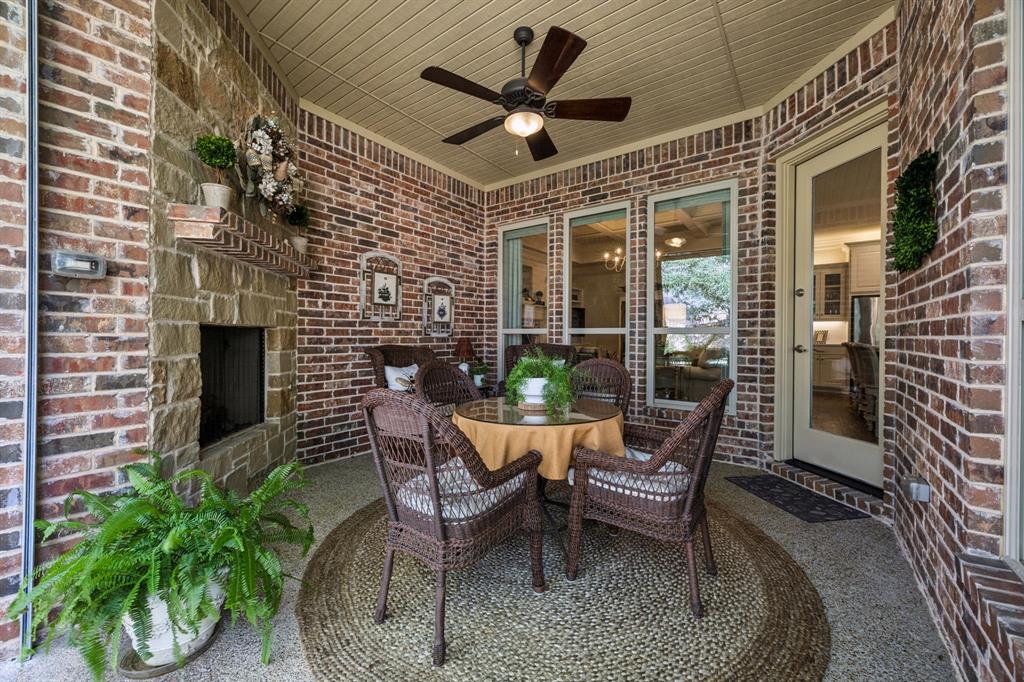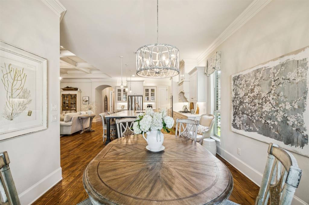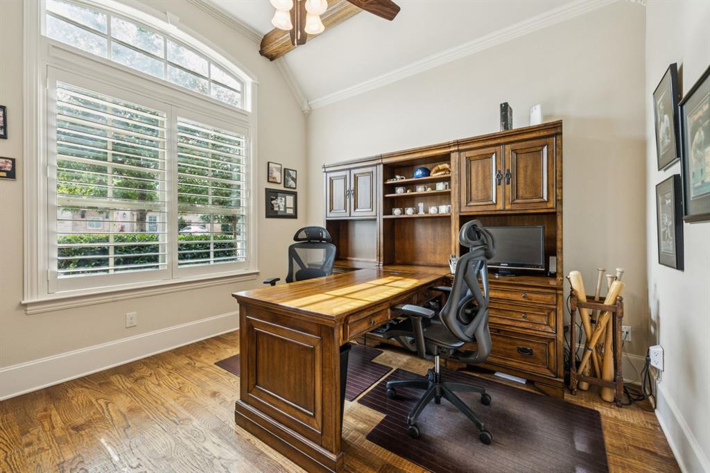 Tucked away on a quiet cul-de-sac, this exquisitely maintained, turnkey ready, custom home offers refined living in every detail. From rich, hand-scraped hardwood floors to elegant coffered ceilings, each space radiates timeless sophistication and everyday comfort. A dedicated home office offers the perfect space for working remotely or managing day-to-day tasks in style. A spacious guest suite with a full private bath is located on the main level—ideal for a mother-in-law suite, visiting guests, or multi-generational living. The heart of the home is a gourmet chef’s kitchen, thoughtfully designed with stainless steel appliances, gas cooktop, double ovens, a generous center island, breakfast bar seating, additional dining area and an walk-in pantry—perfect for hosting and holiday prep alike. The kitchen flows seamlessly into a warm and inviting living area, complete with a built-in bar, cozy fireplace with plantation shutters throughout add a layer of classic charm. The luxurious primary suite is a true retreat extends into the spa-inspired primary bathroom. Enjoy a jetted soaking tub, separate shower, and a thoughtfully designed walk-in closet with direct access to the laundry room for ultimate convenience.Step outside to your private backyard oasis, where a covered patio with retractable screen, gas fireplace, and built-in gas line for grilling make year-round outdoor entertaining effortless. Whether it's a quiet evening or a lively gathering, this space offers unmatched comfort and versatility. Upstairs, you’ll find a third bedroom with a full bath and a versatile flex space—ideal as a game room, media room, playroom, or additional lounge area. With a smart layout, abundant storage, and high-end finishes throughout, this home is a rare blend of comfort, beauty, and function. Located in a sought-after neighborhood, this one is not to be missed.