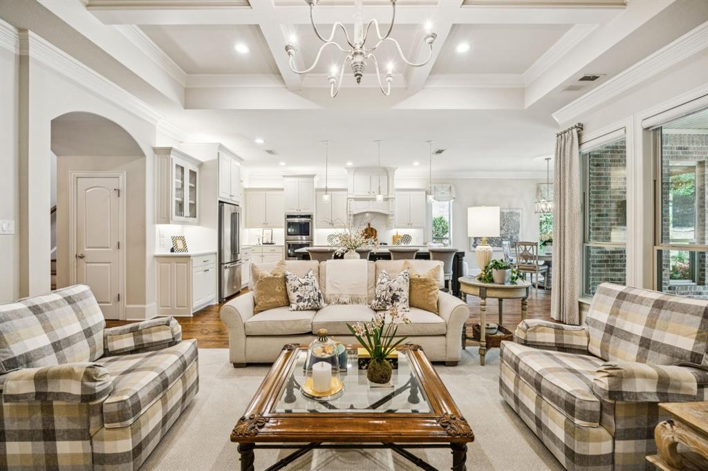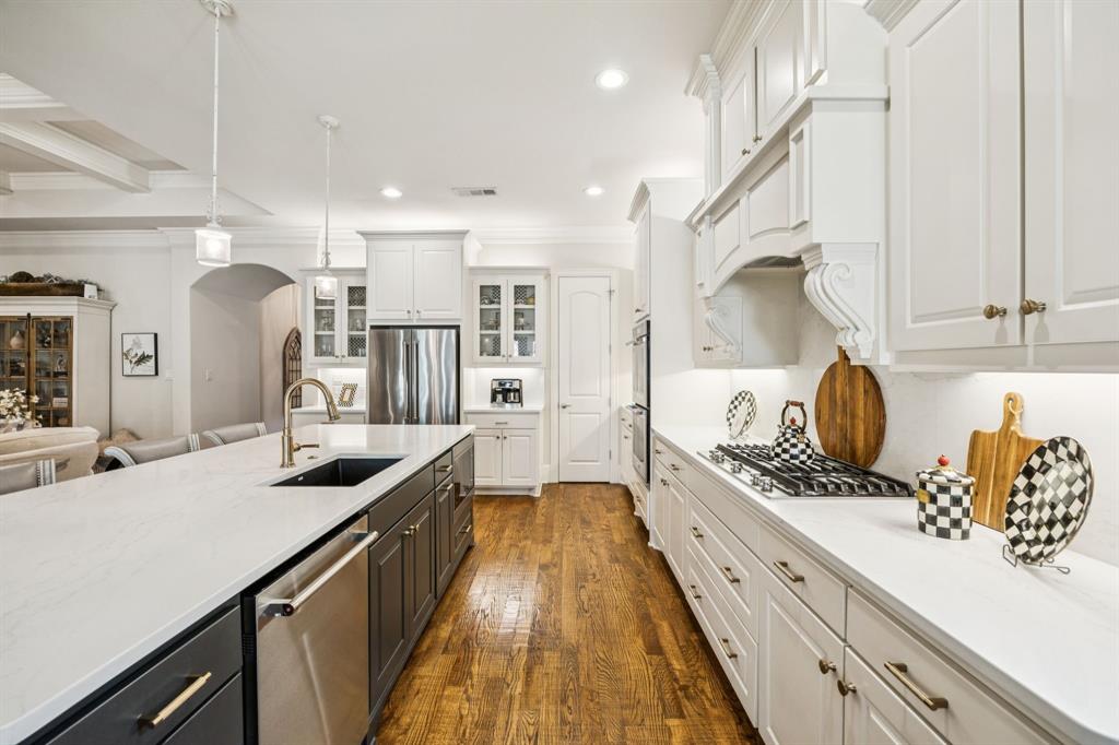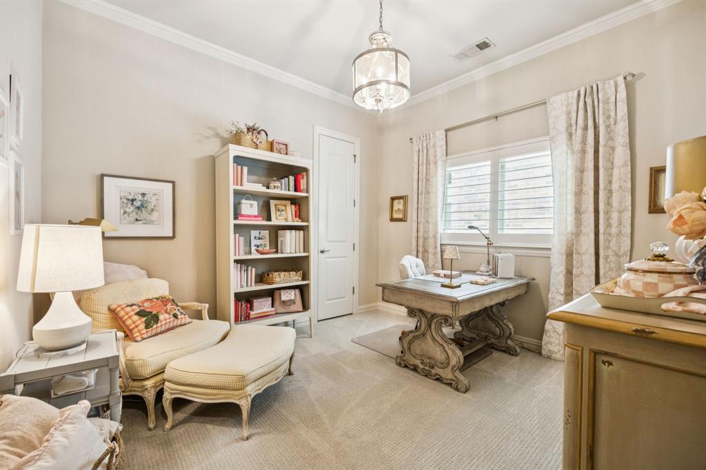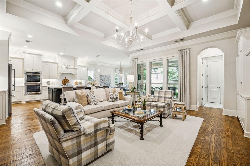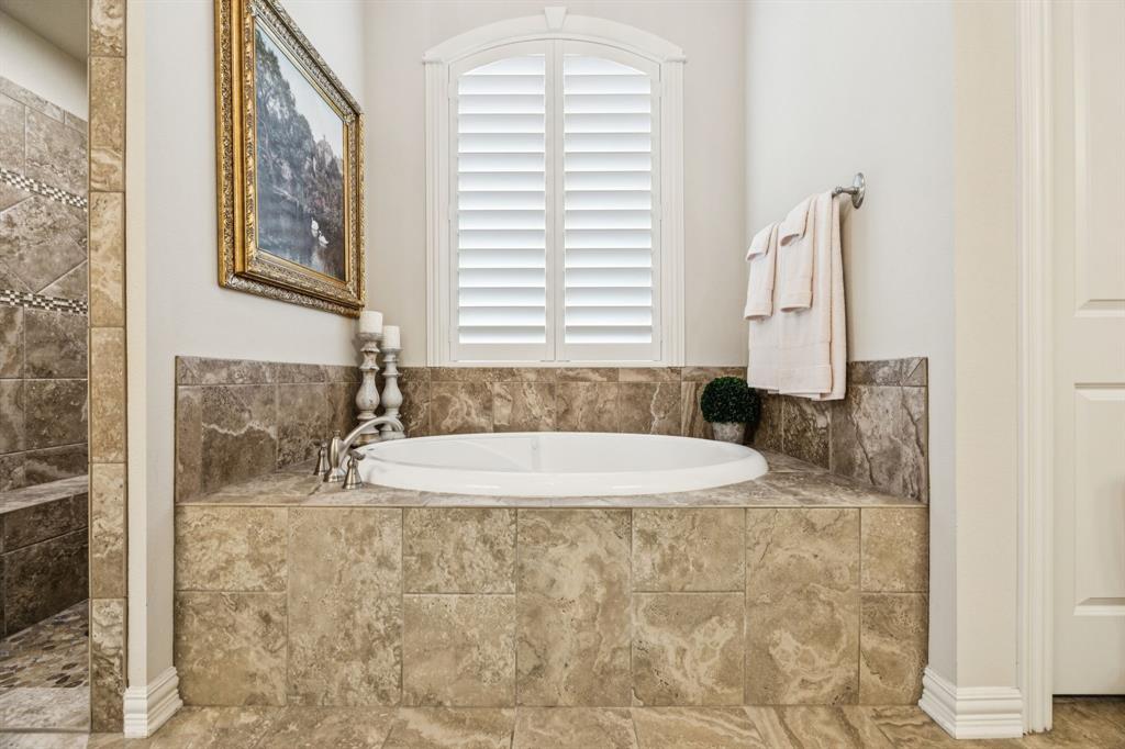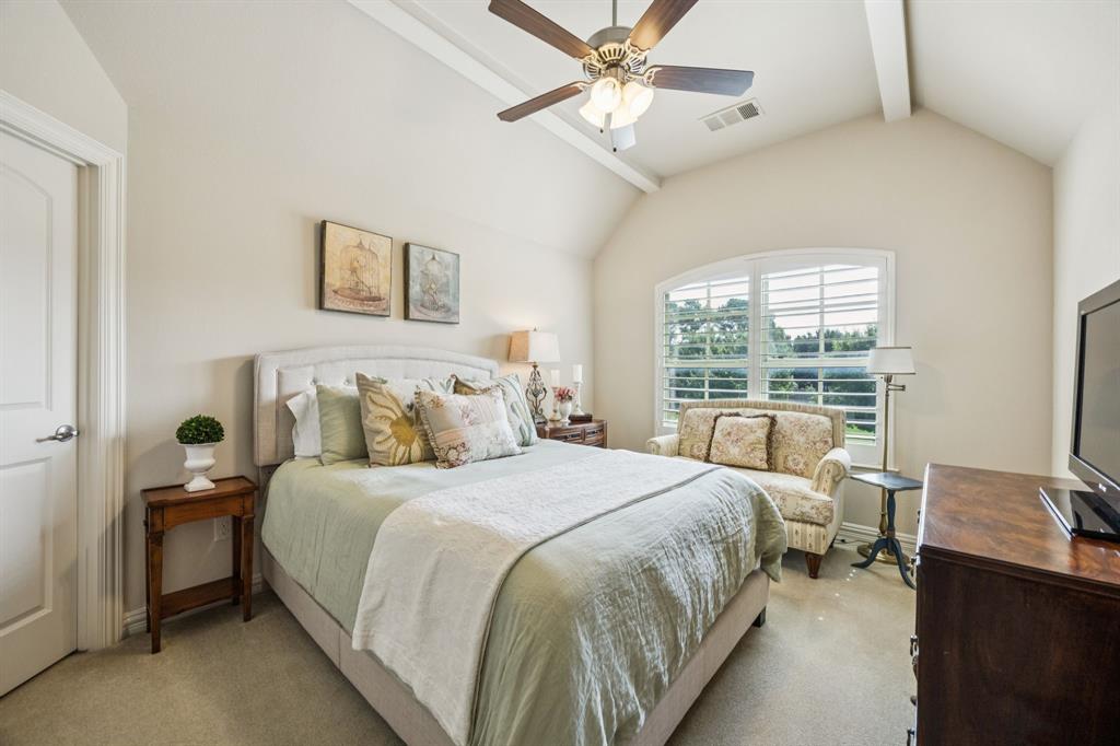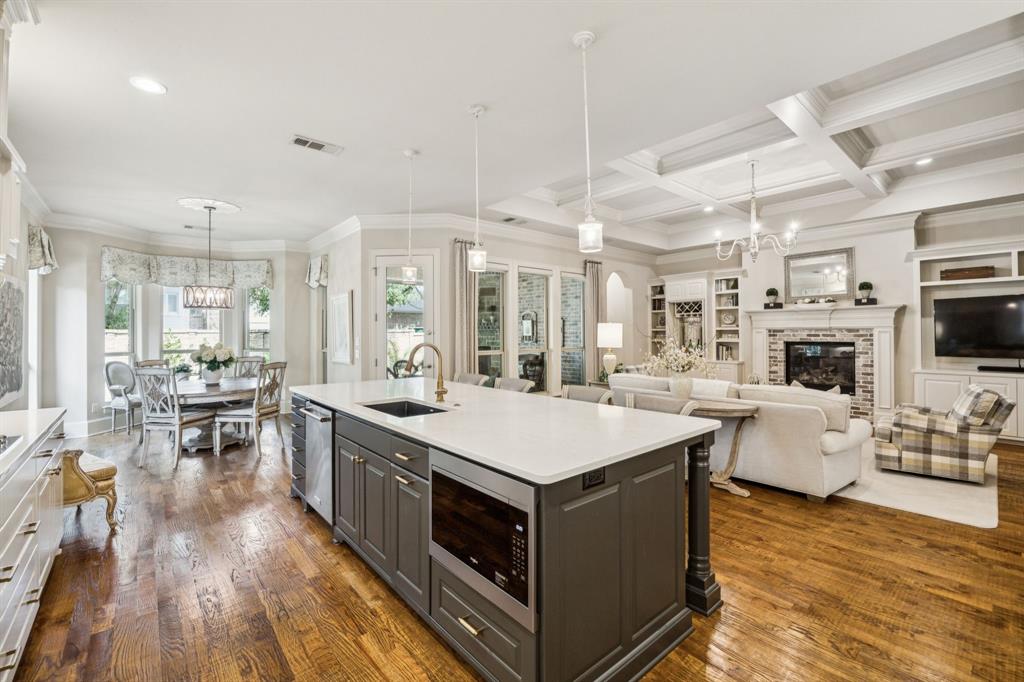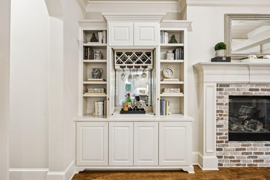Tucked away on a quiet cul-de-sac, this exquisitely maintained, turnkey ready, custom home offers refined living in every detail. From rich, hand-scraped hardwood floors to elegant coffered ceilings, each space radiates timeless sophistication and everyday comfort. A dedicated home office offers the perfect space for working remotely or managing day-to-day tasks in style. A spacious guest suite with a full private bath is located on the main level—ideal for a mother-in-law suite, visiting guests, or multi-generational living. The heart of the home is a gourmet chef’s kitchen, thoughtfully designed with stainless steel appliances, gas cooktop, double ovens, a generous center island, breakfast bar seating, additional dining area and an walk-in pantry—perfect for hosting and holiday prep alike. The kitchen flows seamlessly into a warm and inviting living area, complete with a built-in bar, cozy fireplace with plantation shutters throughout add a layer of classic charm. The luxurious primary suite is a true retreat extends into the spa-inspired primary bathroom. Enjoy a jetted soaking tub, separate shower, and a thoughtfully designed walk-in closet with direct access to the laundry room for ultimate convenience.Step outside to your private backyard oasis, where a covered patio with retractable screen, gas fireplace, and built-in gas line for grilling make year-round outdoor entertaining effortless. Whether it's a quiet evening or a lively gathering, this space offers unmatched comfort and versatility. Upstairs, you’ll find a third bedroom with a full bath and a versatile flex space—ideal as a game room, media room, playroom, or additional lounge area. With a smart layout, abundant storage, and high-end finishes throughout, this home is a rare blend of comfort, beauty, and function. Located in a sought-after neighborhood, this one is not to be missed.