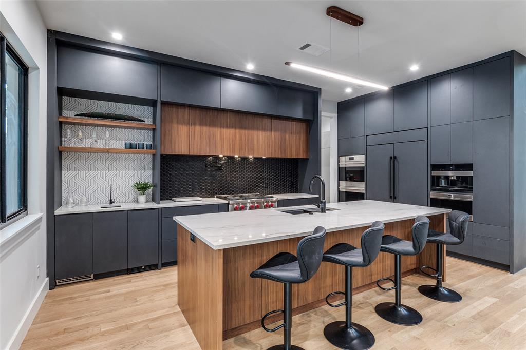 Seller is offering help with a temporary buy down on interest rates as an incentive. Welcome to your beautifully remodeled mid-century modern home in coveted Northwood Hills. This two-story stunner is an entertainer's dream set on a generous .57 acre lot. This contemporary architectural gem was taken to the studs in 2023 with all new electrical wiring, plumbing, HVAC, two tankless water heaters, new roof, white oak floors and vanities, and 10 foot and 9 foot ceilings on the first and second floors, respectively. Upon entering, your eyes are drawn to the backyard oasis seen through large sliding glass doors off the main living area. The sleek kitchen includes elegant quartzite countertops, Wolf appliances, and built-in Sub-Zero refrigerator, Cove dishwasher, crushed icemaker, beverage fridge and second filtered sink. Start your morning with a coffee from your plumbed-in Miele coffee maker which sits stylishly above the built-in microwave. The ample pantry includes a second dishwasher and sink and a Sub-Zero built-in wine fridge, and is ideally located behind the kitchen, next to the garage. The living and kitchen areas feature views of the spectacular yard, including an inviting quartz pool. The pool and equipment were updated in 2023-2024. Entertain easily on the 2 patios and watch the kids enjoy the large waterslide and custom-built treehouse. The outdoor bathroom is perfect to accommodate your pool parties. The secluded first-floor primary boasts a luxurious en-suite bathroom and large walk-in closet with its own laundry. Enjoy the evening relaxing on a nearby private patio. Two of the four bedrooms upstairs have en-suite bathrooms; all bedrooms have walk-in closets. Don't miss the additional closet in the front bedroom, perfect for extra storage. The main laundry room is on the second floor. With its bold architectural design and unbeatable location in RISD, this home offers the best of modern luxury living in one of Dallas' most sought-after neighborhoods.