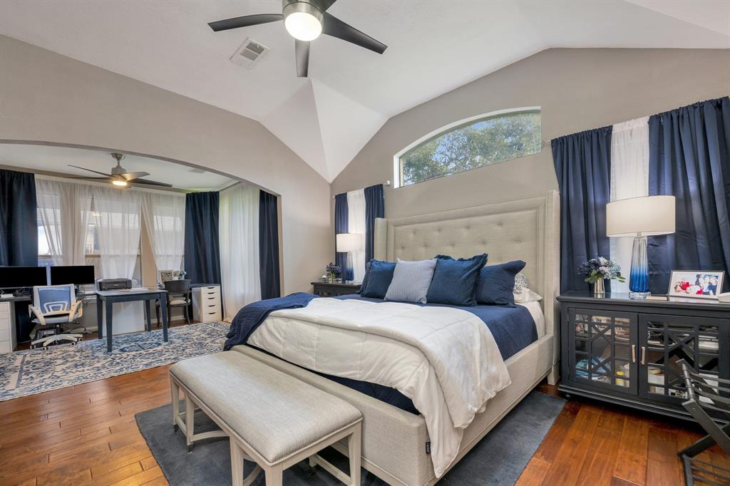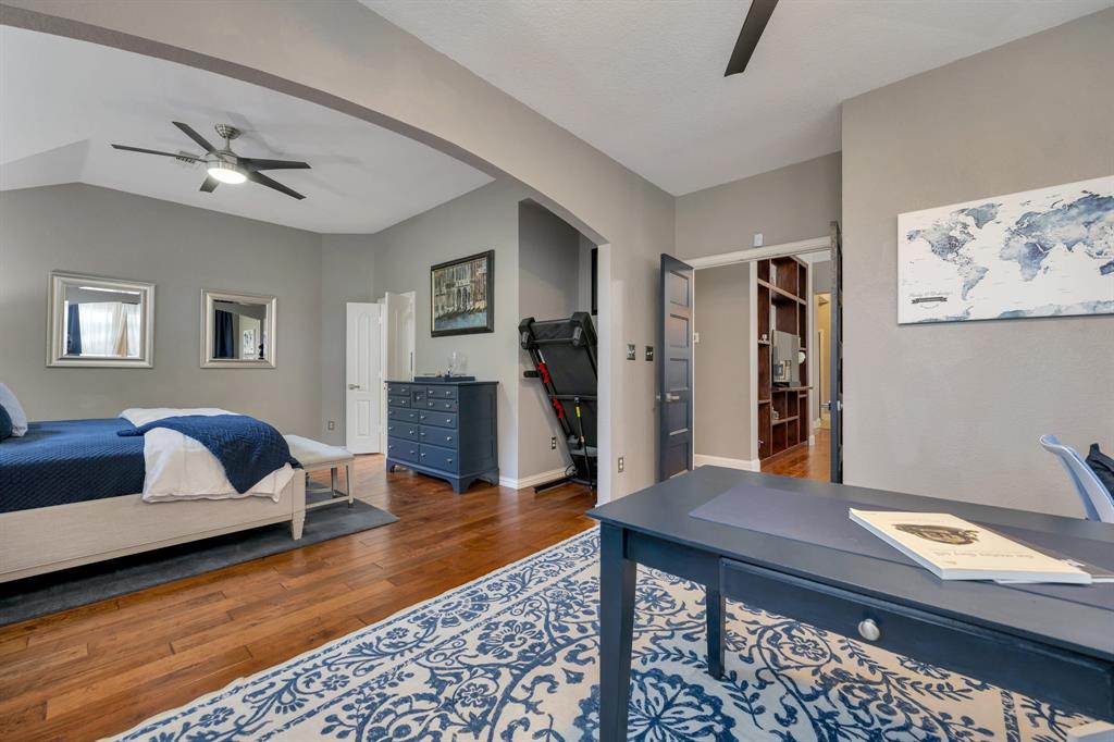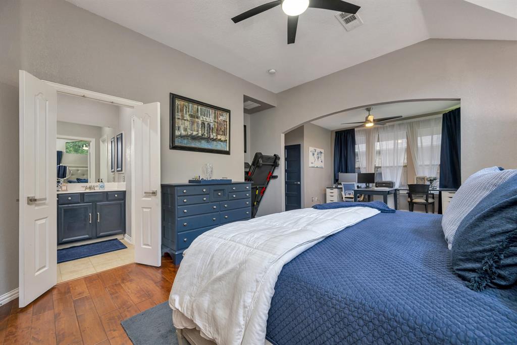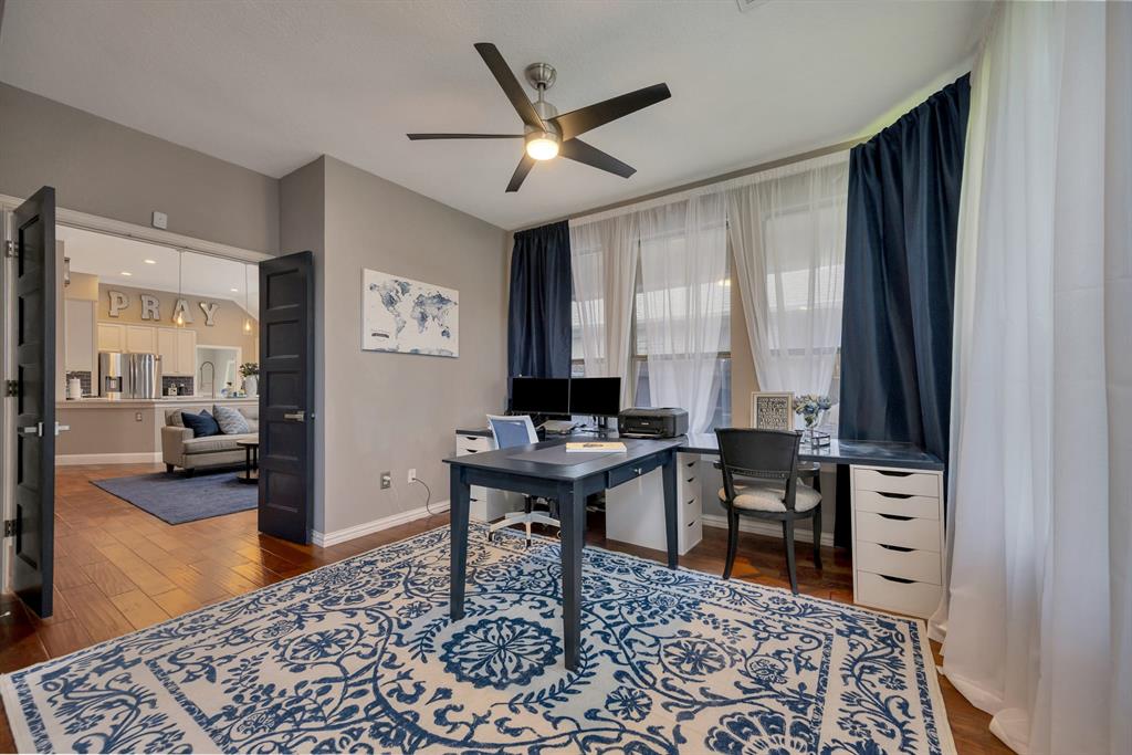 The living areas are warm and inviting with rich hardwood floors, tall ceilings, and abundant natural light. The primary suite offers a relaxing retreat with a large ensuite bathroom, generous closet space, and a private office perfect for working from home.